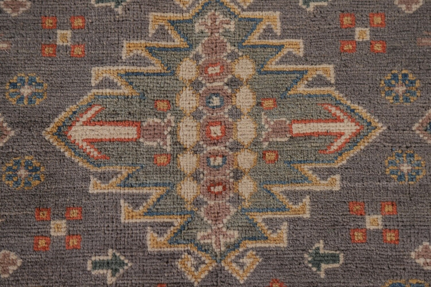 A Beautiful Genuine Pakistan Kazak rug is Hand Knotted by skillful weavers in Pakistan with 100% Wool Material. This rug is in New, First Quality condition. dimensions are 9' 9'' X 8' 0'' in foot and 297 X 244 in centimeter. the primary color is Greys & Charcoal.