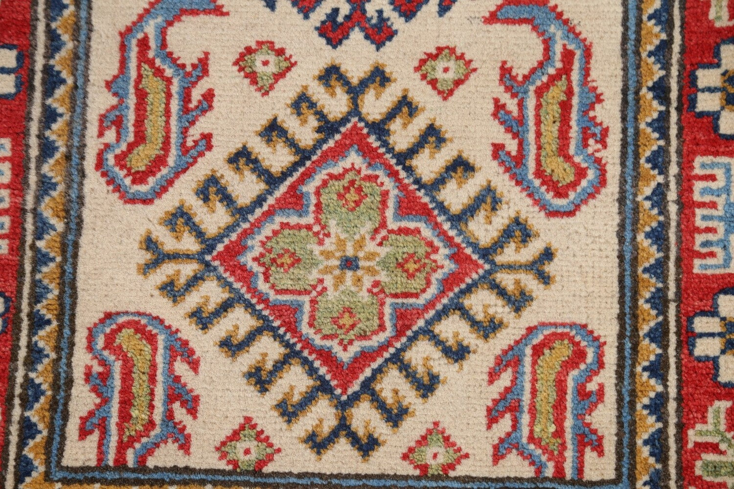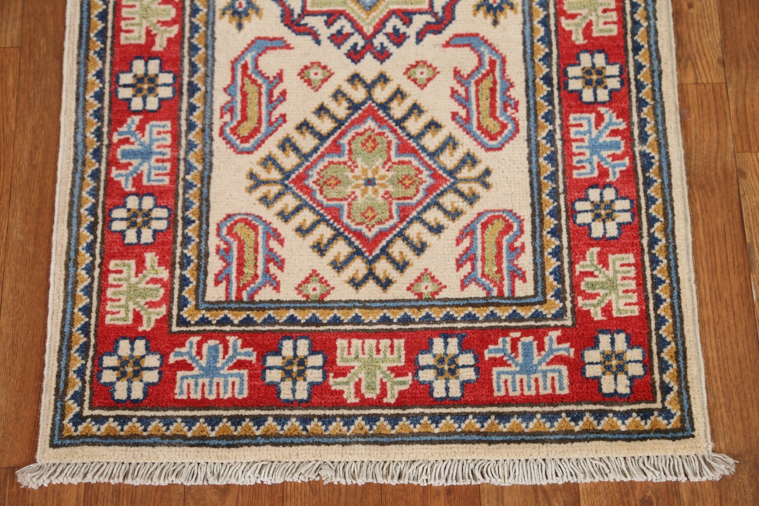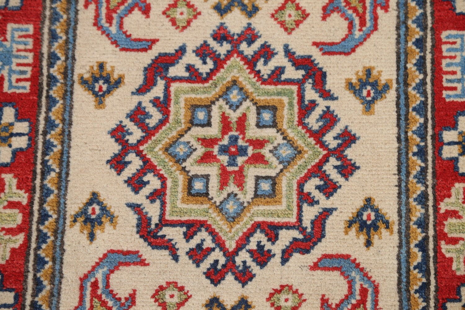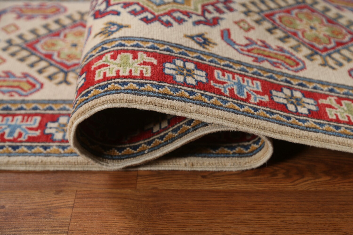 A Beautiful Genuine Pakistan Kazak rug is Hand Knotted by skillful weavers in Pakistan with 100% Wool Material. This rug is in New, First Quality condition. dimensions are 9' 8'' X 2' 0'' in foot and 295 X 61 in centimeter. the primary color is Beige & Ivories.