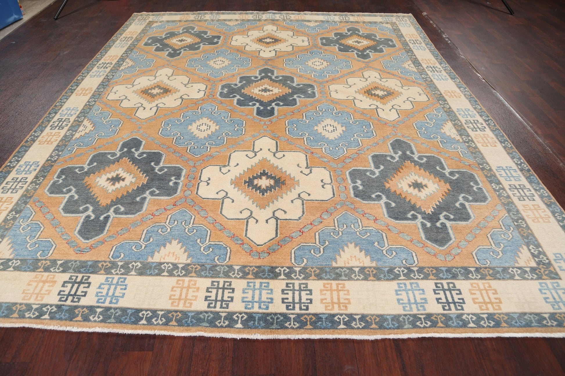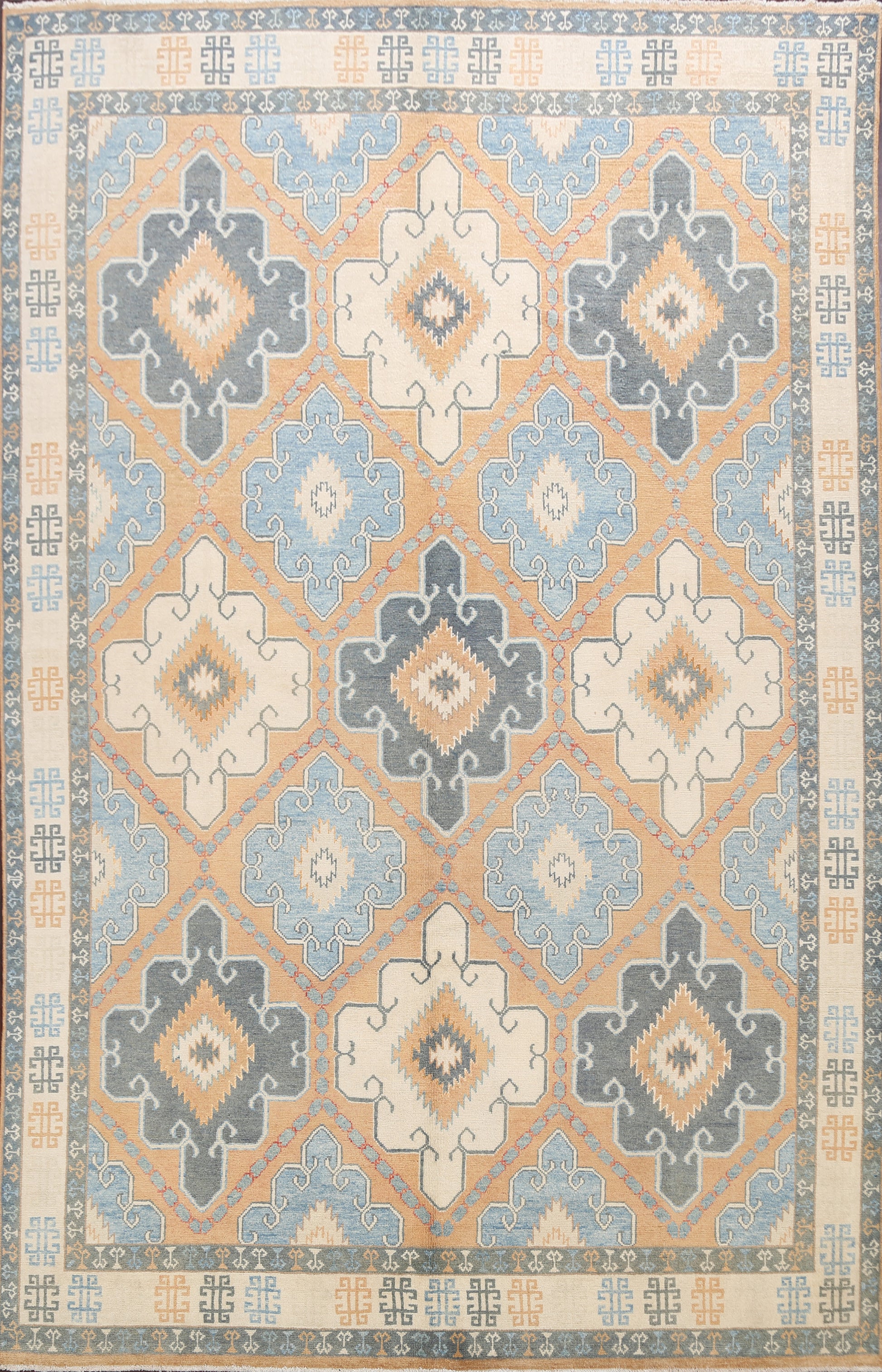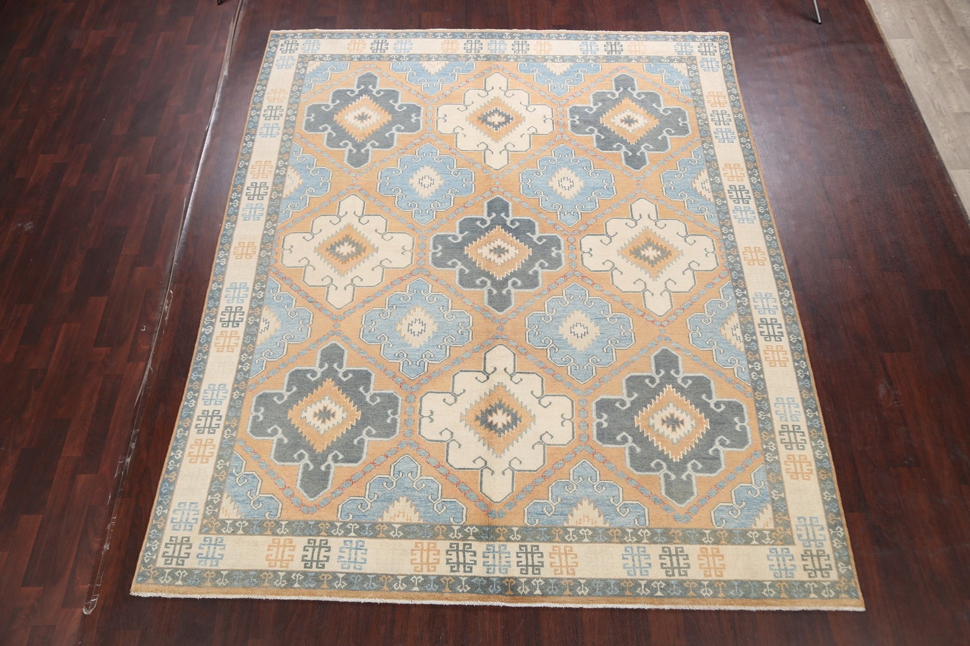 A Beautiful Genuine Pakistan Khotan rug is Hand Knotted by skillful weavers in Pakistan with 100% Wool Material. This rug is in New, First Quality condition. dimensions are 10' 2'' X 8' 5'' in foot and 310 X 257 in centimeter. the primary color is Beige & Ivories.