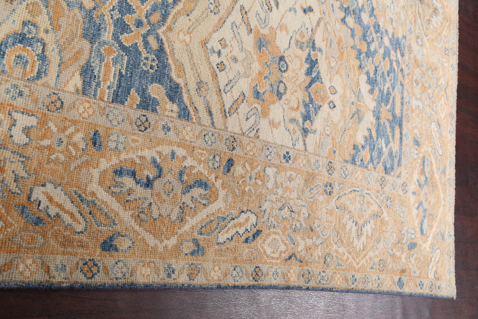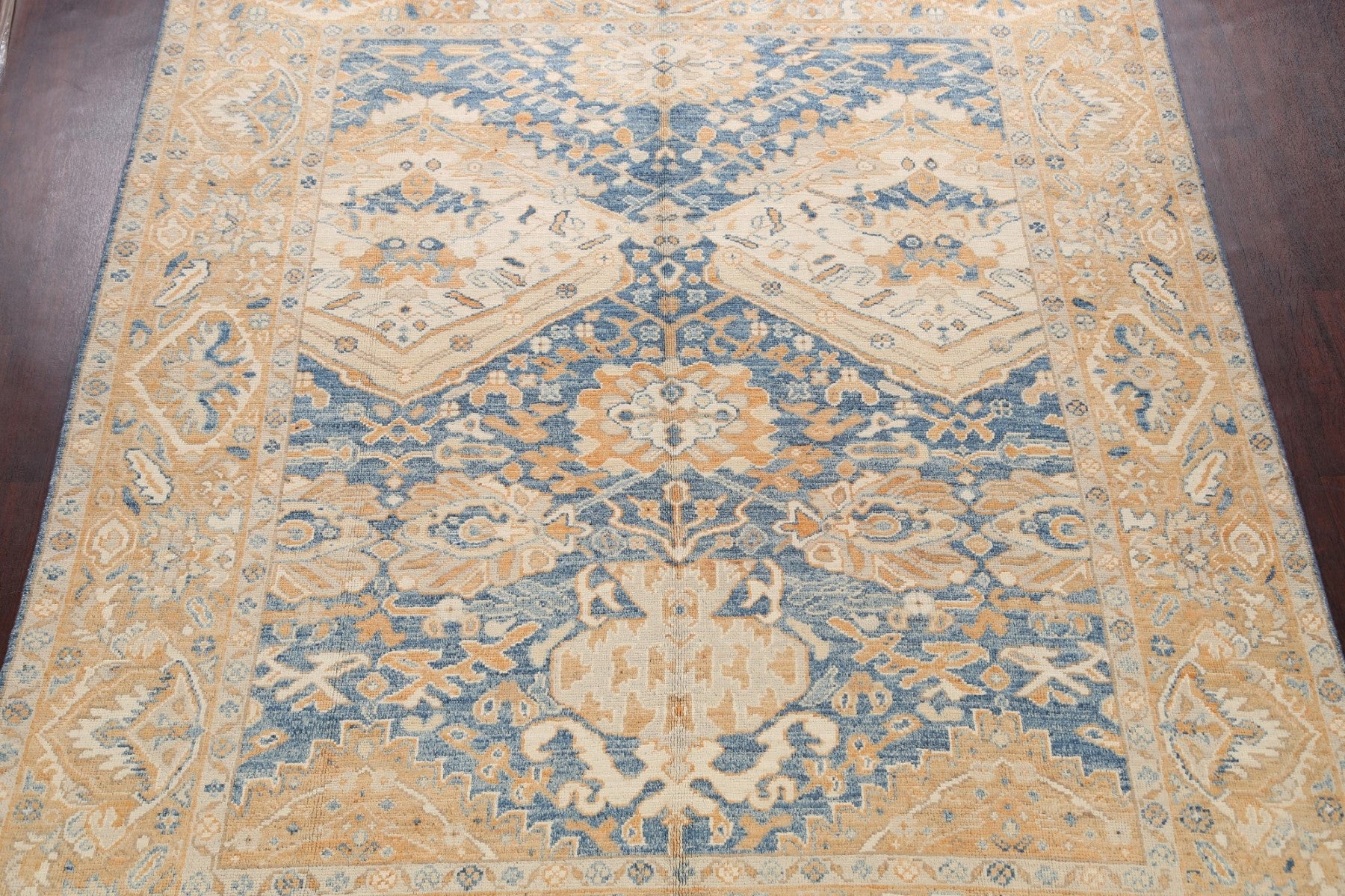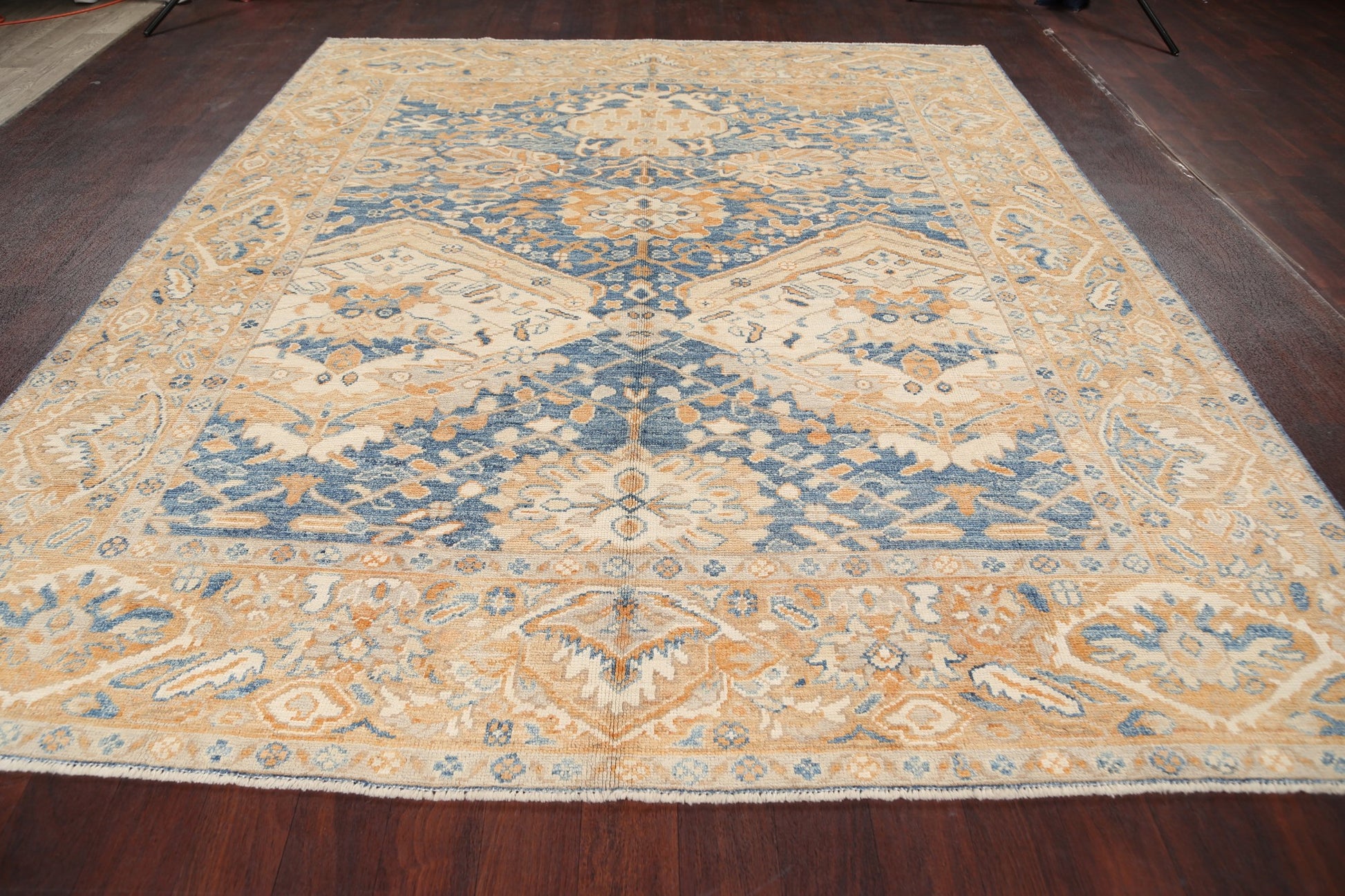 A Beautiful Genuine Pakistan Khotan rug is Hand Knotted by skillful weavers in Pakistan with 100% Wool Material. This rug is in New, First Quality condition. dimensions are 10' 1'' X 8' 4'' in foot and 307 X 254 in centimeter. the primary color is Navy Blue & Blues.
