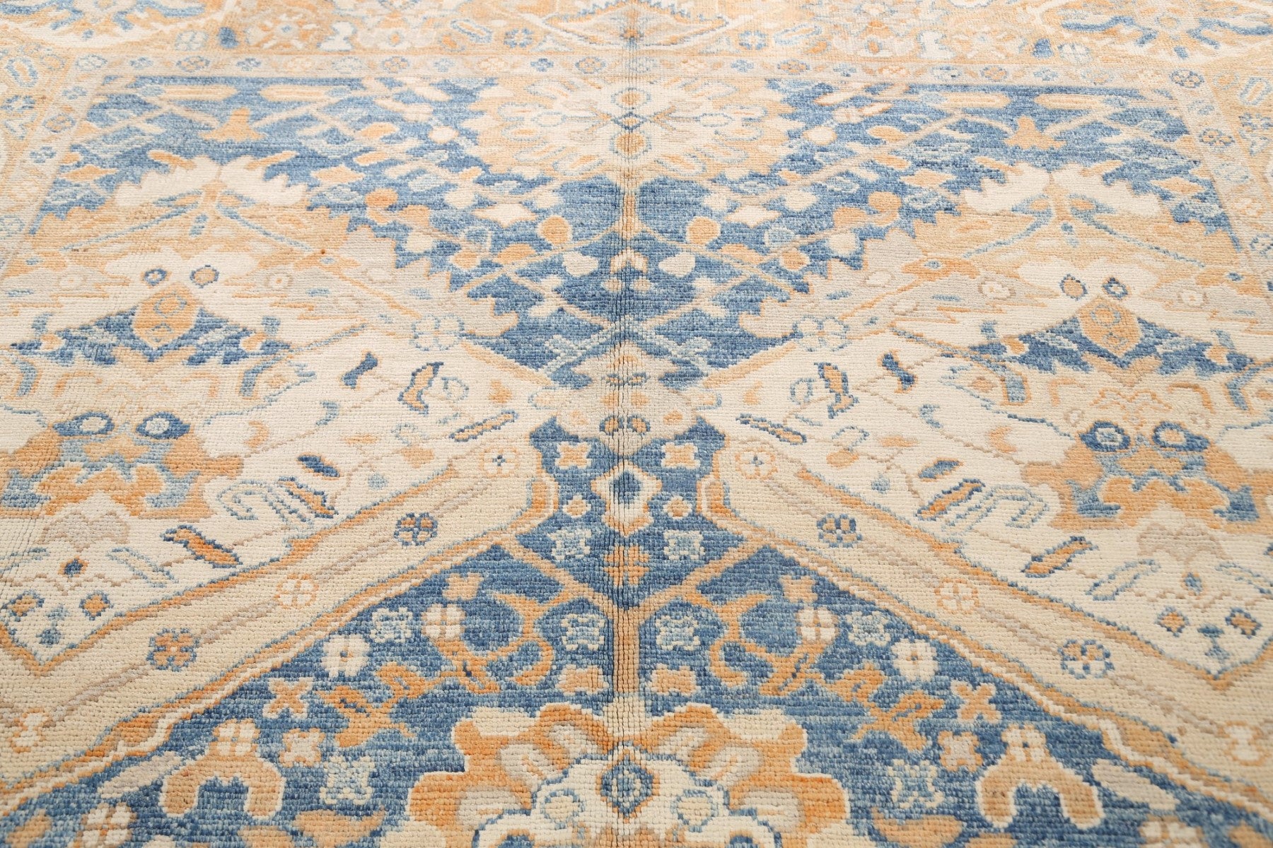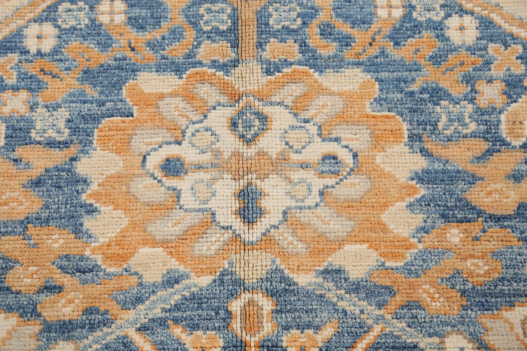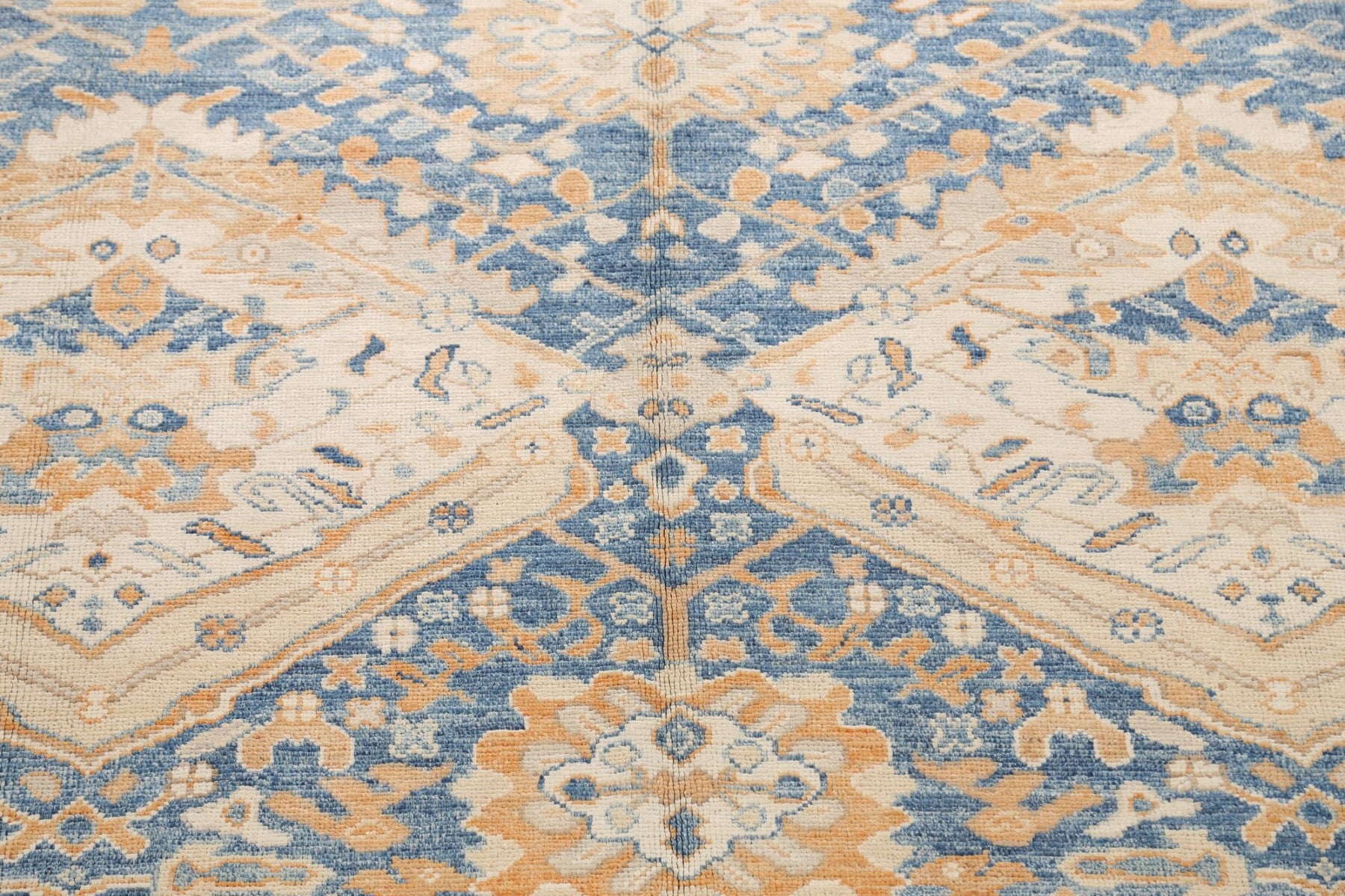 A Beautiful Genuine Pakistan Khotan rug is Hand Knotted by skillful weavers in Pakistan with 100% Wool Material. This rug is in New, First Quality condition. dimensions are 10' 1'' X 8' 4'' in foot and 307 X 254 in centimeter. the primary color is Navy Blue & Blues.