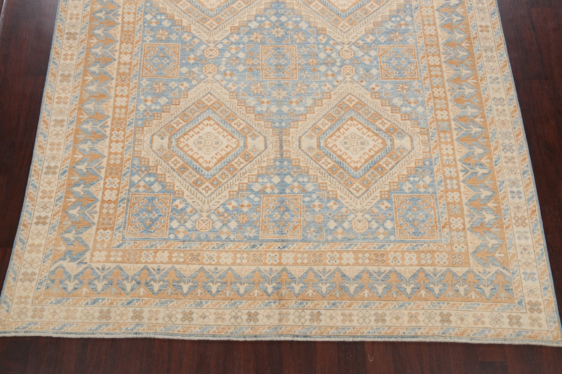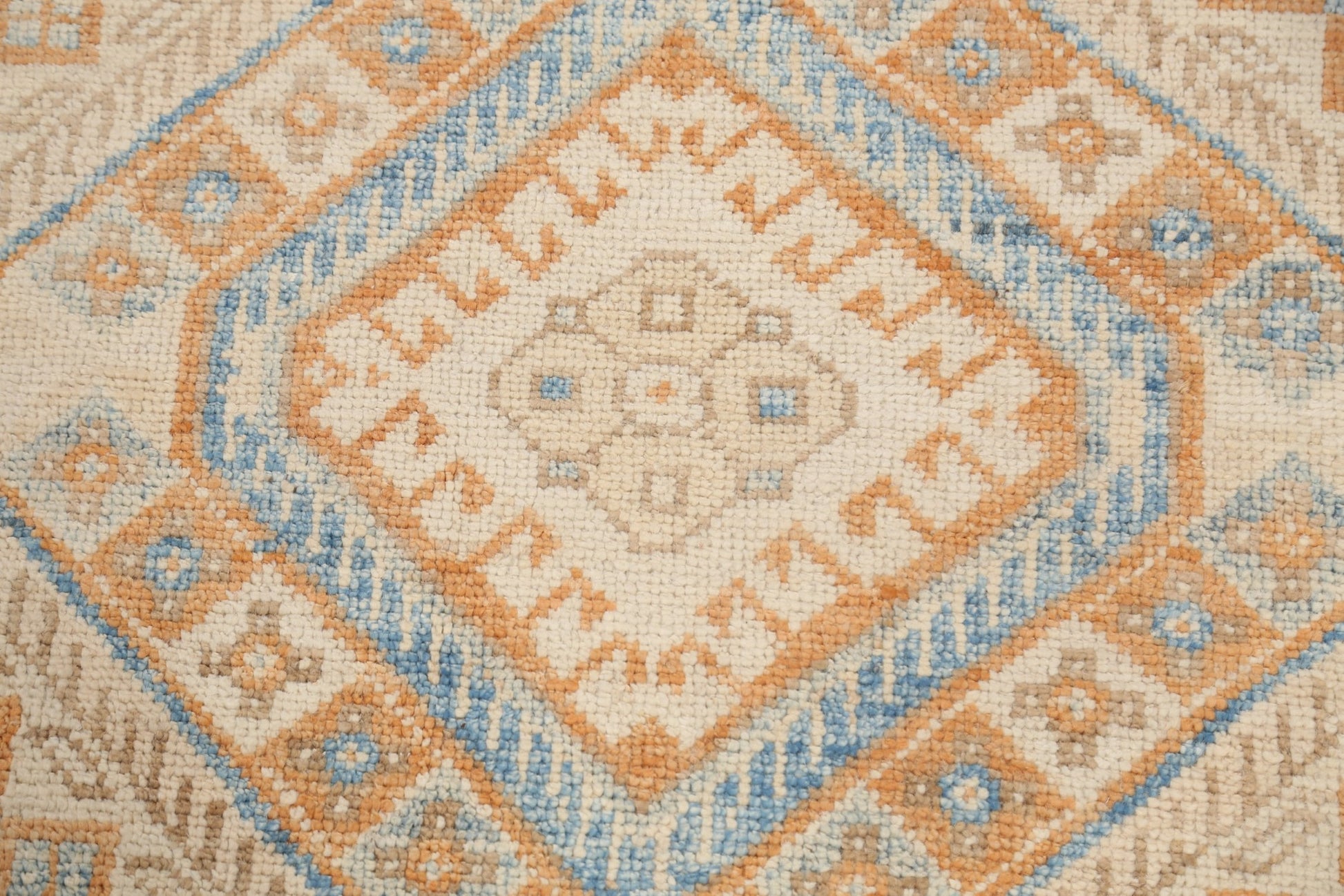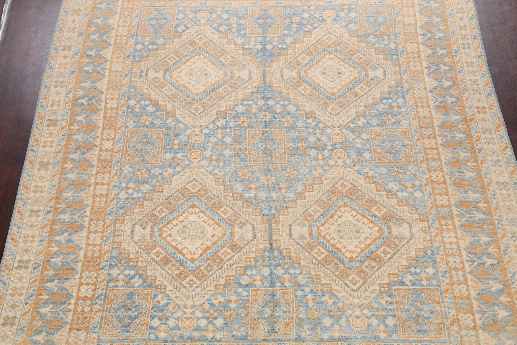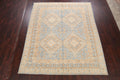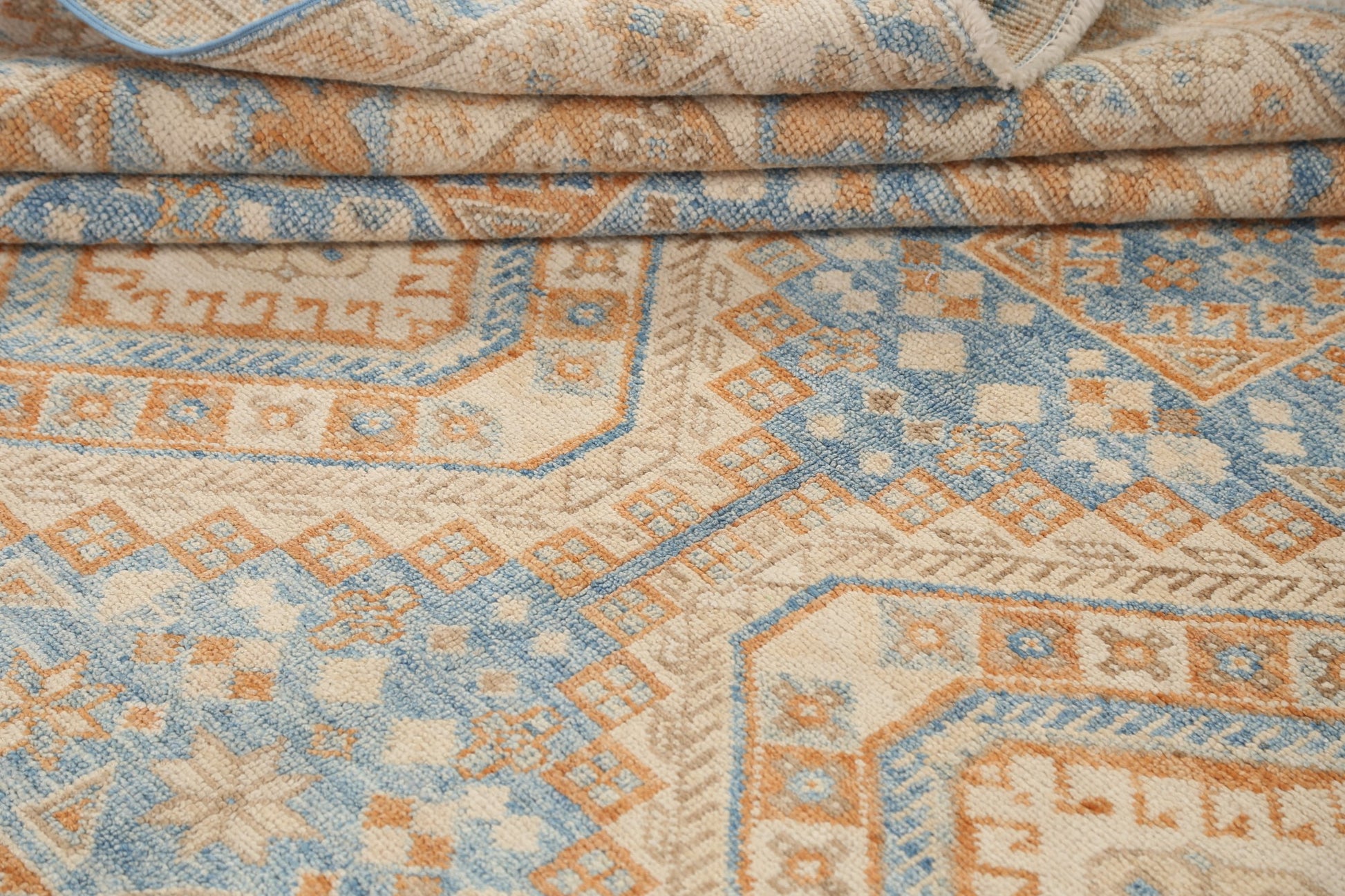 A Beautiful Genuine Pakistan Khotan rug is Hand Knotted by skillful weavers in Pakistan with 100% Wool Material. This rug is in New, First Quality condition. dimensions are 10' 2'' X 8' 5'' in foot and 310 X 257 in centimeter. the primary color is Navy Blue & Blues.