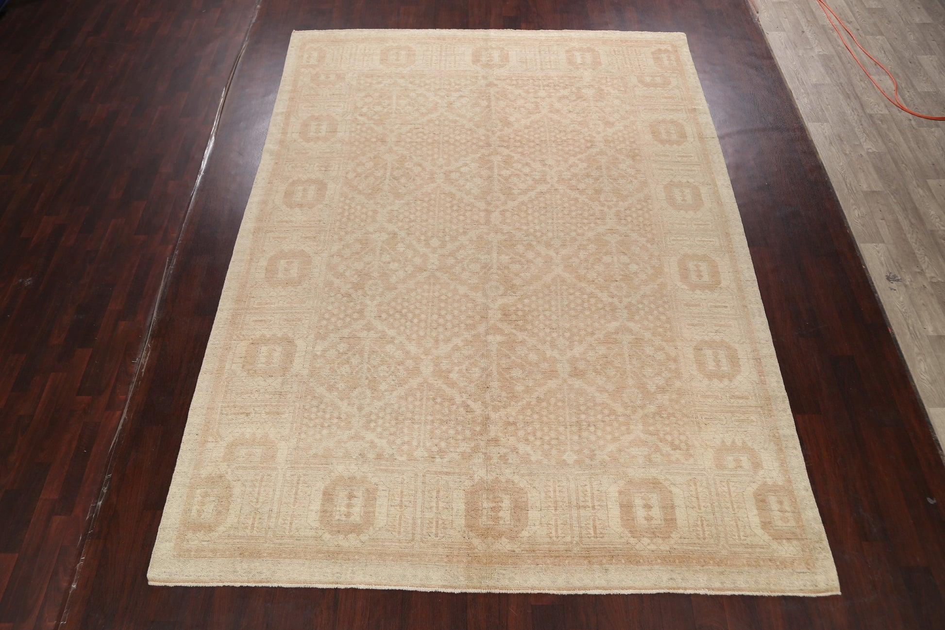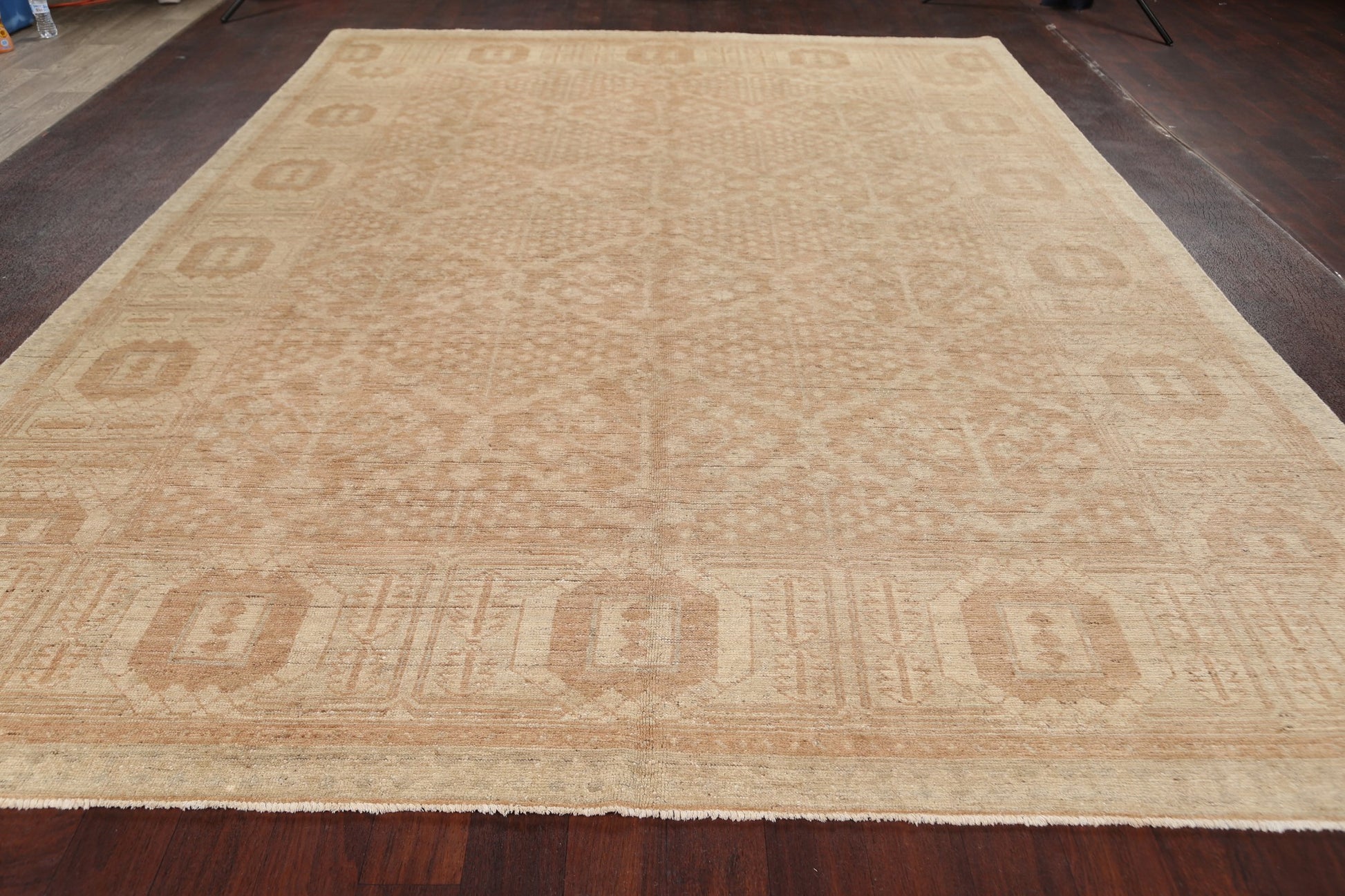 A Beautiful Genuine Pakistan Khotan rug is Hand Knotted by skillful weavers in Pakistan with 100% Wool Material. This rug is in New, First Quality condition. dimensions are 12' 3'' X 9' 1'' in foot and 373 X 277 in centimeter. the primary color is Brown.