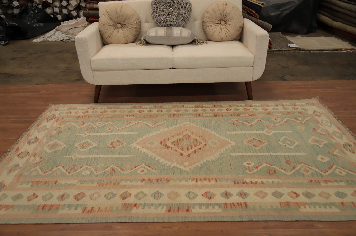 A Beautiful Genuine Pakistan Kilim rug is Hand Woven by skillful weavers in Pakistan with 100% Wool Material. This rug is in New, First Quality condition. dimensions are 8' 0'' X 4' 10'' in foot and 244 X 147 in centimeter. the primary color is Multi-Colored.