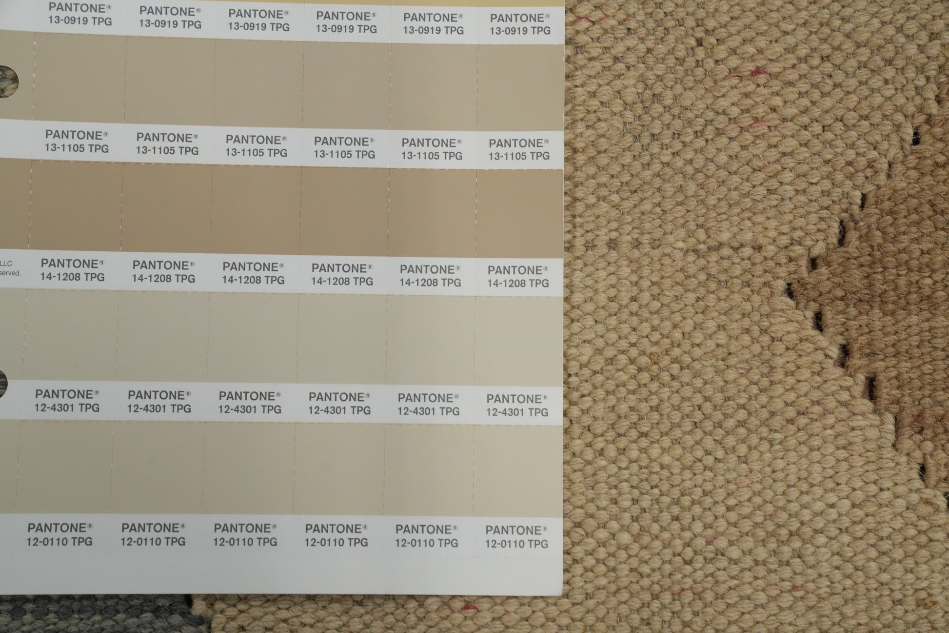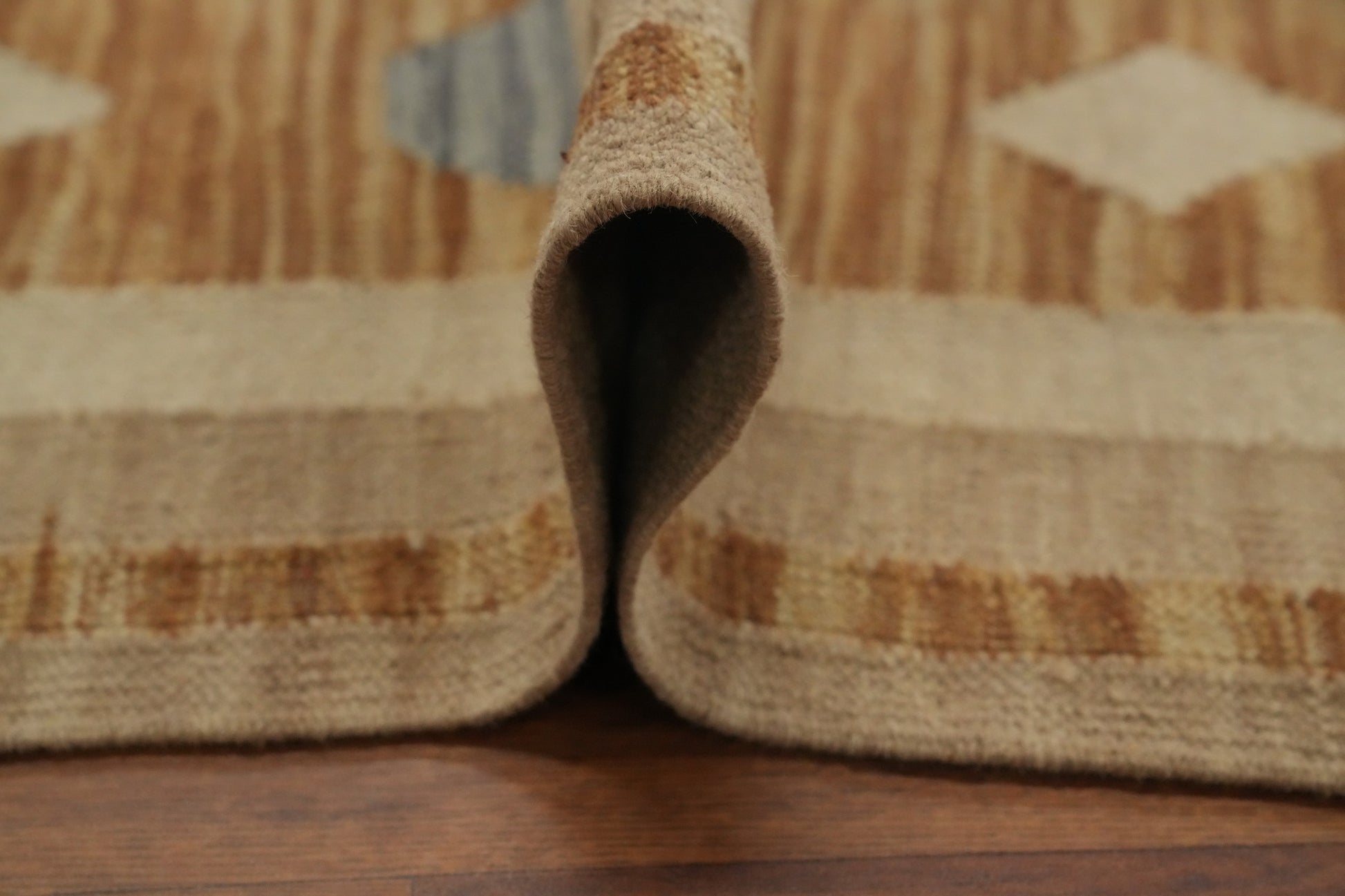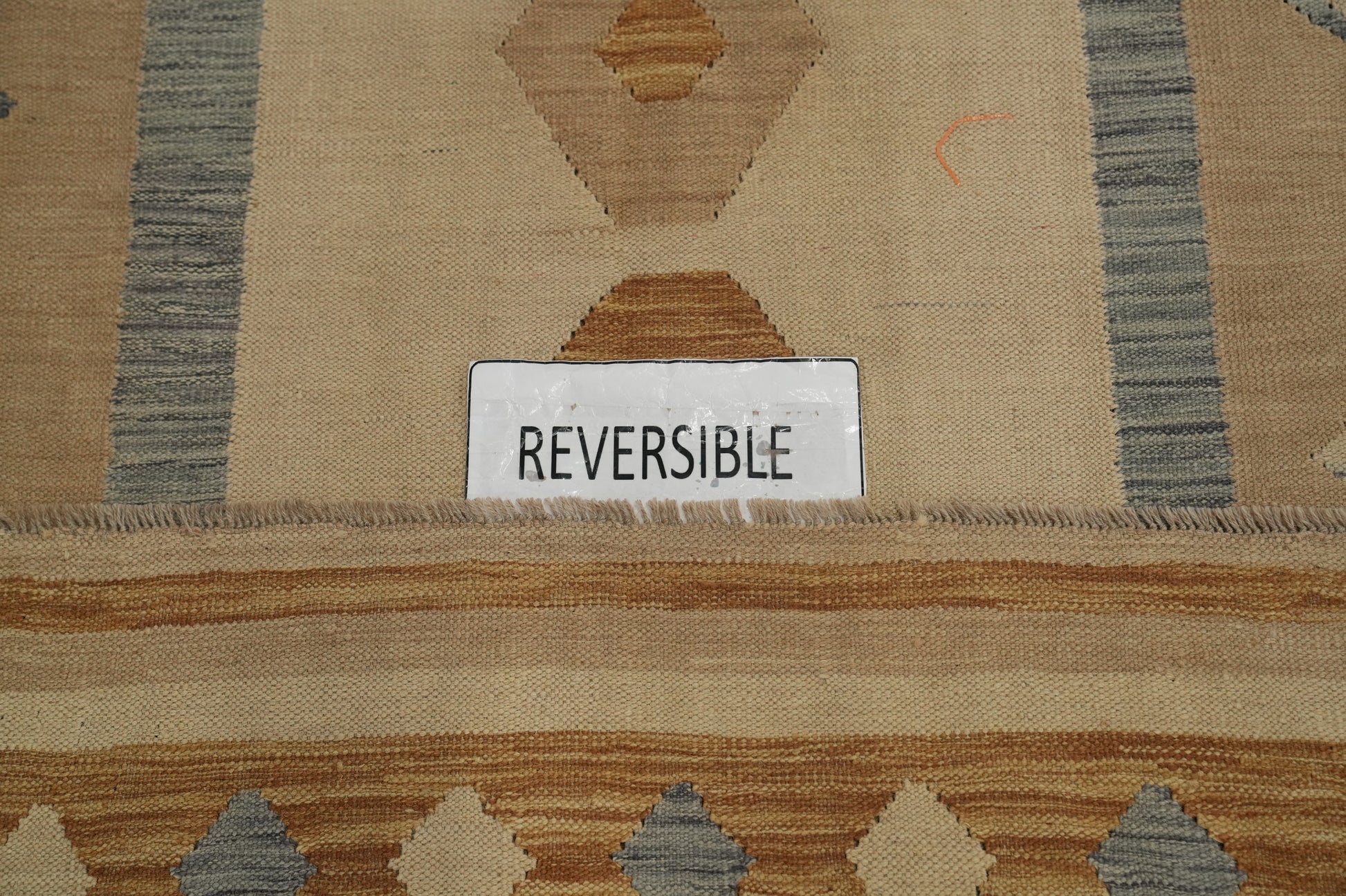 A Beautiful Genuine Pakistan Kilim rug is Hand Woven by skillful weavers in Pakistan with 100% Wool Material. This rug is in New, First Quality condition. dimensions are 9' 11'' X 6' 6'' in foot and 302 X 198 in centimeter. the primary color is Beige & Ivories.