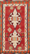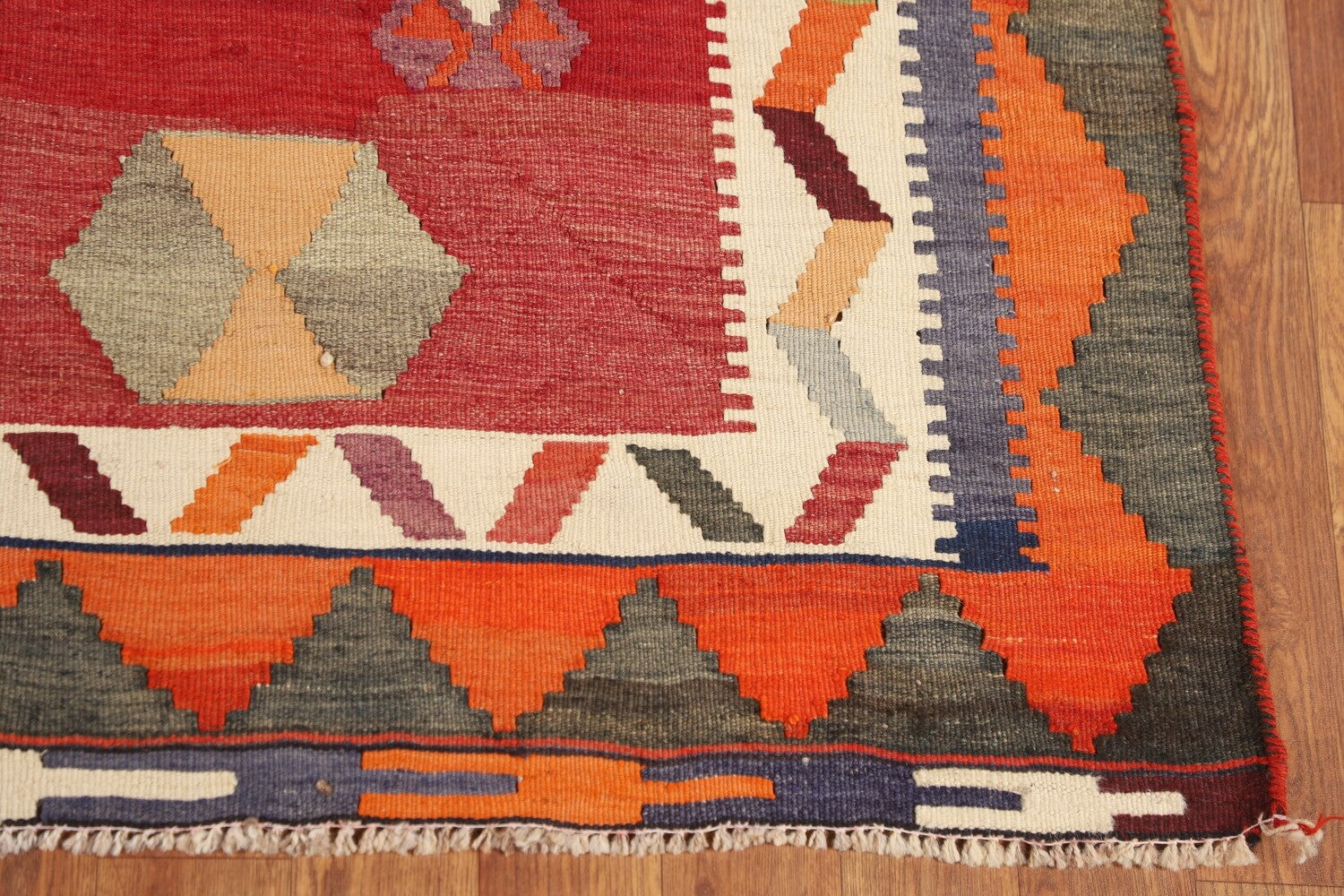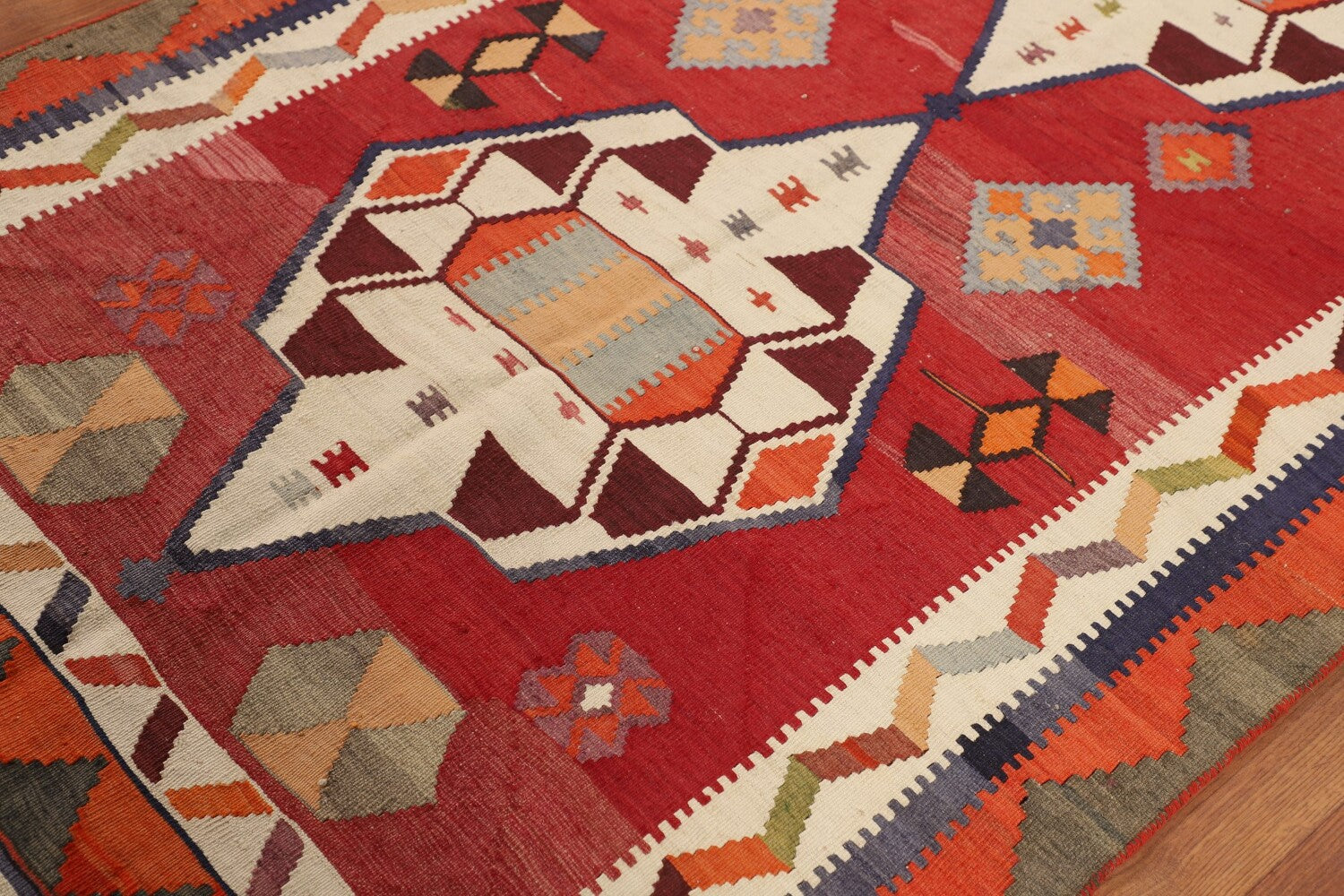 A Beautiful Genuine Persia ( Persia ) Kilim (Qashqai) rug is Hand Woven by skillful weavers in Persia ( Persia ) with 100% Wool Material. This rug is in Very Good (Abrash) condition. dimensions are 8' 1'' X 4' 5'' in foot and 246 X 135 in centimeter. the primary color is Red.