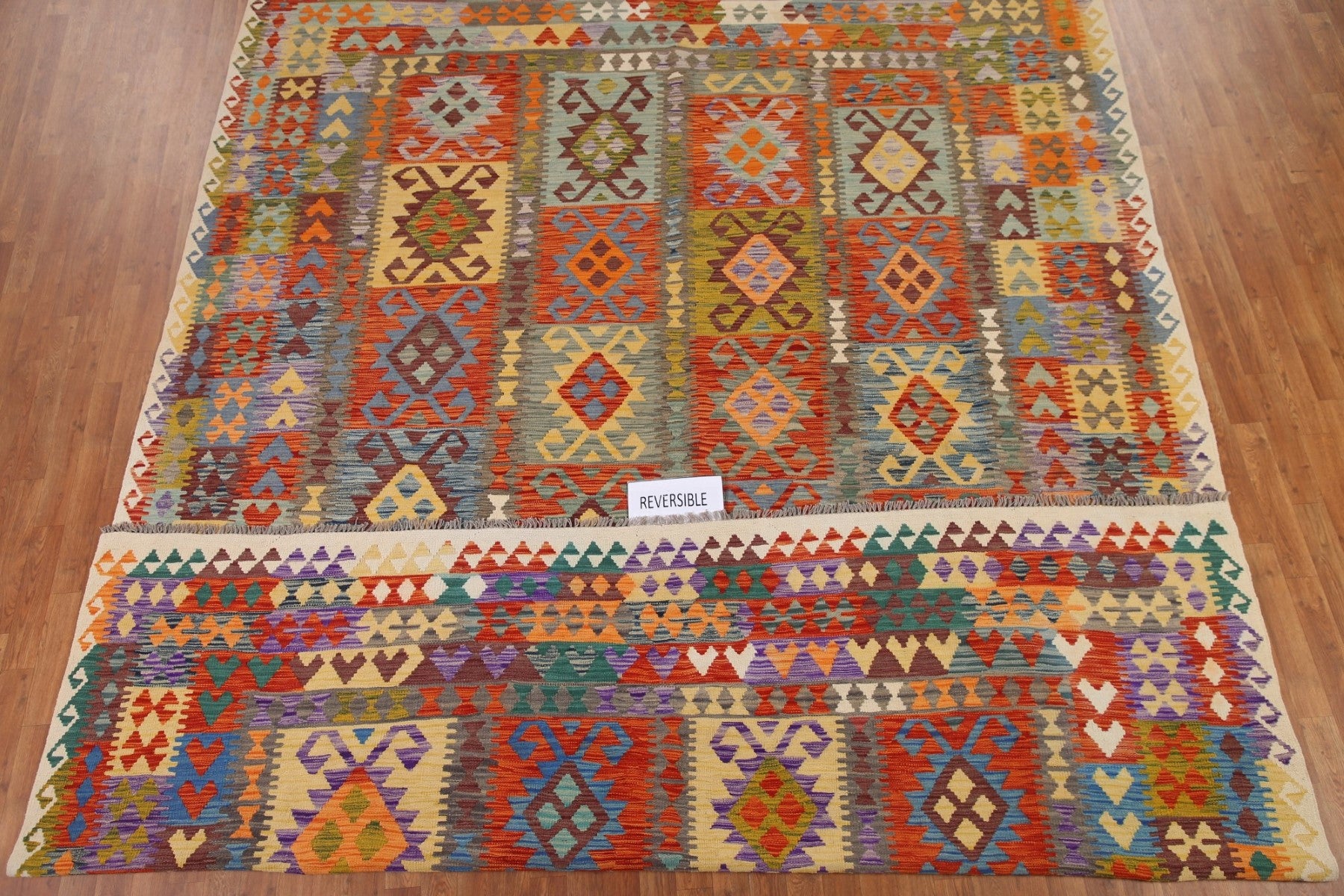 Geometric Kilim Reversible Wool Area Rug 10x13
