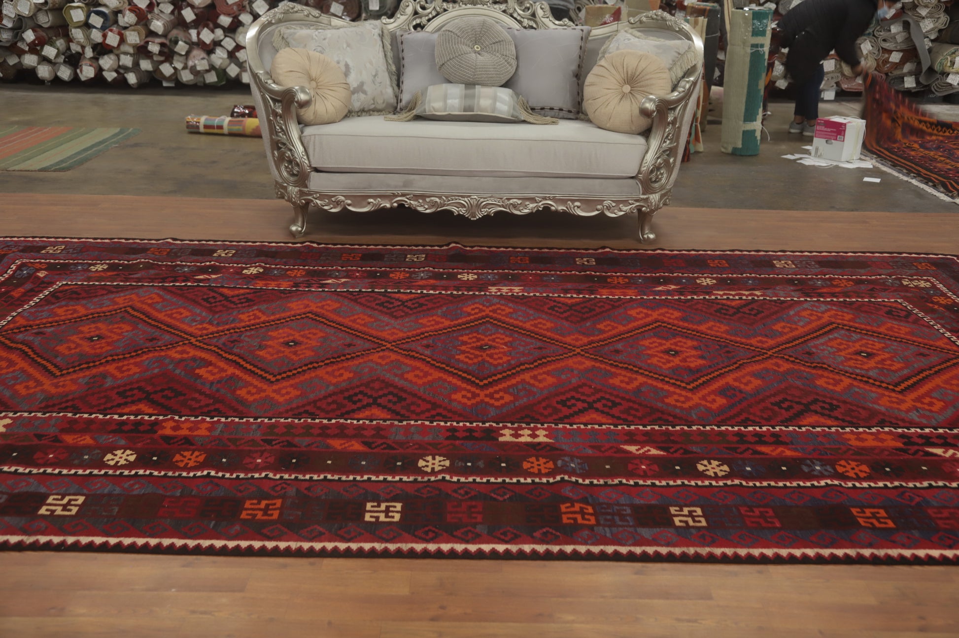 Geometric Kilim Vegetable Dye Large Rug 8x15