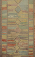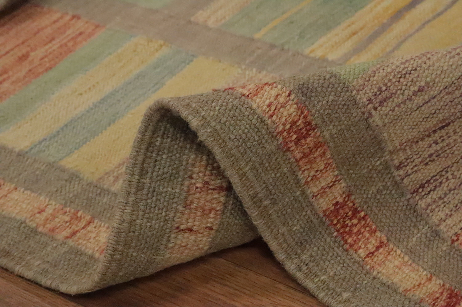A Beautiful Genuine Pakistan Kilim rug is Hand Woven by skillful weavers in Pakistan with 100% Wool Material. This rug is in New, First Quality condition. dimensions are 6' 9'' X 4' 11'' in foot and 206 X 150 in centimeter. the primary color is Multi-Colored.