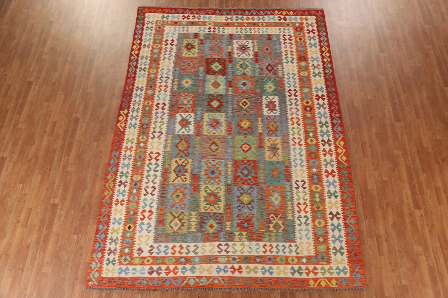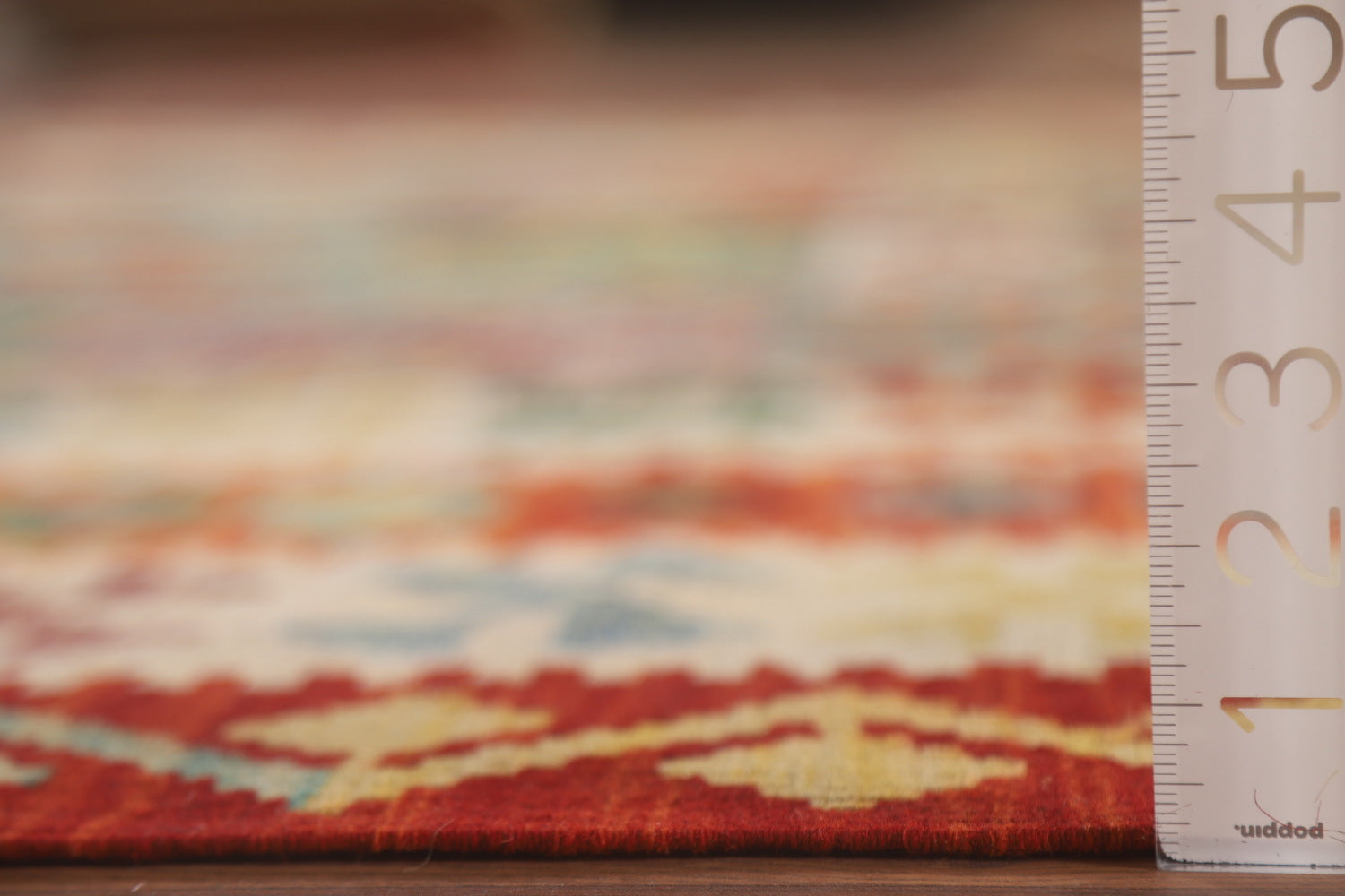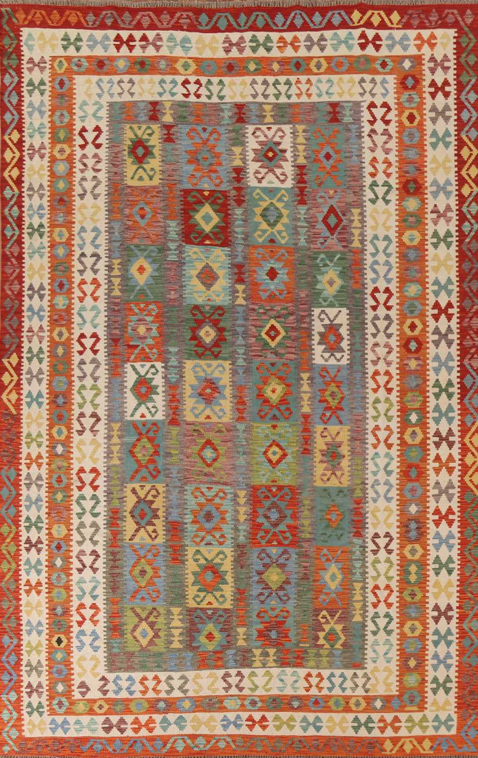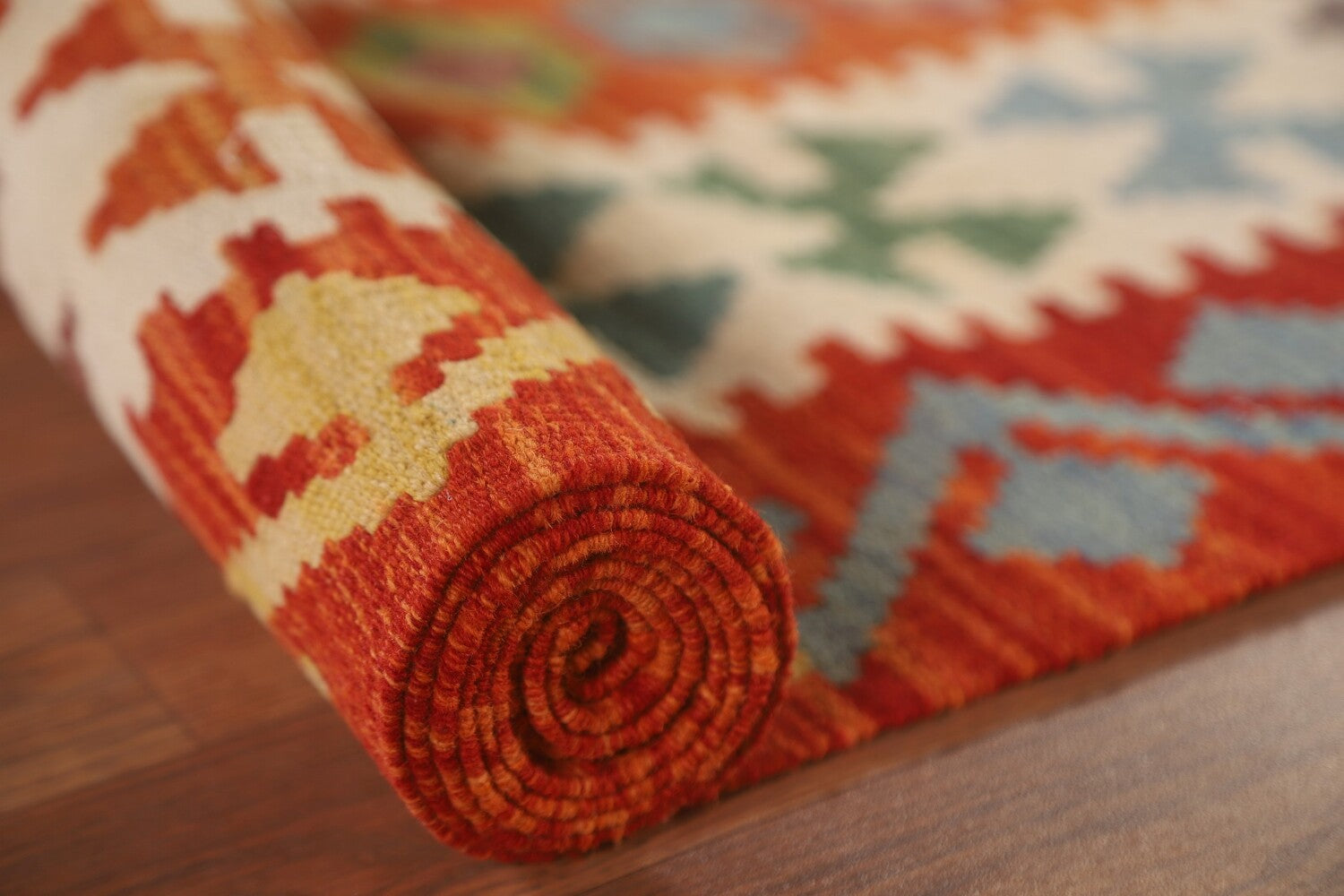 A Beautiful Genuine Pakistan Kilim rug is Hand Woven by skillful weavers in Pakistan with 100% Wool Material. This rug is in New, First Quality condition. dimensions are 11' 4'' X 8' 0'' in foot and 345 X 244 in centimeter. the primary color is Multi-Colored.