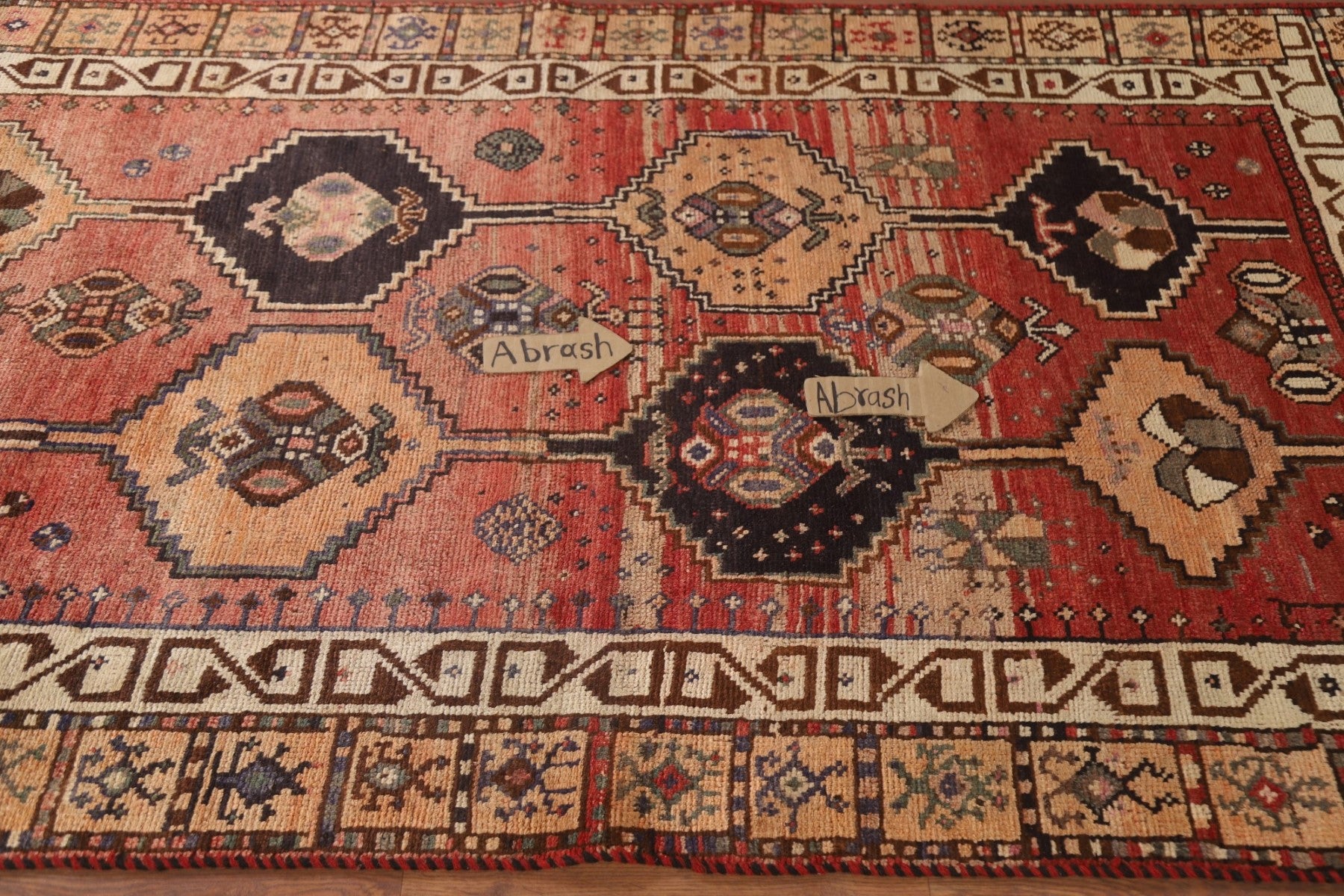 A Beautiful Genuine Persia ( Persia ) Lori rug is Hand Knotted by skillful weavers in Persia ( Persia ) with 100% Wool Material. This rug is in Very Good (Low Pile-Abrash) condition. dimensions are 7' 10'' X 4' 0'' in foot and 239 X 122 in centimeter. the primary color is Red.