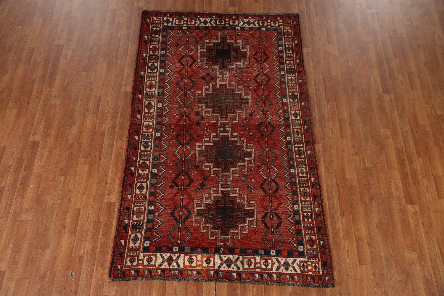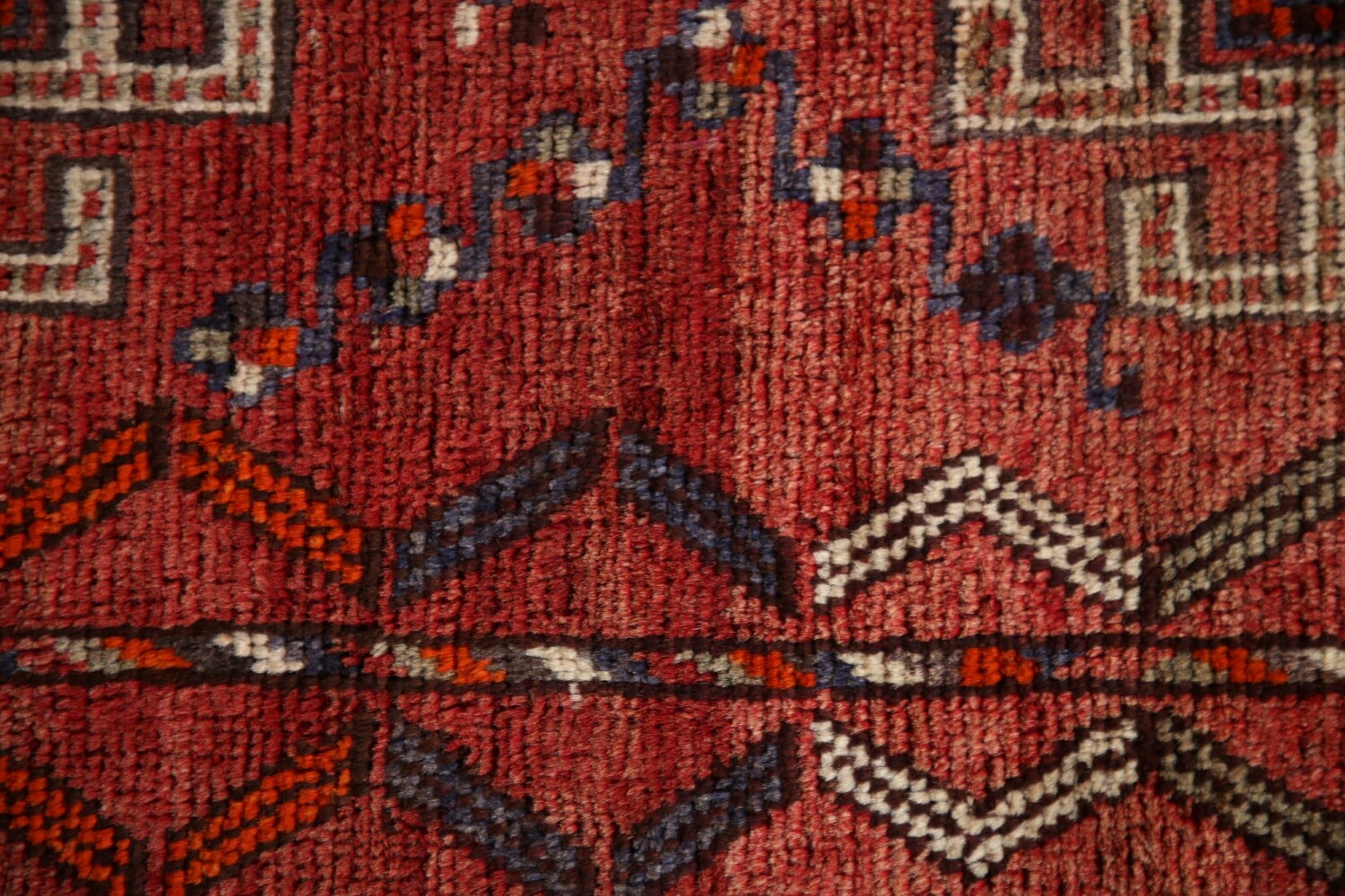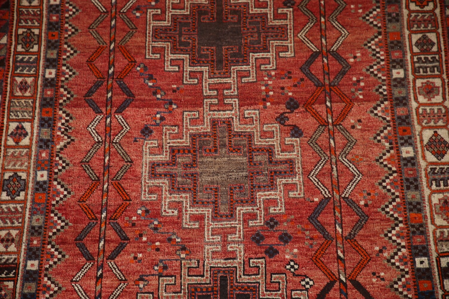 A Beautiful Genuine Persia ( Persia ) Lori rug is Hand Knotted by skillful weavers in Persia ( Persia ) with 100% Wool Material. This rug is in Very Good (Abrash) condition. dimensions are 8' 0'' X 5' 0'' in foot and 244 X 152 in centimeter. the primary color is Red.