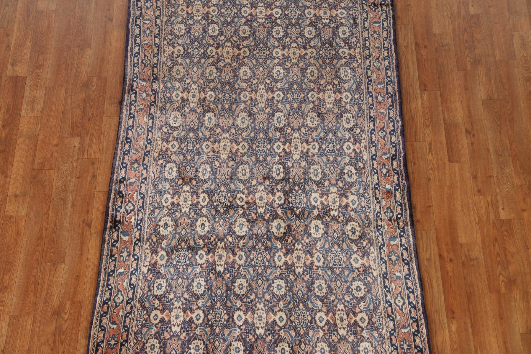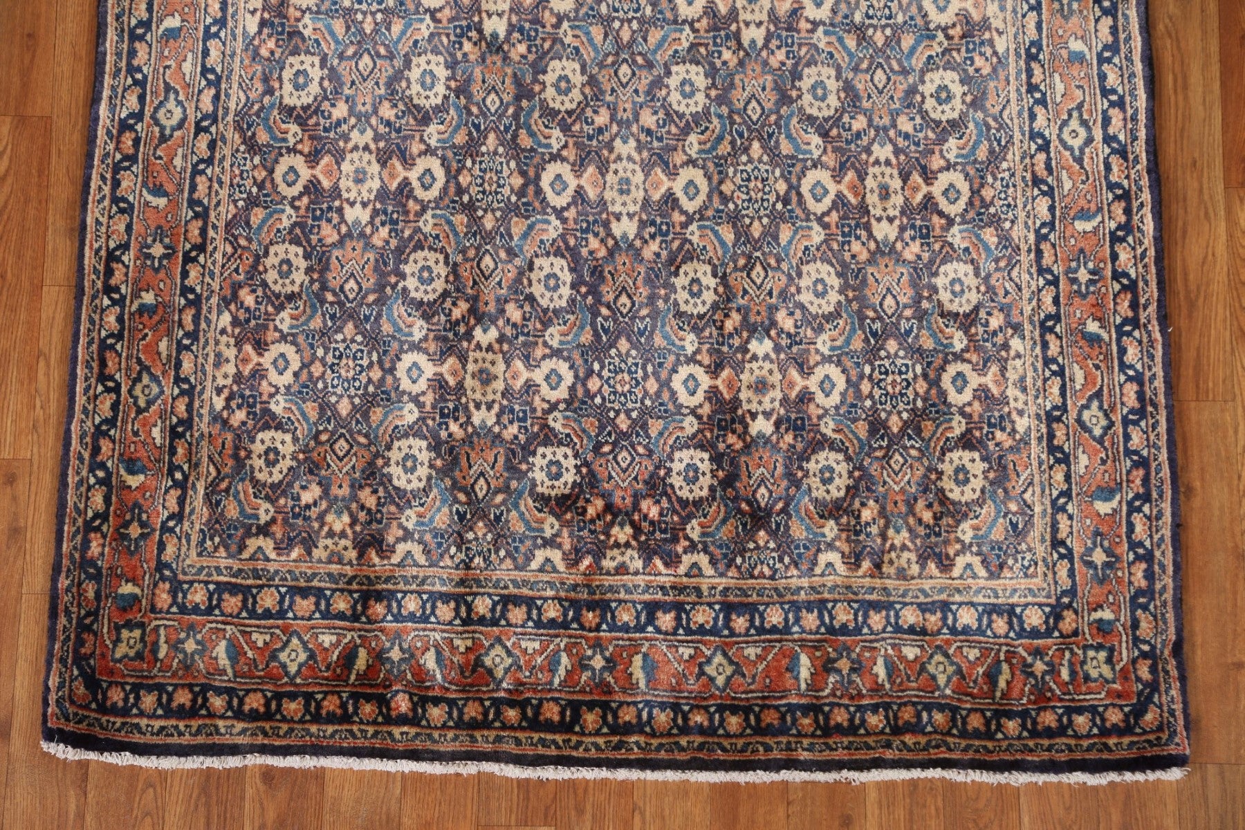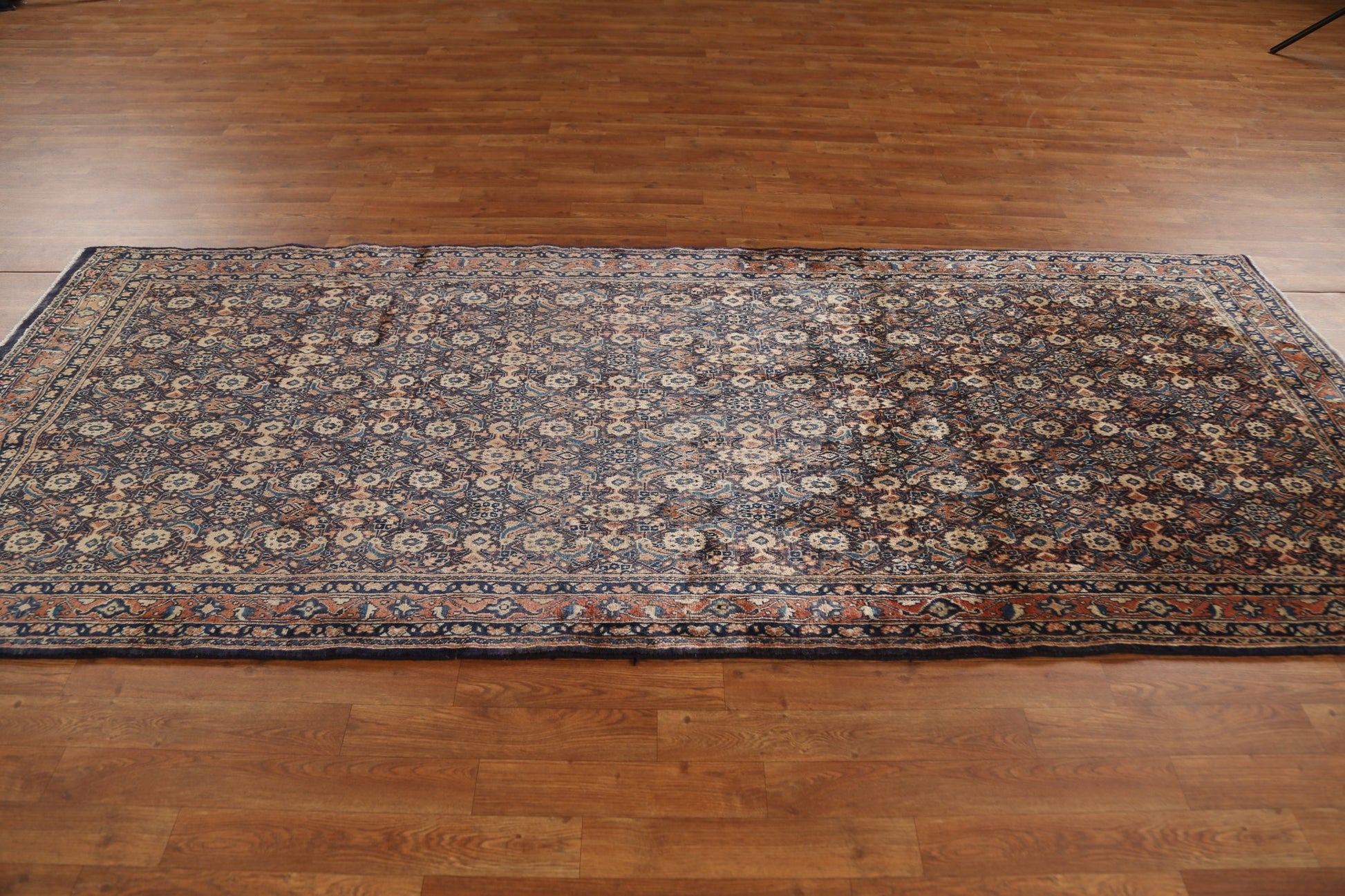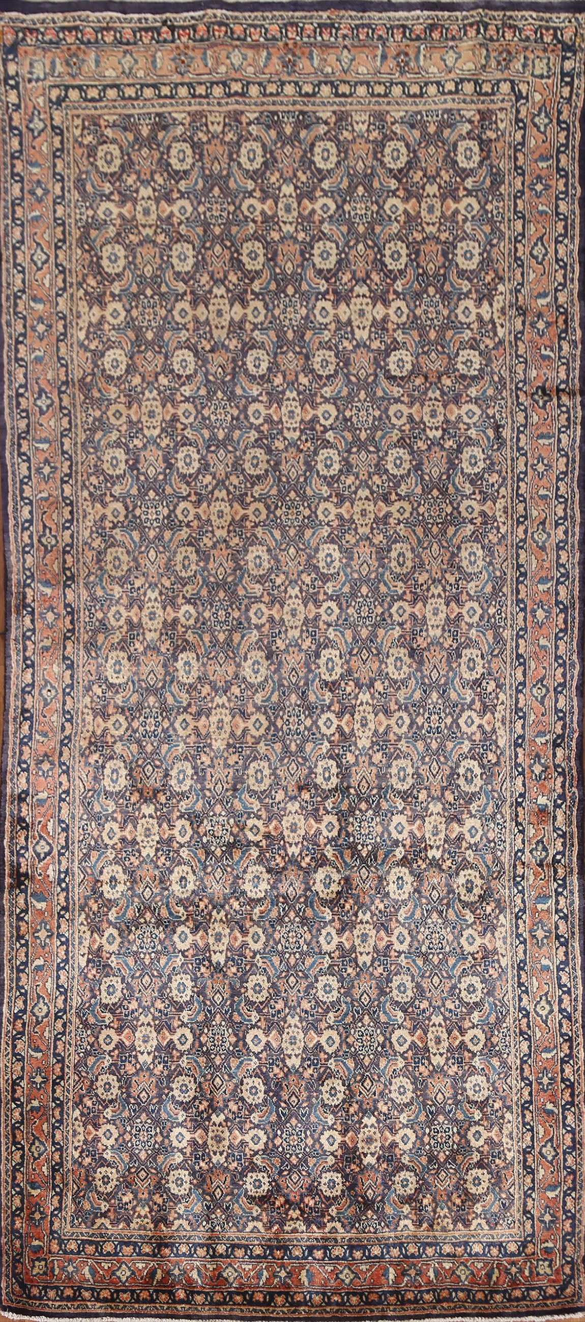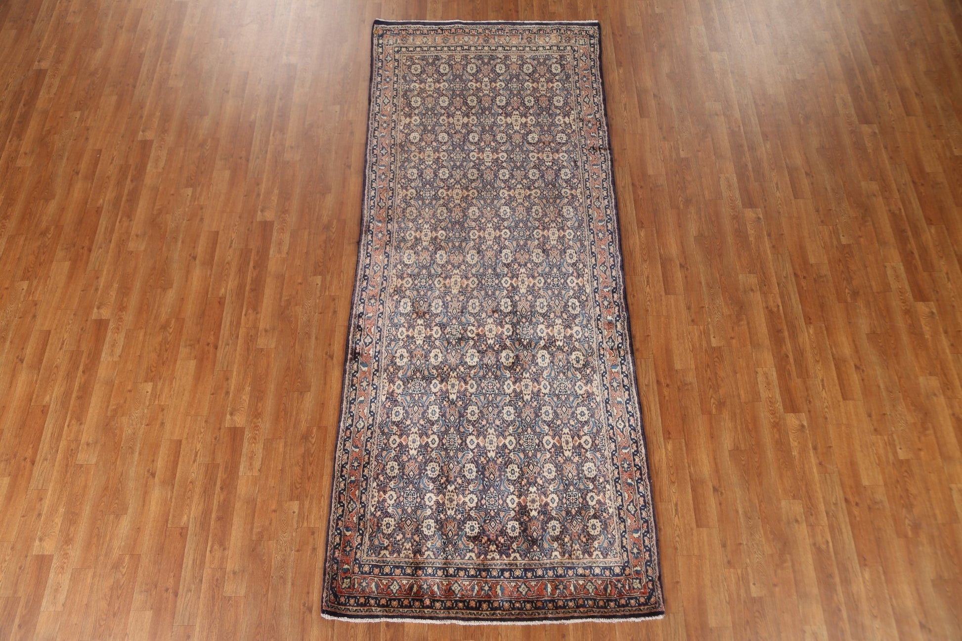 A Beautiful Genuine Persia ( Persia ) Mahal rug is Hand Knotted by skillful weavers in Persia ( Persia ) with 100% Wool Material. This rug is in Very Good condition. dimensions are 9' 11'' X 3' 11'' in foot and 302 X 119 in centimeter. the primary color is Navy Blue & Blues.