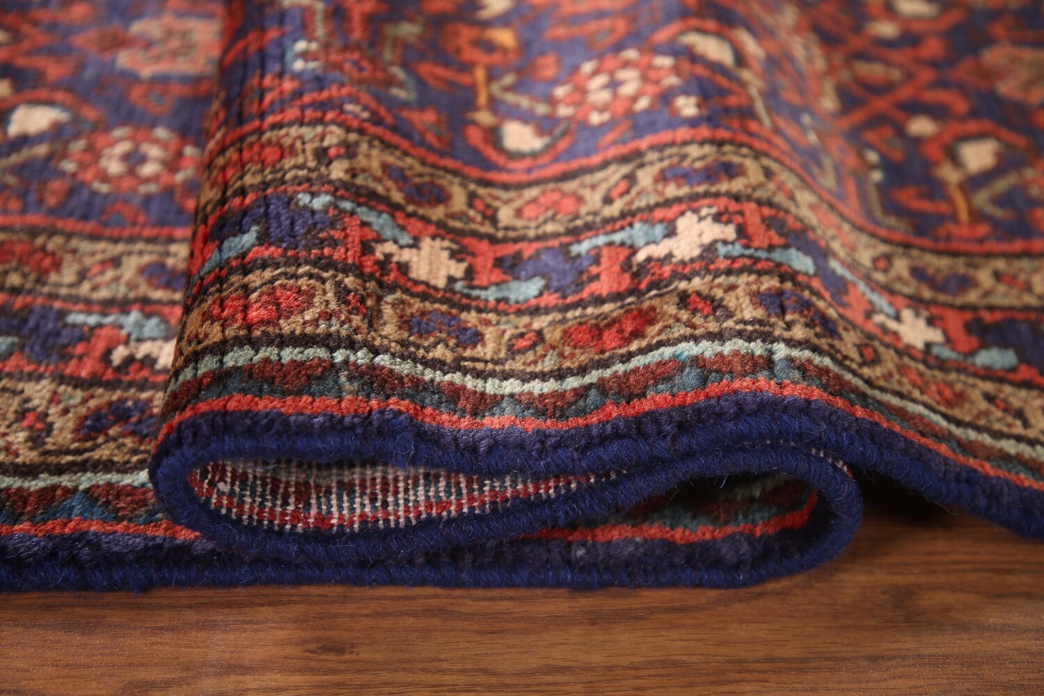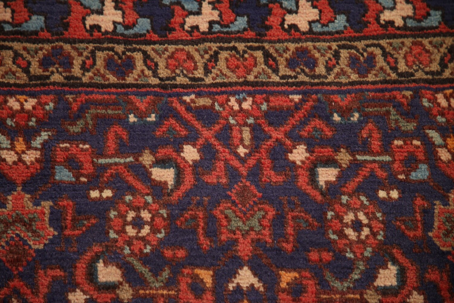 A Beautiful Genuine Persia ( Persia ) Mahal rug is Hand Knotted by skillful weavers in Persia ( Persia ) with 100% Wool Material. This rug is in Very Good condition. dimensions are 9' 8'' X 3' 7'' in foot and 295 X 109 in centimeter. the primary color is Navy Blue & Blues.