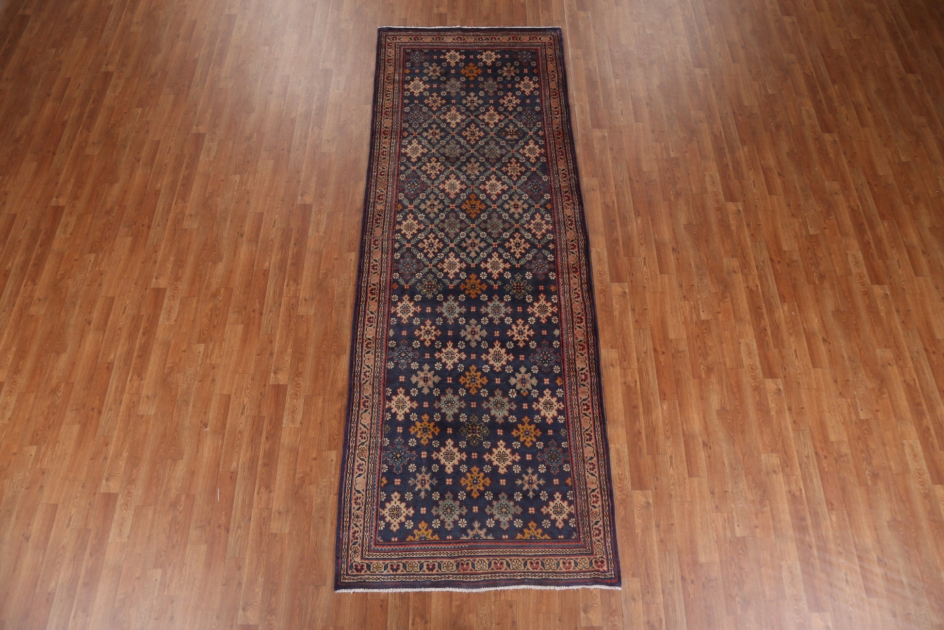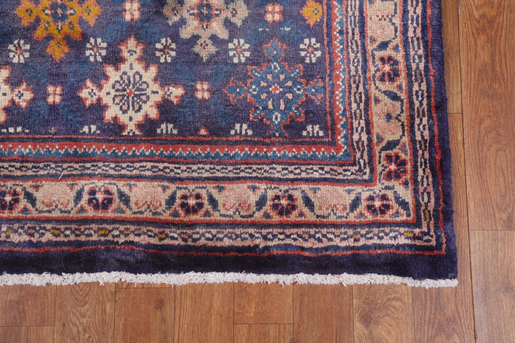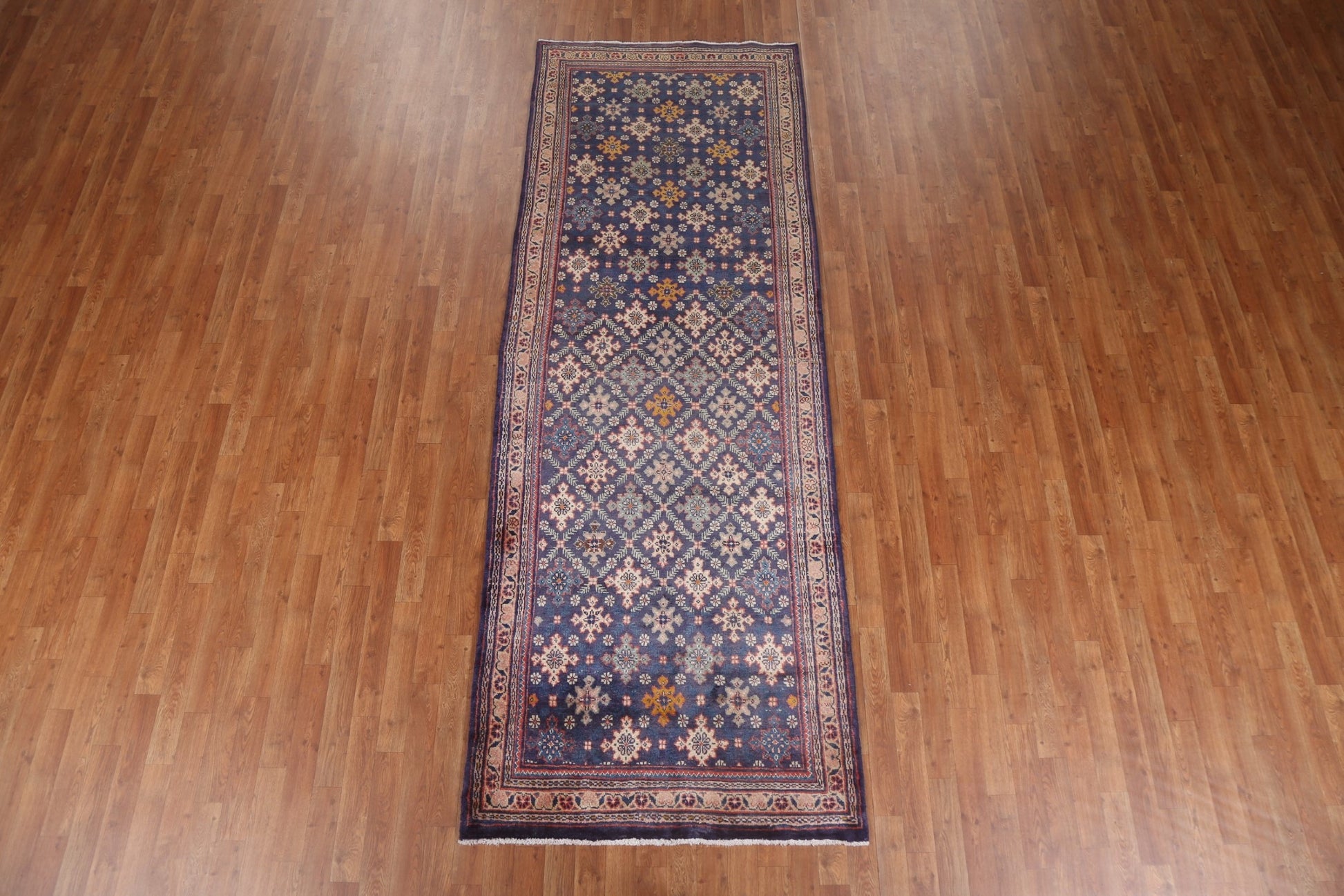 A Beautiful Genuine Persia ( Persia ) Mahal rug is Hand Knotted by skillful weavers in Persia ( Persia ) with 100% Wool Material. This rug is in Very Good (Abrash) condition. dimensions are 10' 7'' X 3' 9'' in foot and 323 X 114 in centimeter. the primary color is Navy Blue & Blues.