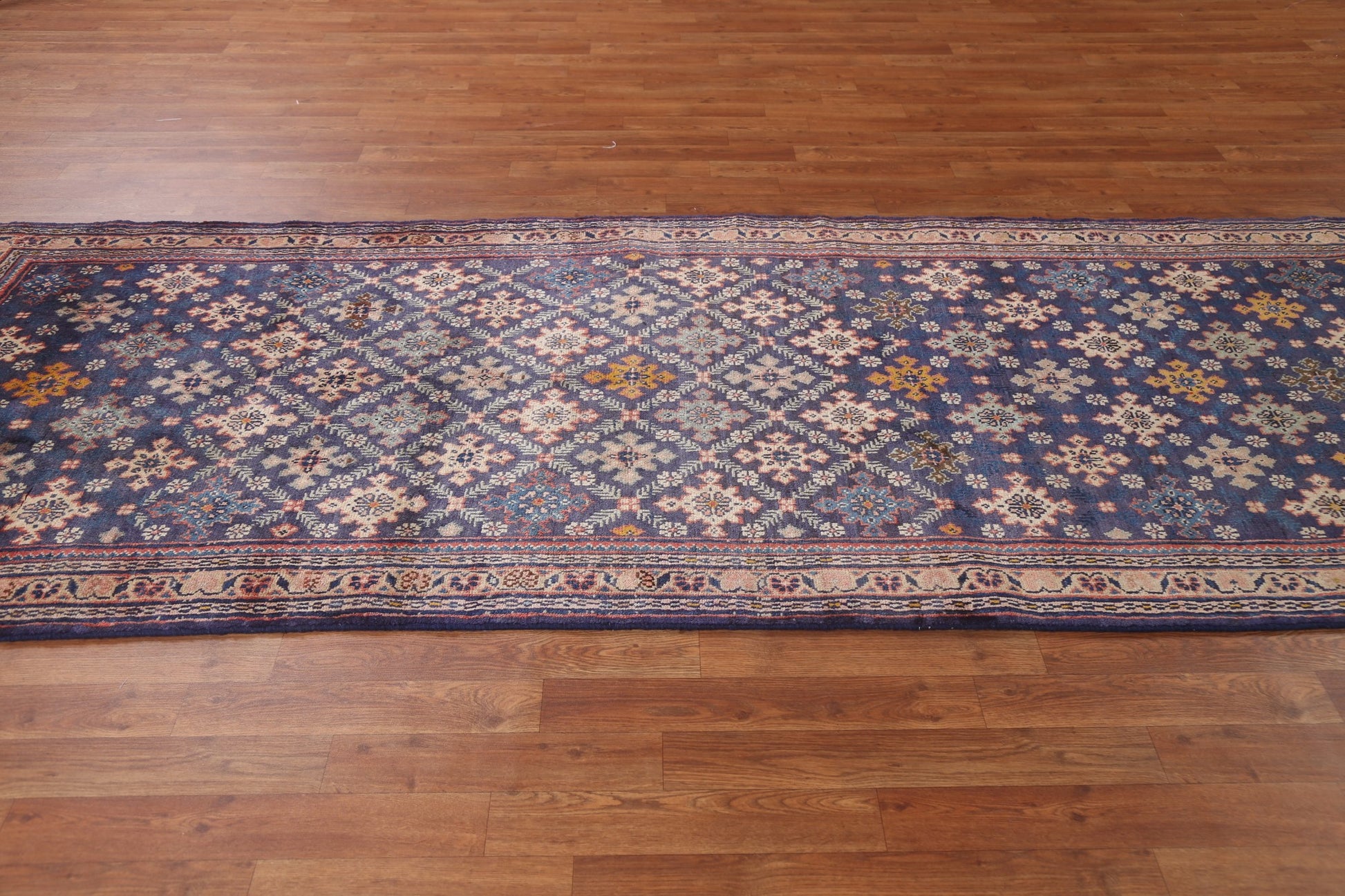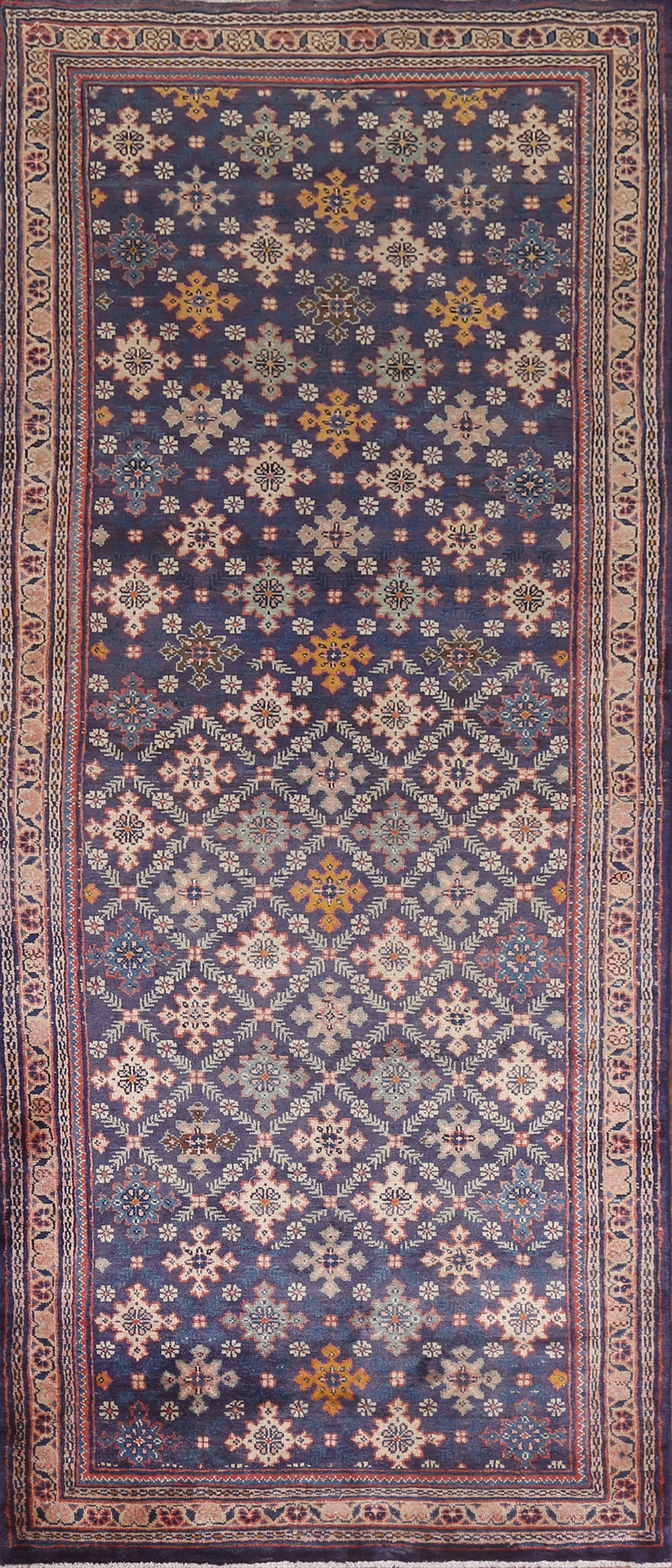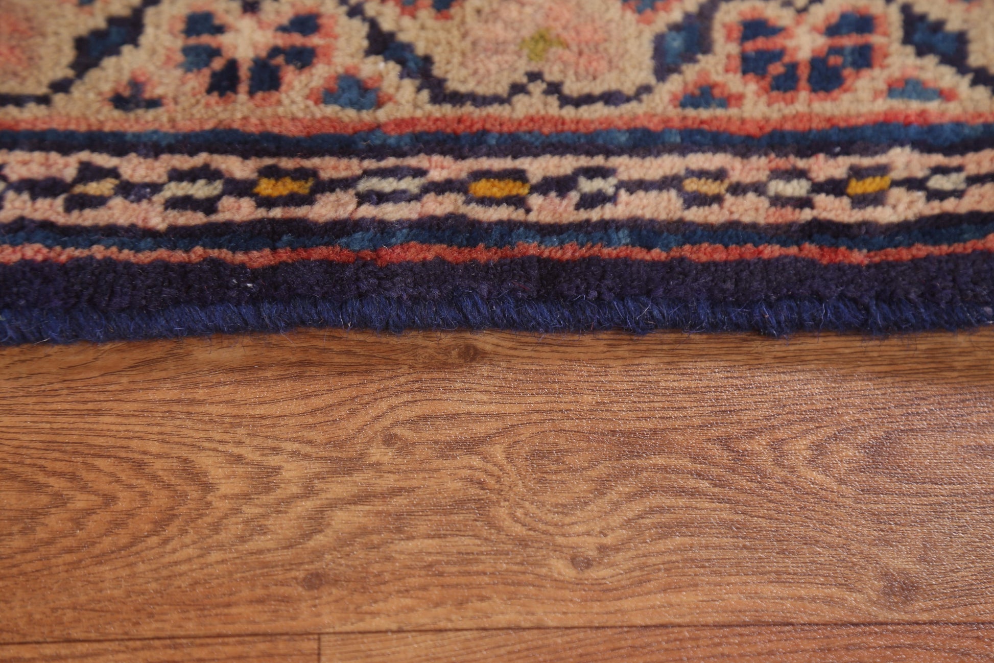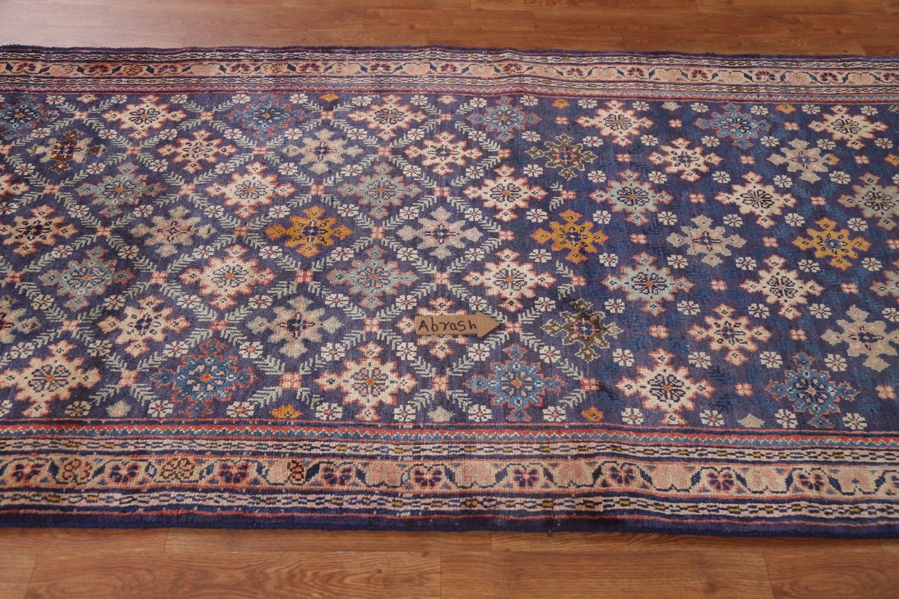 A Beautiful Genuine Persia ( Persia ) Mahal rug is Hand Knotted by skillful weavers in Persia ( Persia ) with 100% Wool Material. This rug is in Very Good (Abrash) condition. dimensions are 10' 7'' X 3' 9'' in foot and 323 X 114 in centimeter. the primary color is Navy Blue & Blues.