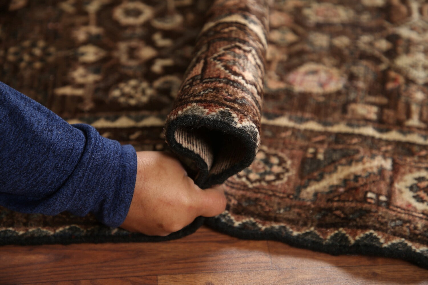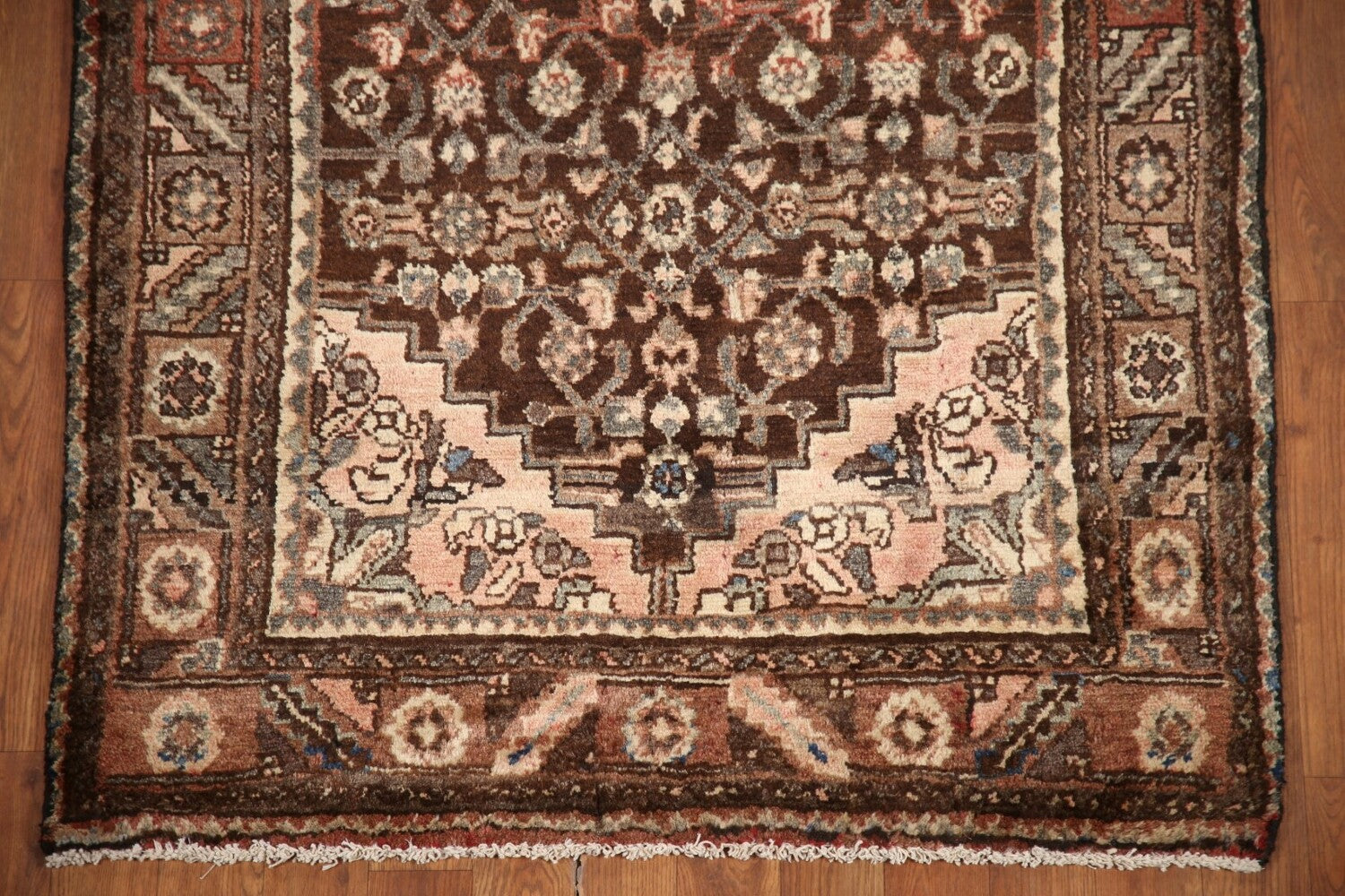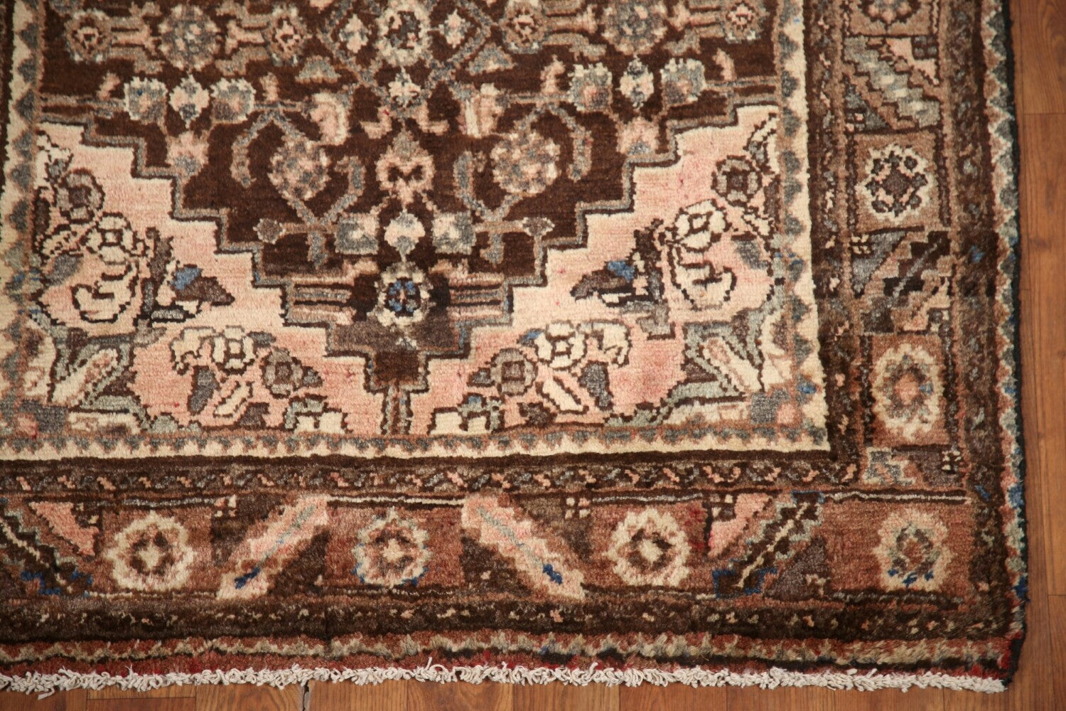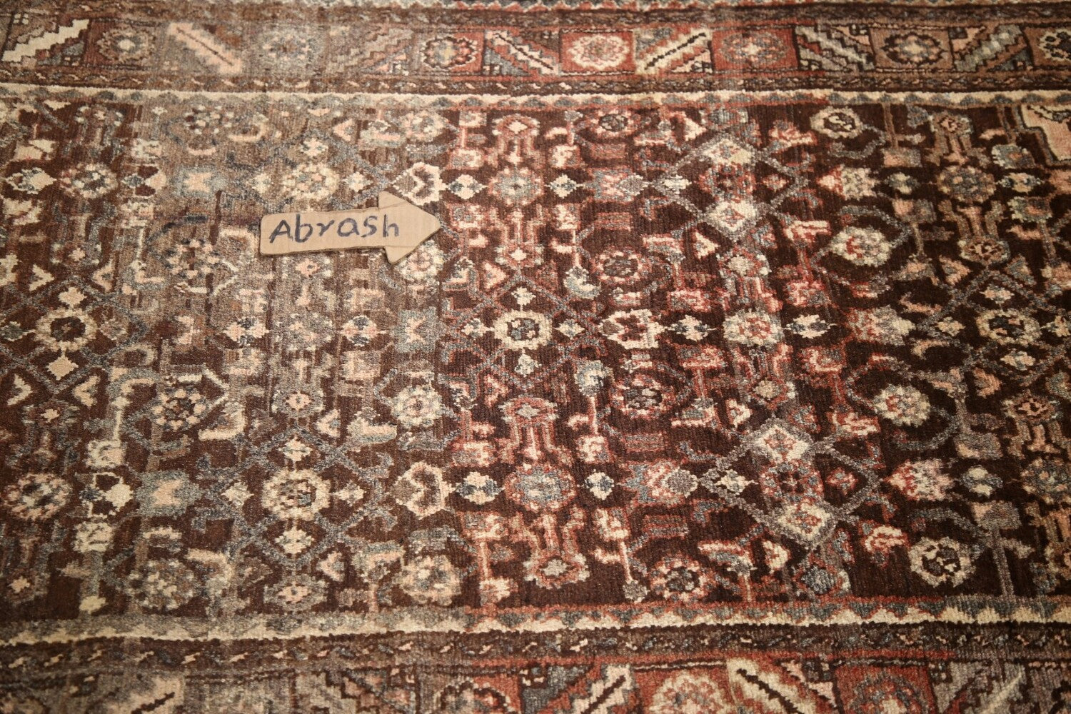 A Beautiful Genuine Persia ( Persia ) Malayer rug is Hand Knotted by skillful weavers in Persia ( Persia ) with 100% Wool Material. This rug is in Very Good (Abrash) condition. dimensions are 10' 2'' X 3' 3'' in foot and 310 X 99 in centimeter. the primary color is Brown.