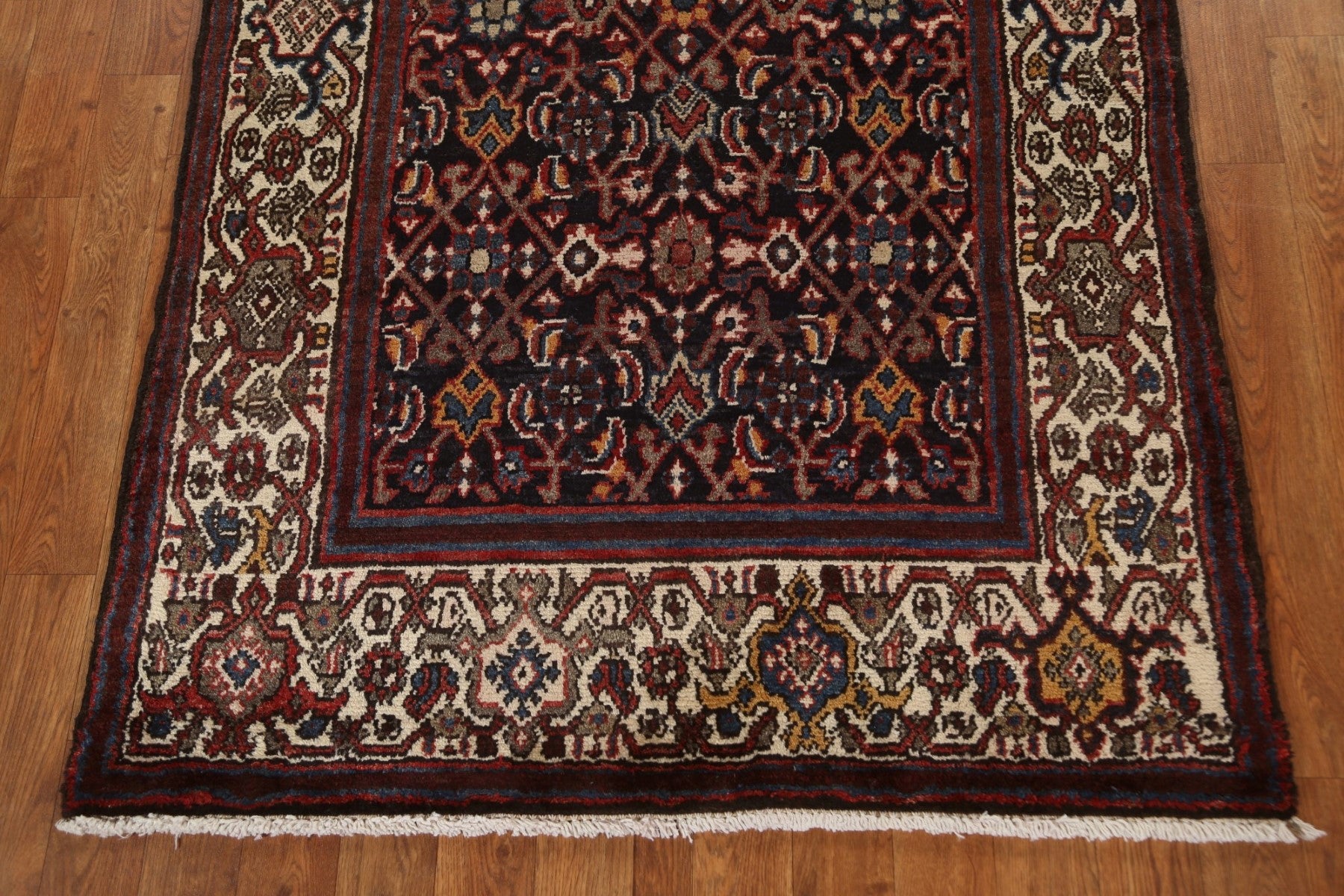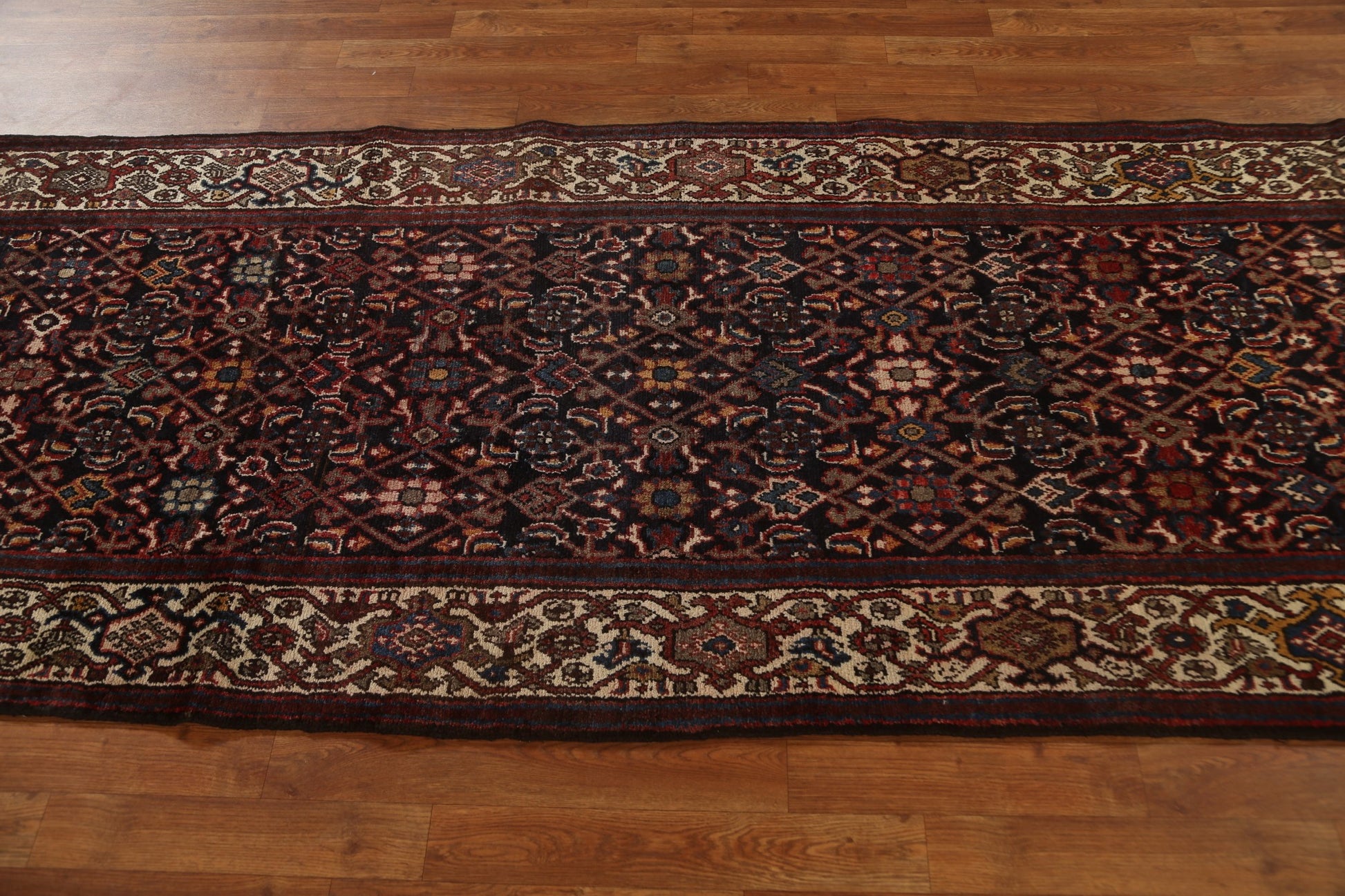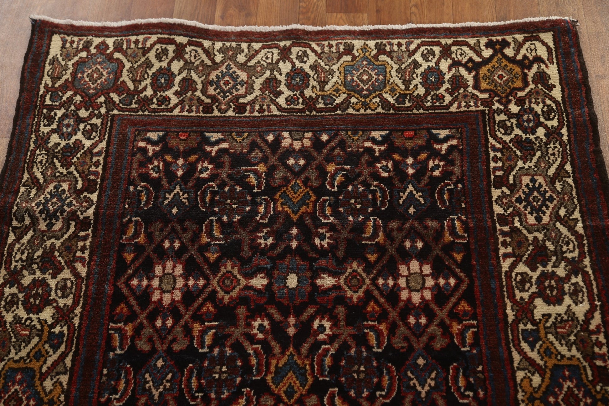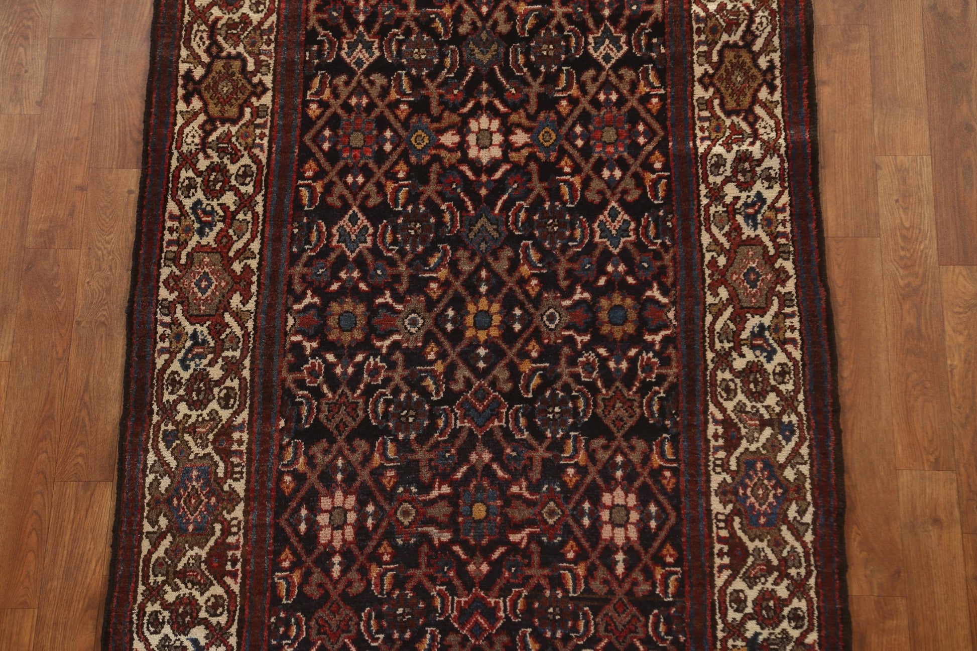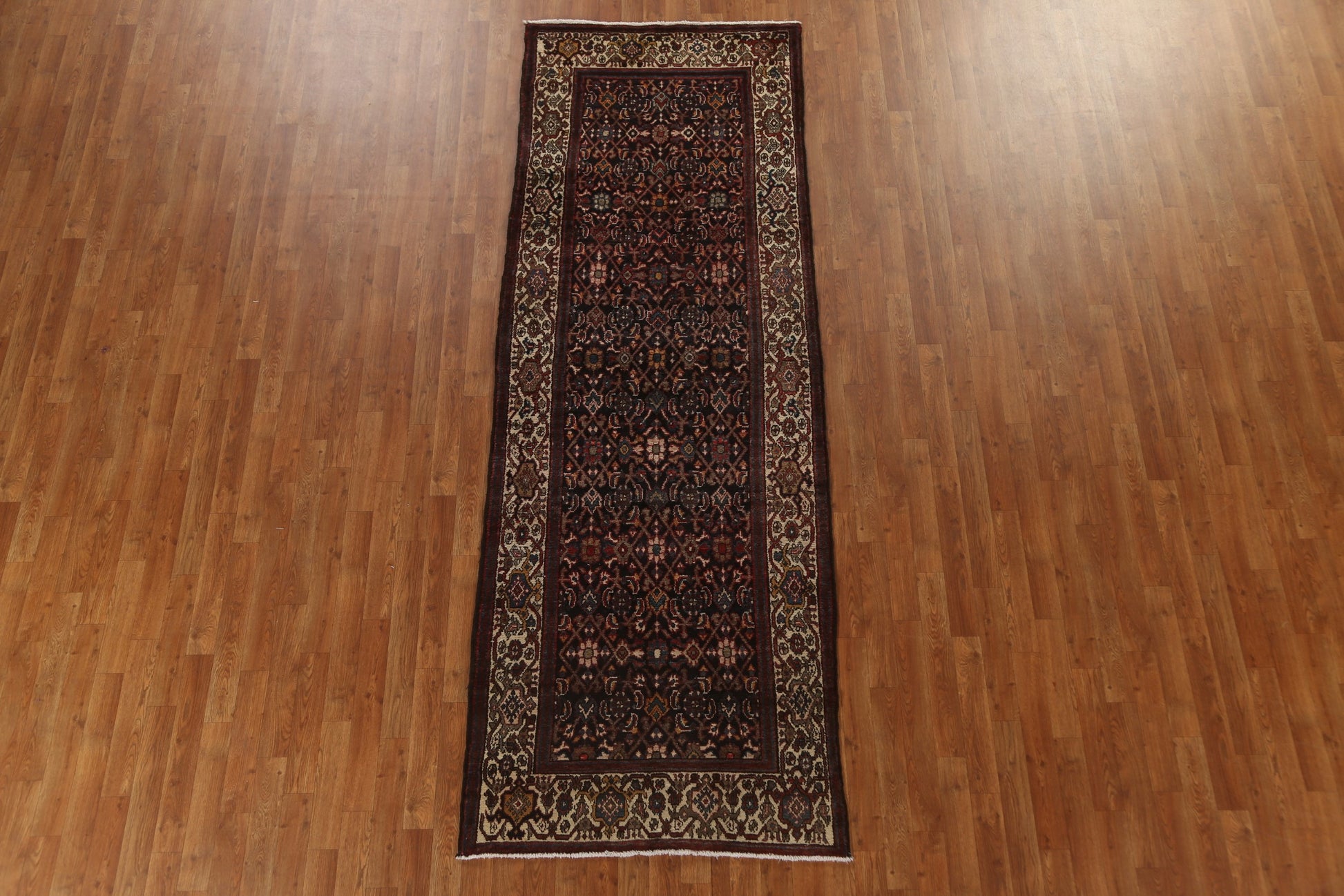 A Beautiful Genuine Persia ( Persia ) Malayer rug is Hand Knotted by skillful weavers in Persia ( Persia ) with 100% Wool Material. This rug is in Very Good condition. dimensions are 9' 11'' X 3' 6'' in foot and 302 X 107 in centimeter. the primary color is Black.