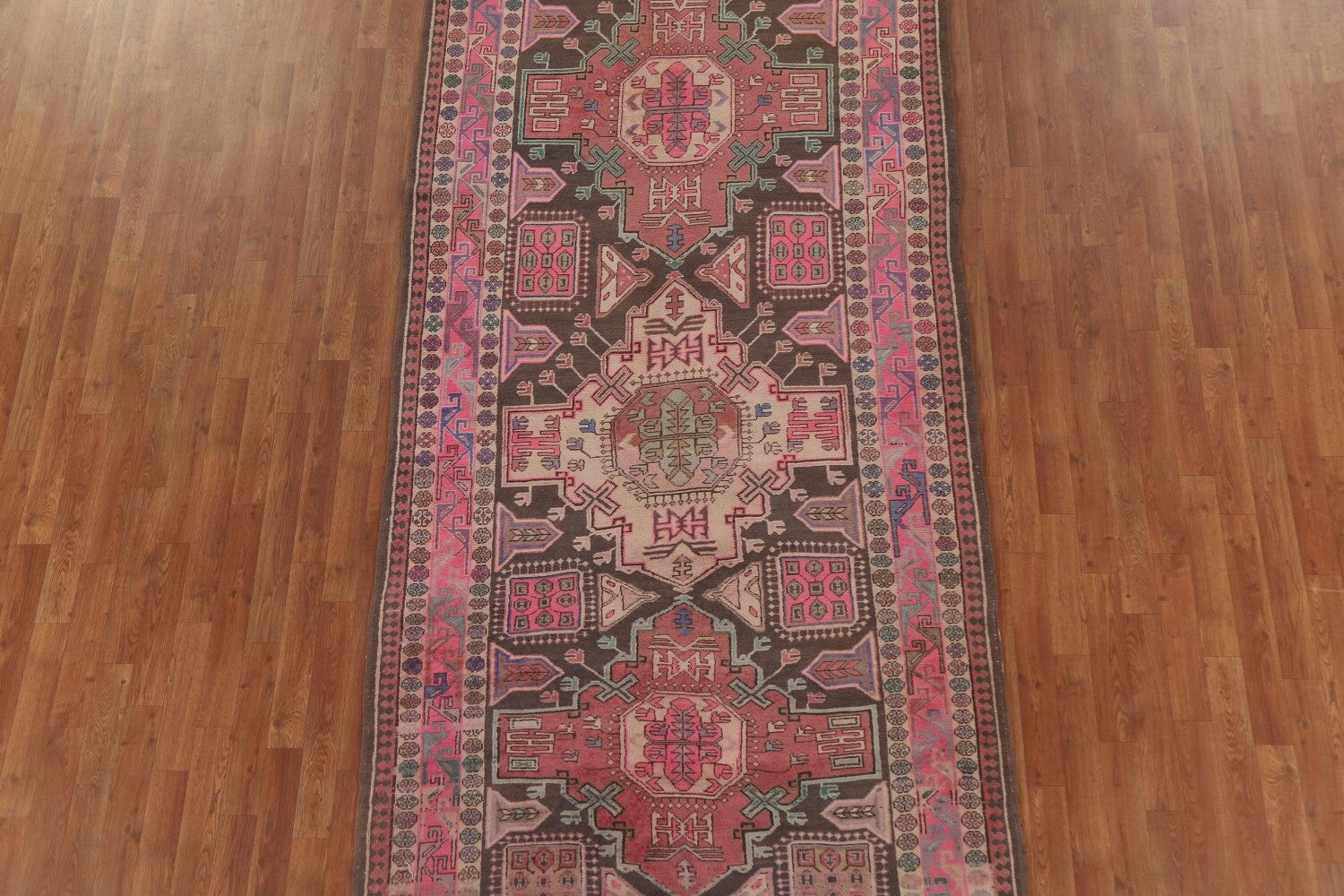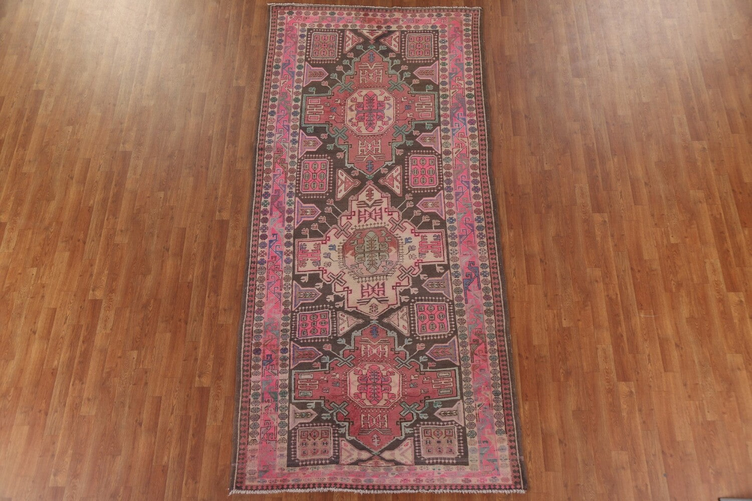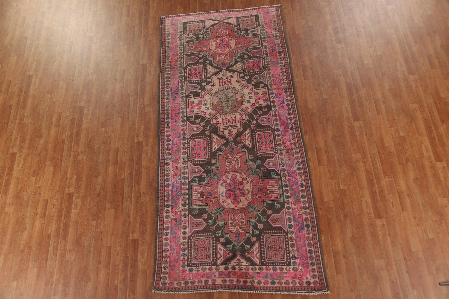 A Beautiful Genuine Persia ( Persia ) Meshkin rug is Hand Knotted by skillful weavers in Persia ( Persia ) with 100% Wool Material. This rug is in Very Good condition. dimensions are 10' 6'' X 4' 10'' in foot and 320 X 147 in centimeter. the primary color is Pink.