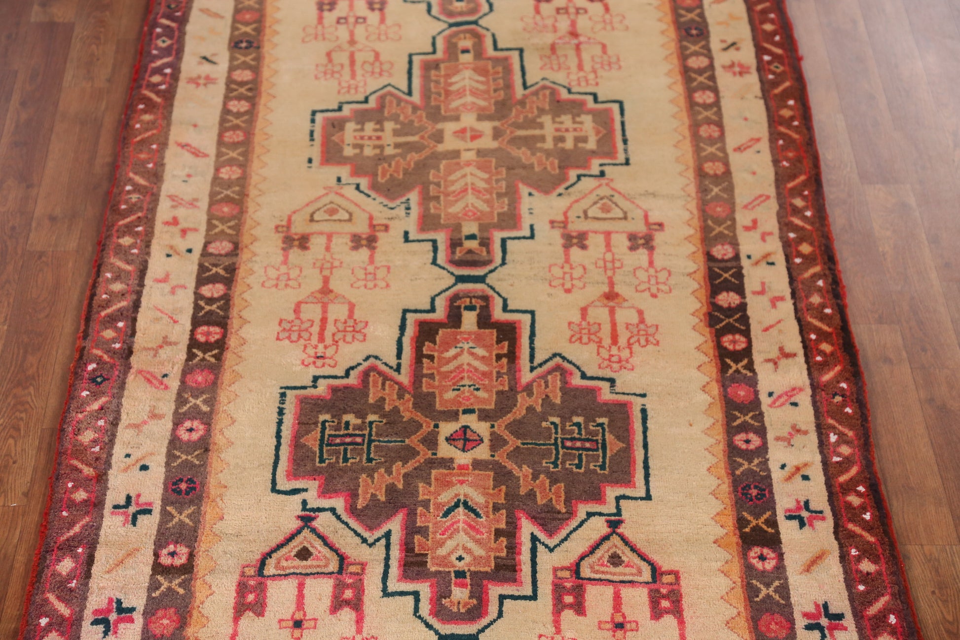 A Beautiful Genuine Persia ( Persia ) Meshkin rug is Hand Knotted by skillful weavers in Persia ( Persia ) with 100% Wool Material. This rug is in Very Good (Repairs- Abrash) condition. dimensions are 10' 11'' X 4' 0'' in foot and 333 X 122 in centimeter. the primary color is Peach.