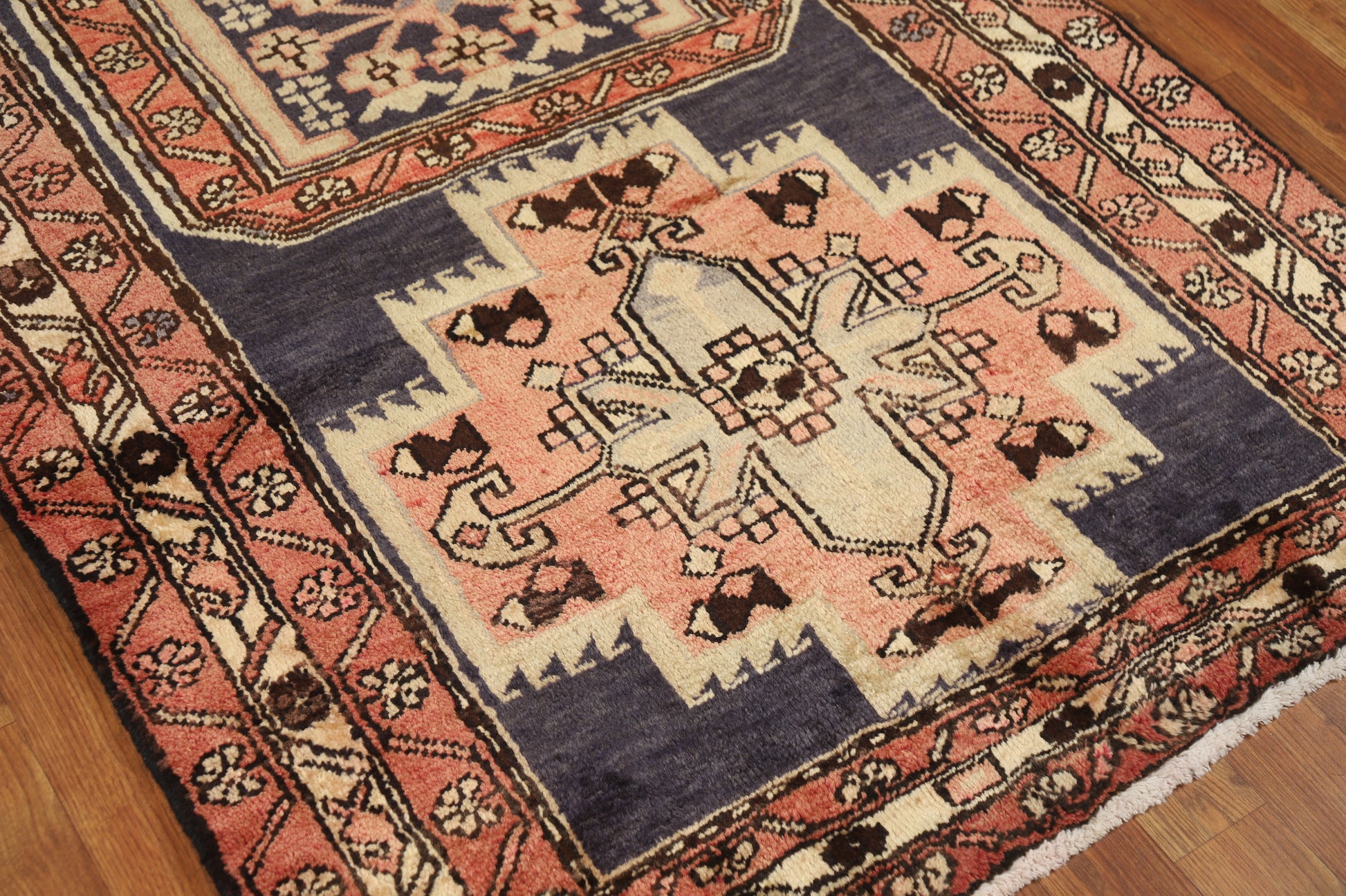 A Beautiful Genuine Persia ( Persia ) Meshkin rug is Hand Knotted by skillful weavers in Persia ( Persia ) with 100% Wool Material. This rug is in Very Good condition. dimensions are 10' 9'' X 3' 6'' in foot and 328 X 107 in centimeter. the primary color is Navy Blue & Blues.