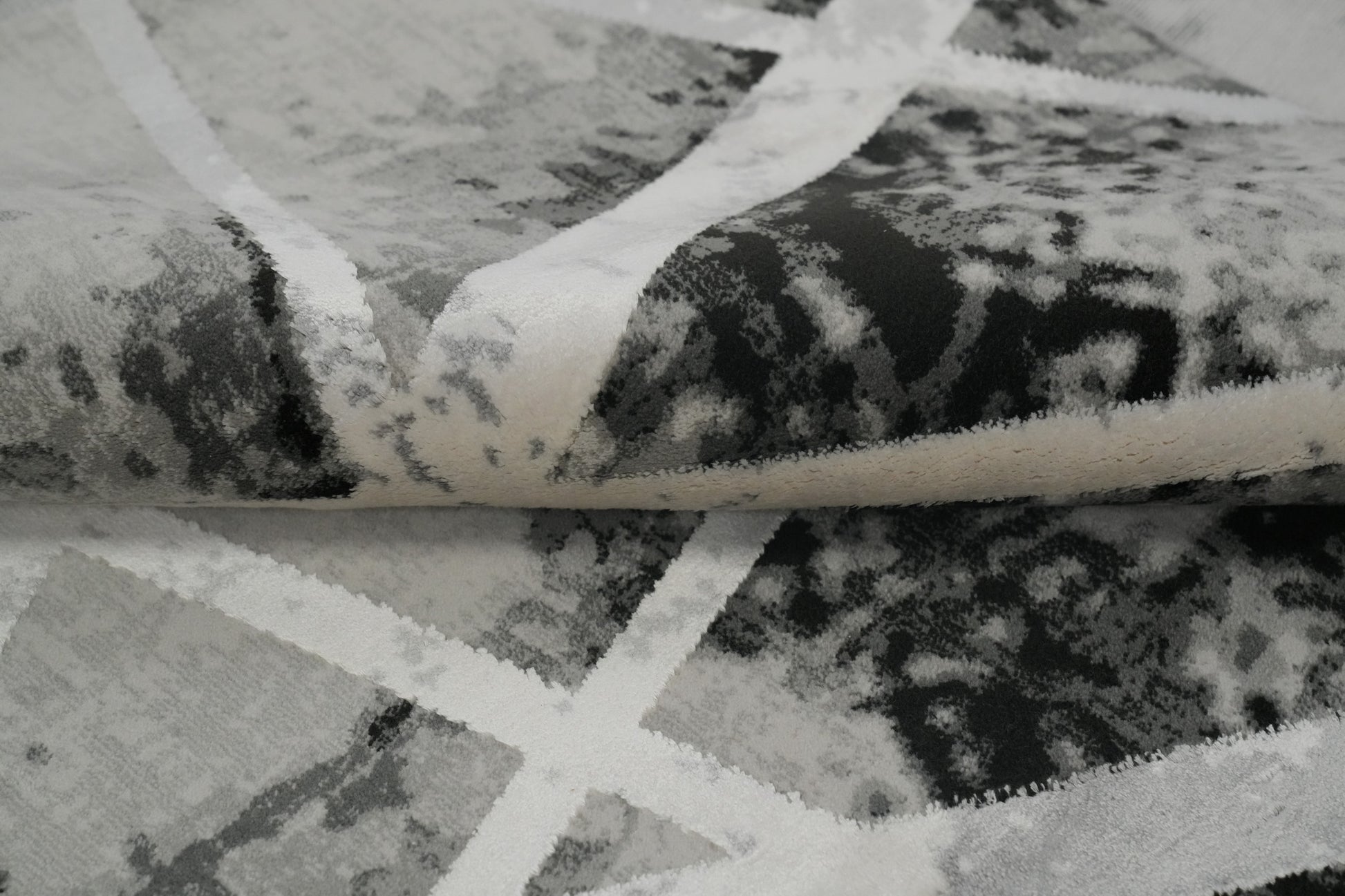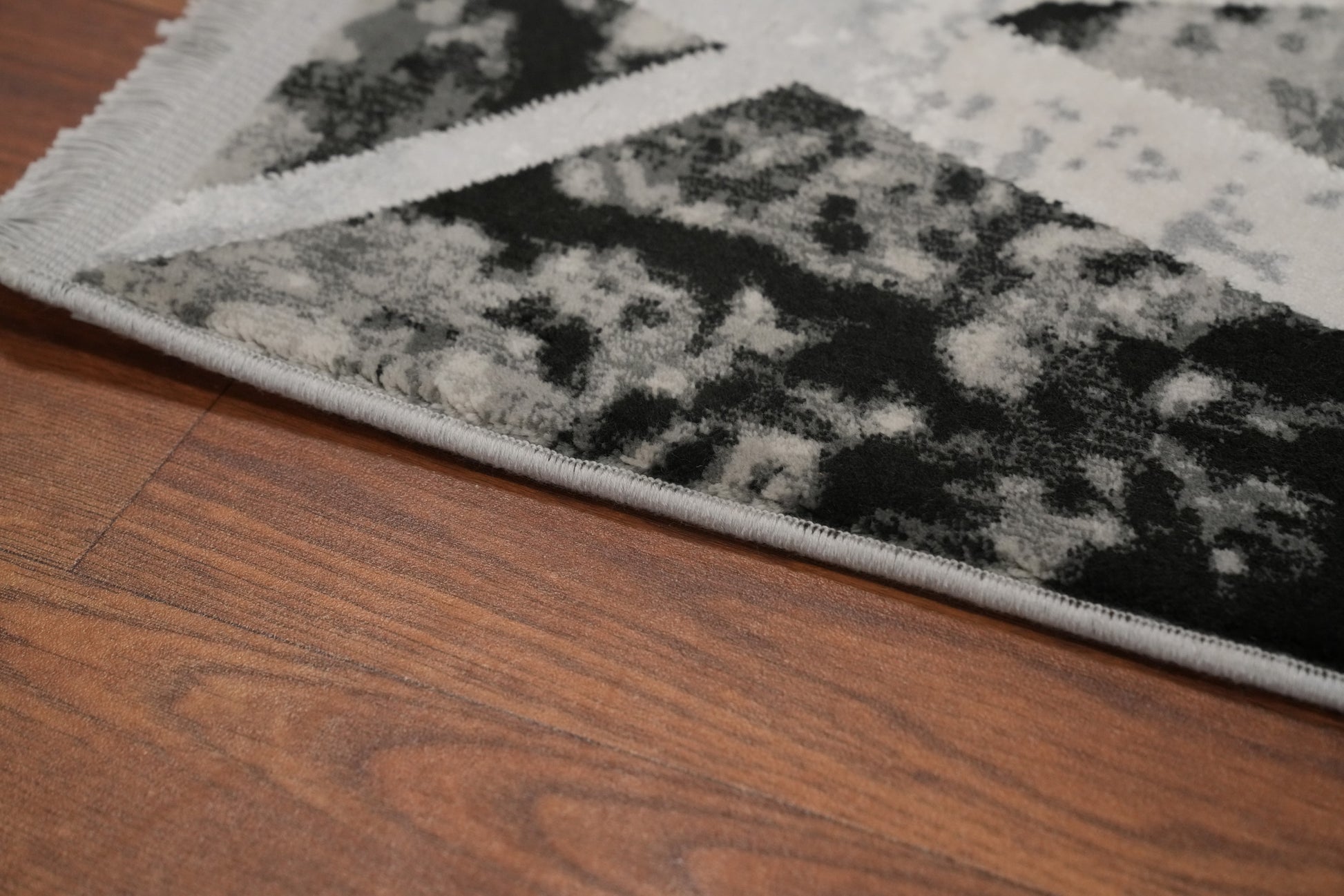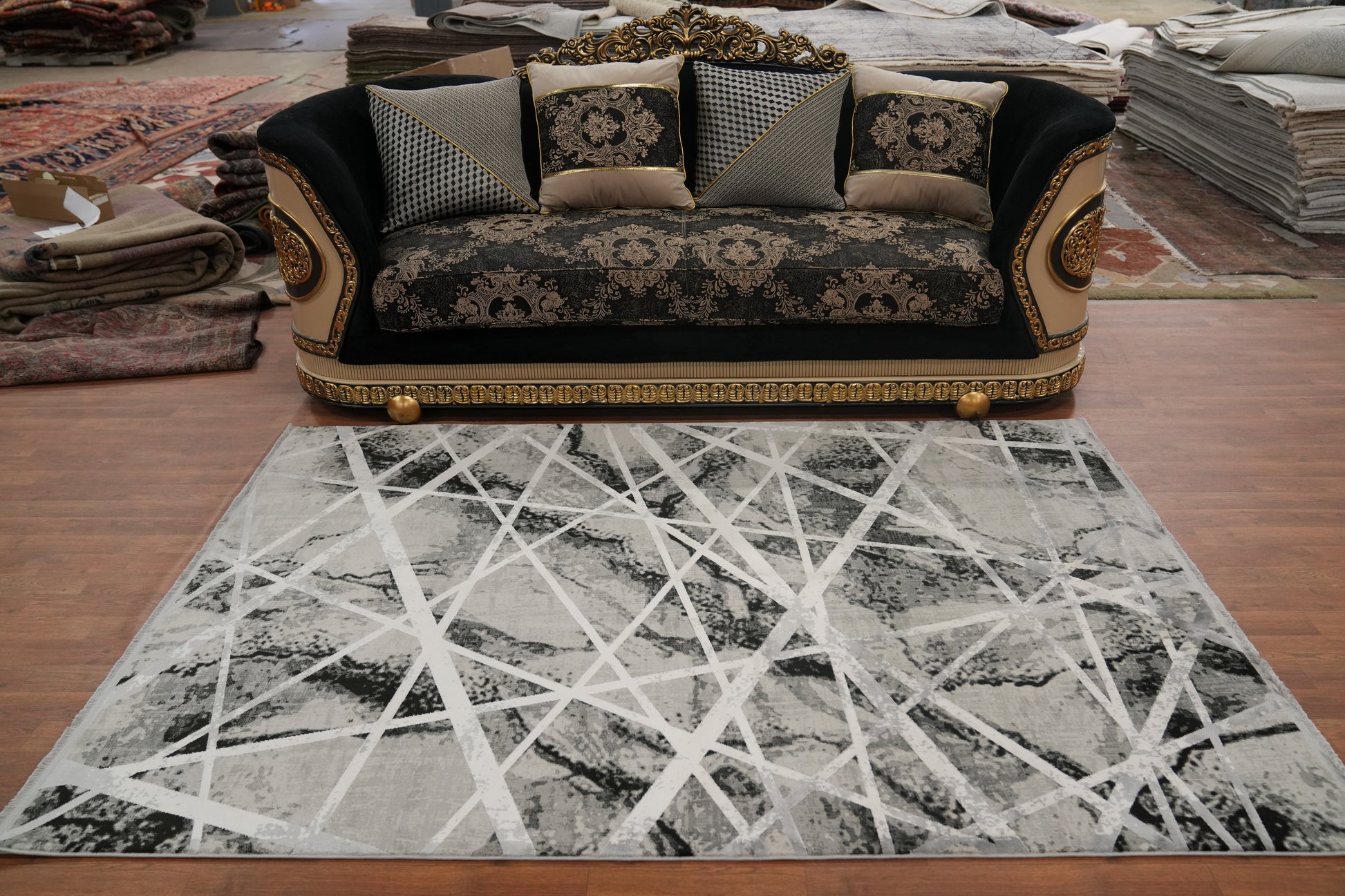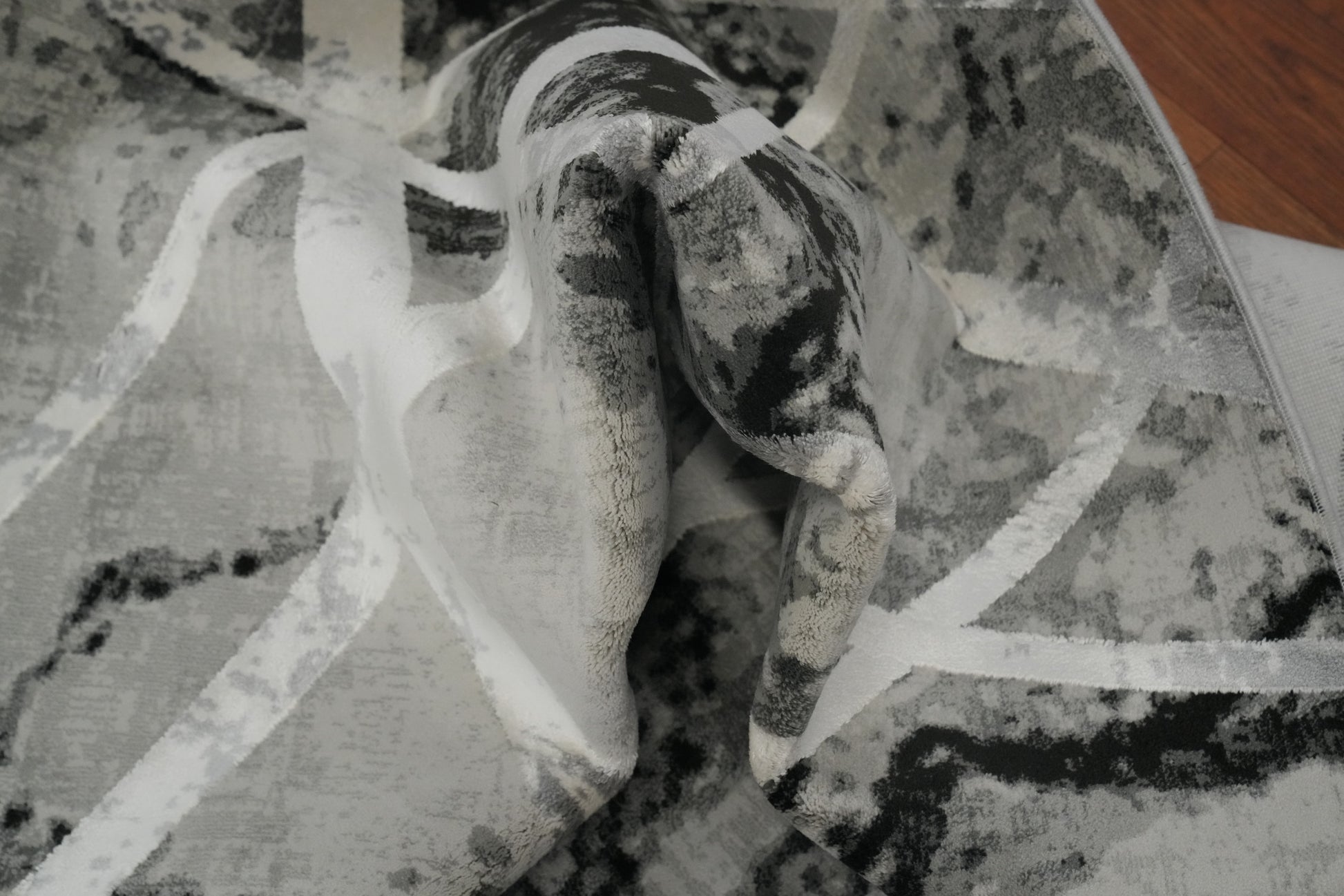 A Beautiful Genuine Turkey Modern rug is Machine Made by skillful weavers in Turkey with Polyester Material. This rug is in New, First Quality condition. dimensions are 7' 5'' X 5' 2'' in foot and 226 X 157 in centimeter. the primary color is Greys & Charcoal.
