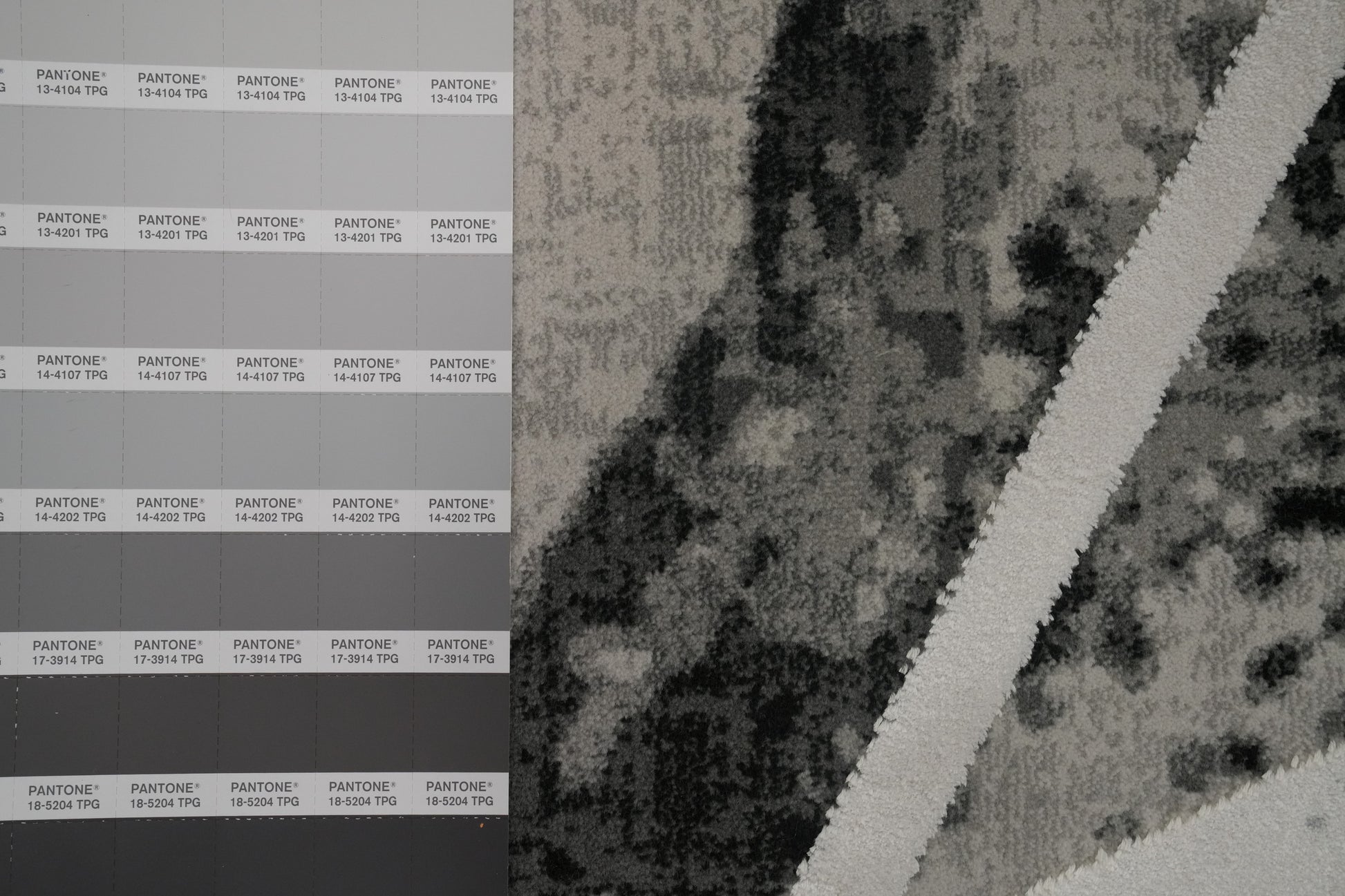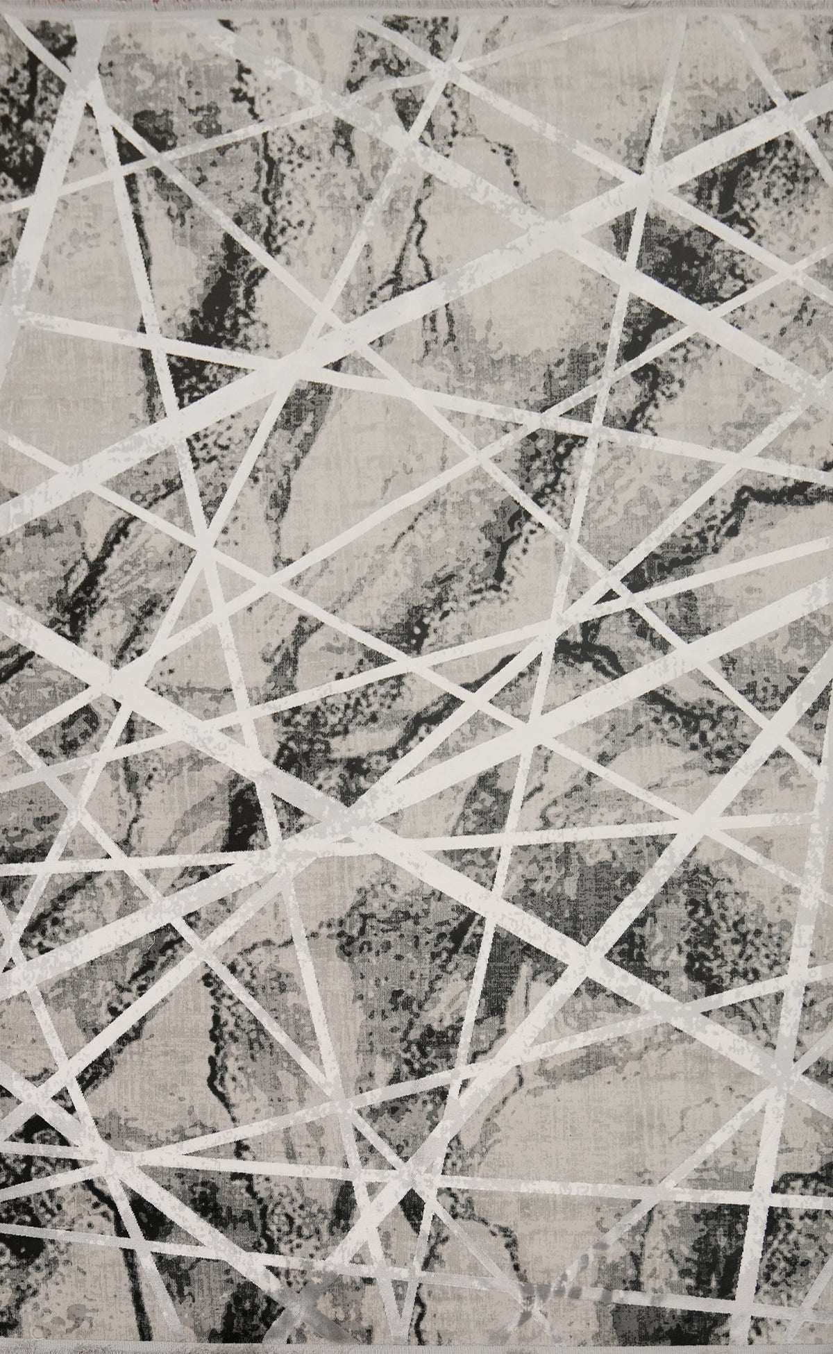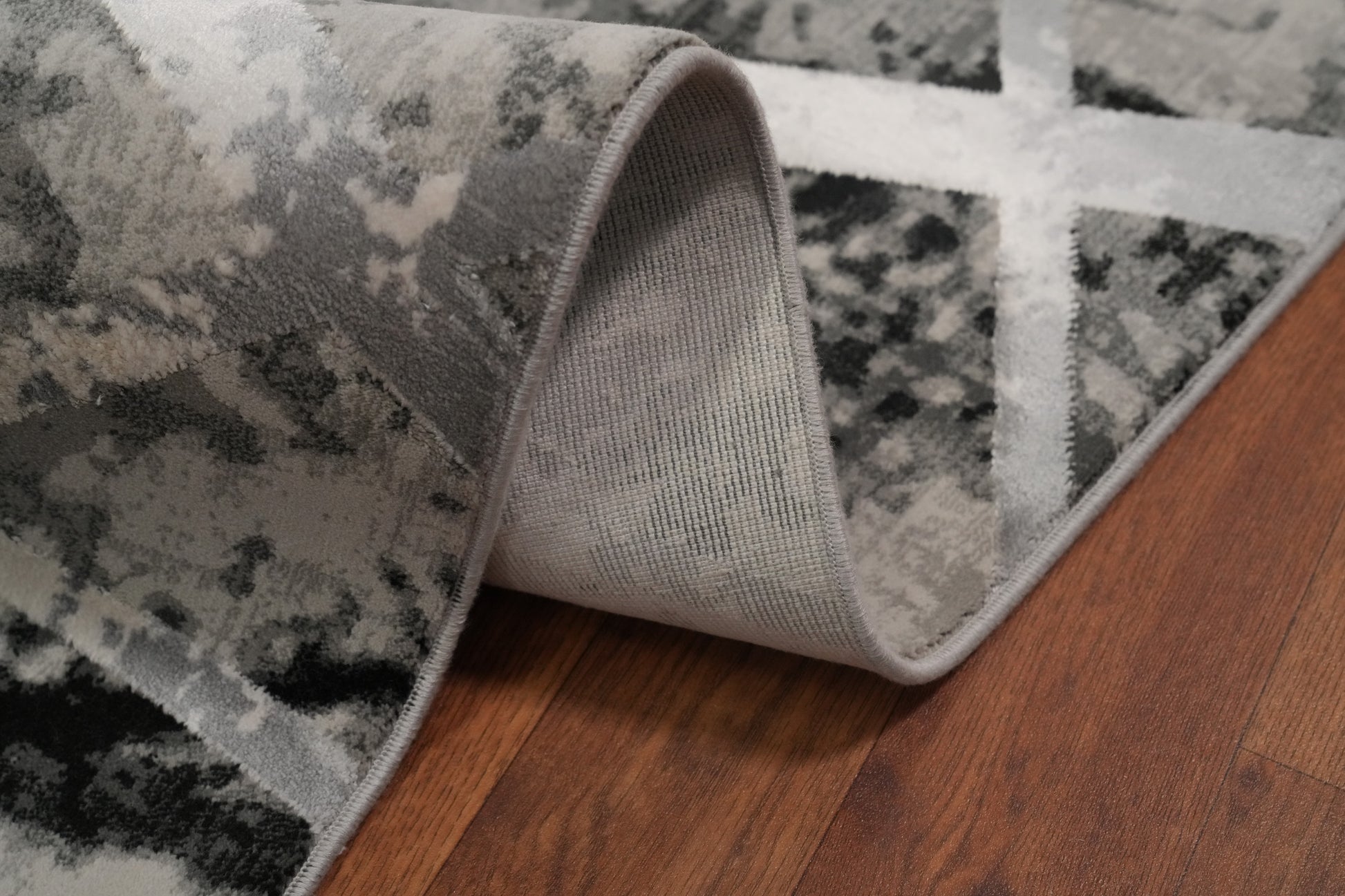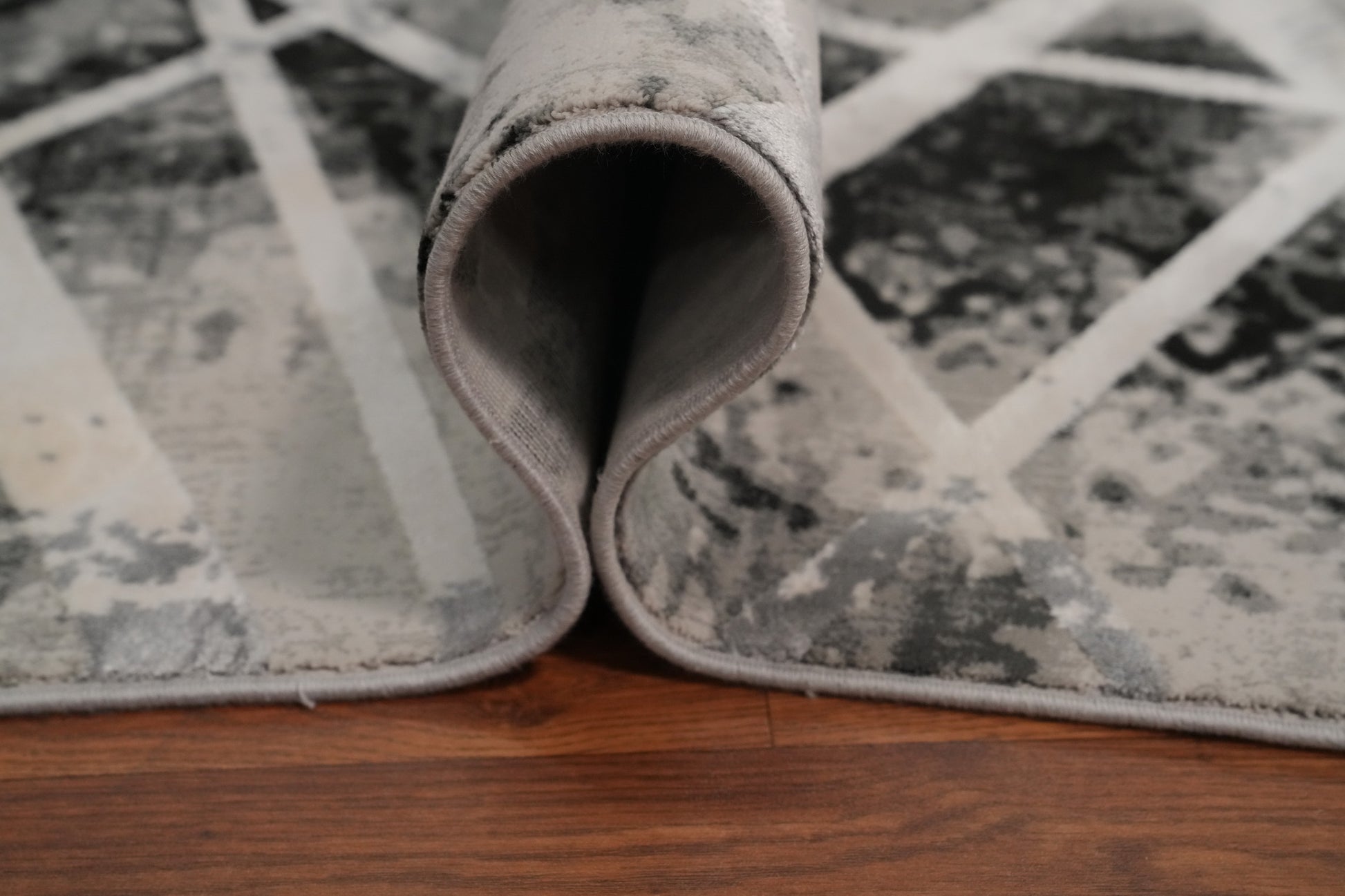 A Beautiful Genuine Turkey Modern rug is Machine Made by skillful weavers in Turkey with Polyester Material. This rug is in New, First Quality condition. dimensions are 7' 5'' X 5' 2'' in foot and 226 X 157 in centimeter. the primary color is Greys & Charcoal.