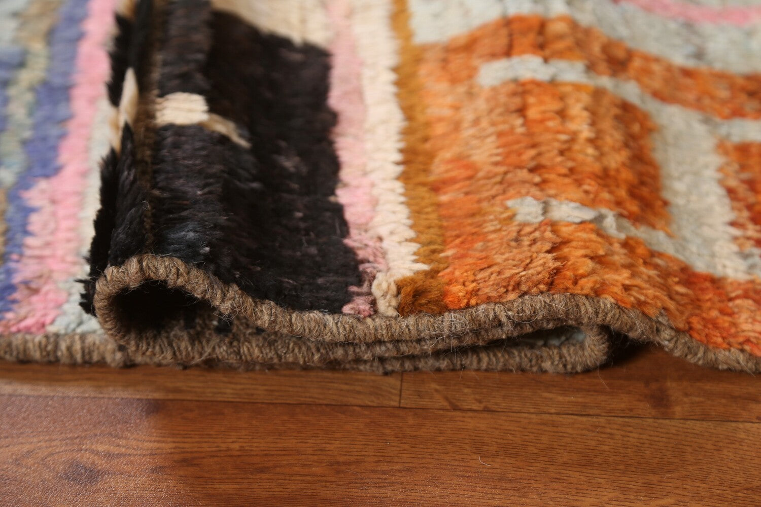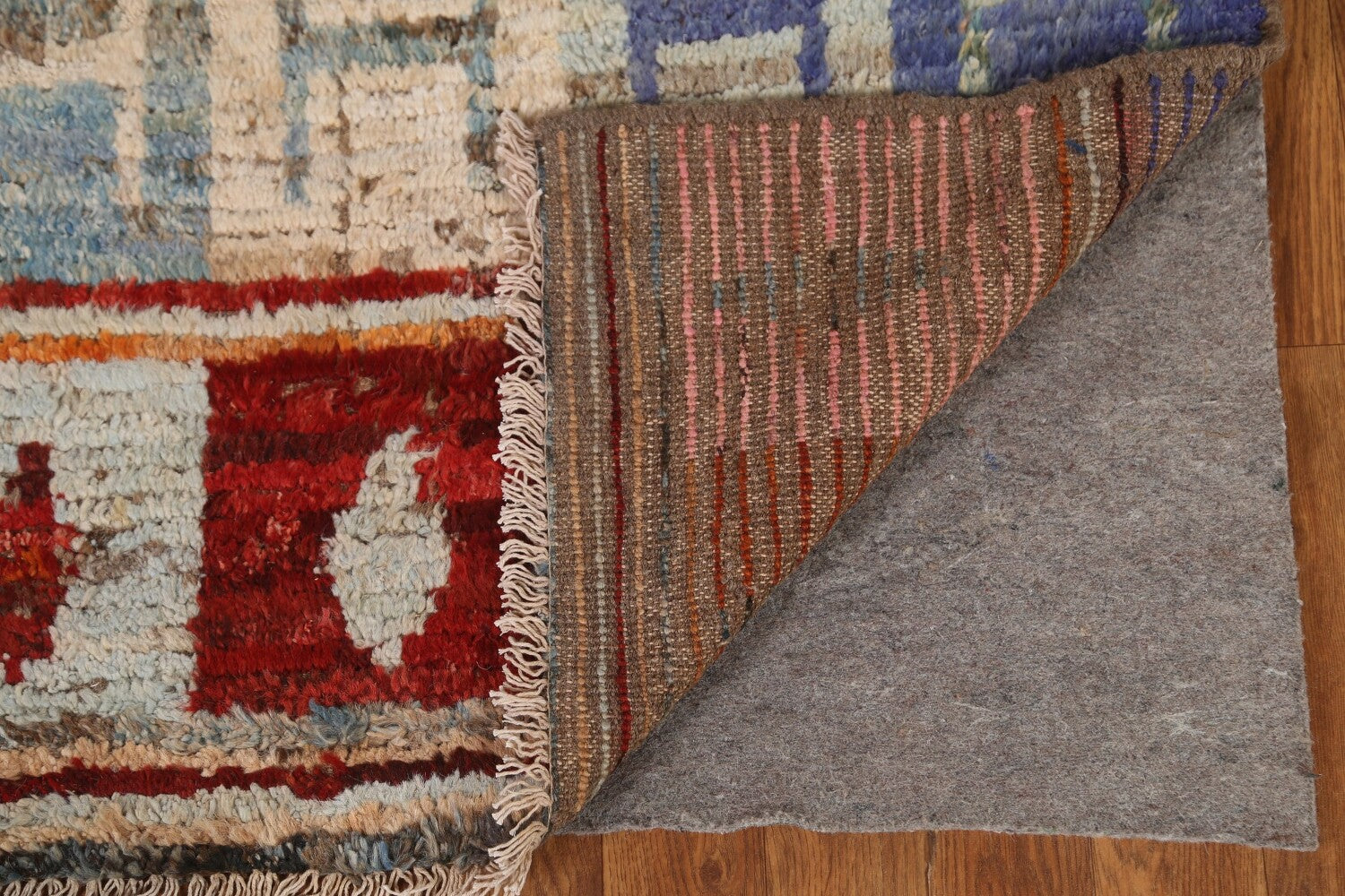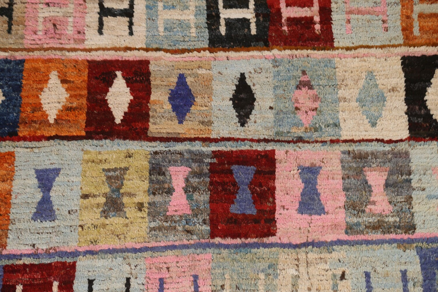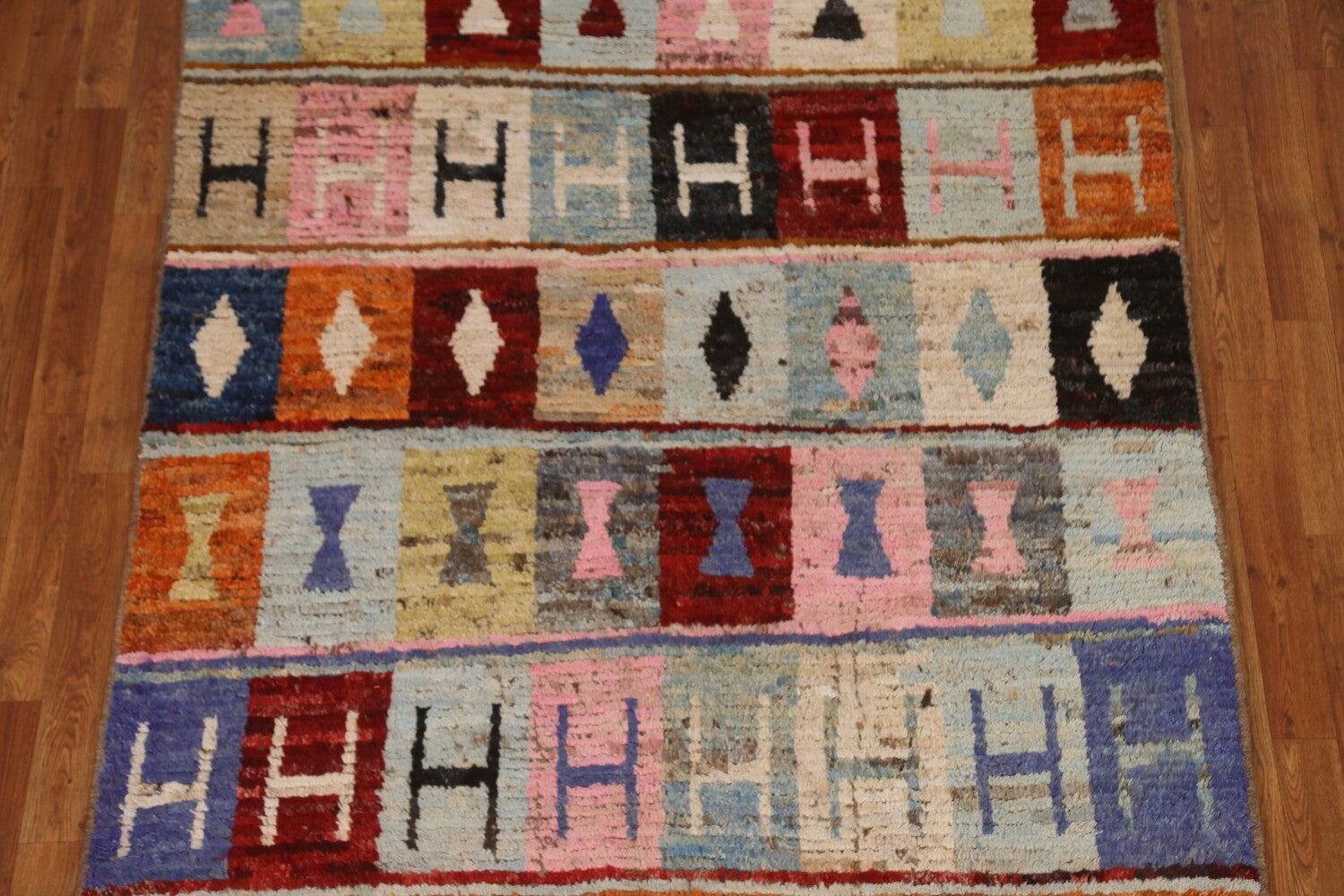 A Beautiful Genuine Pakistan Moroccan rug is Hand Knotted by skillful weavers in Pakistan with 100% Wool Material. This rug is in condition. dimensions are 6' 7'' X 5' 1'' in foot and 201 X 155 in centimeter. the primary color is Multi-Colored.
