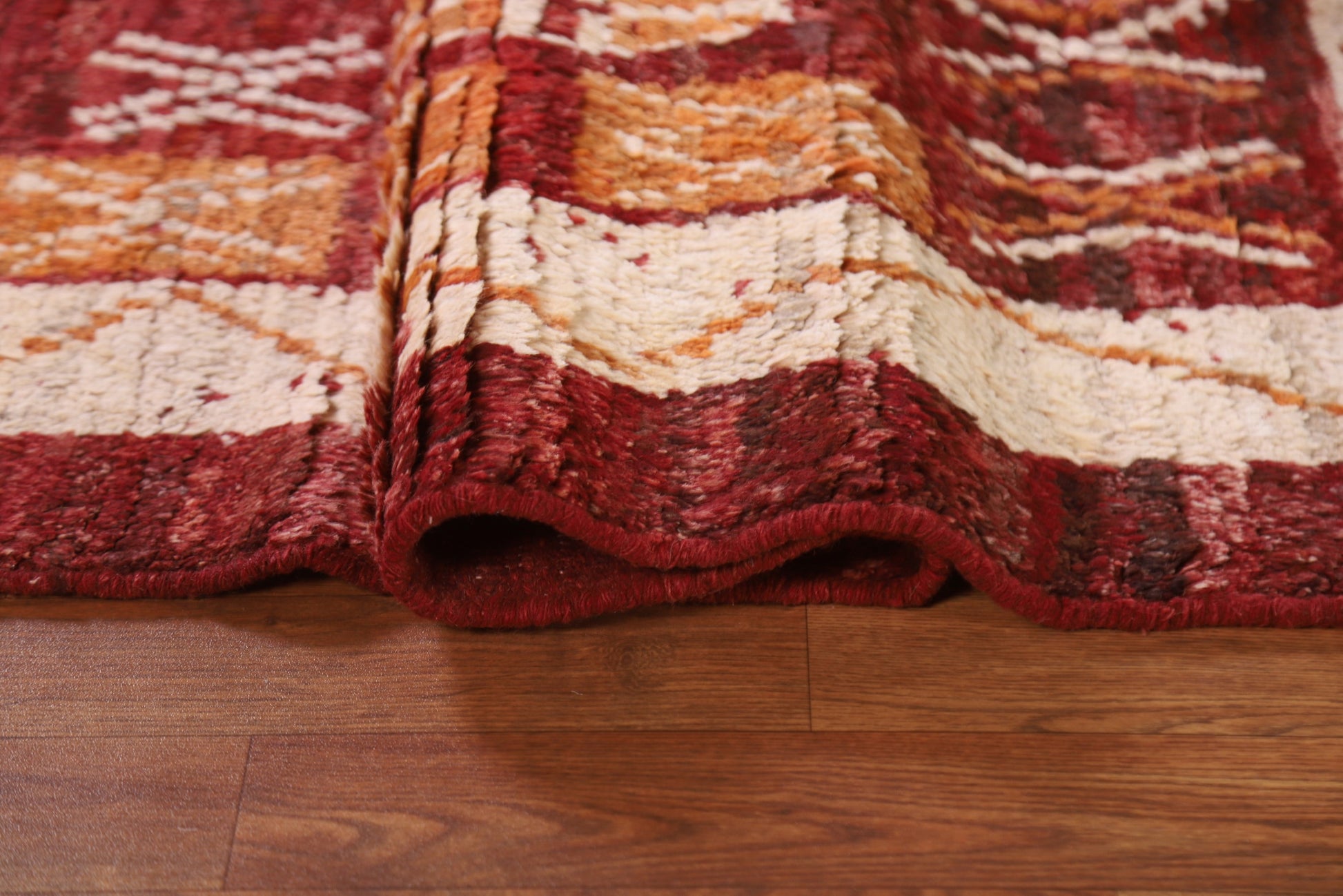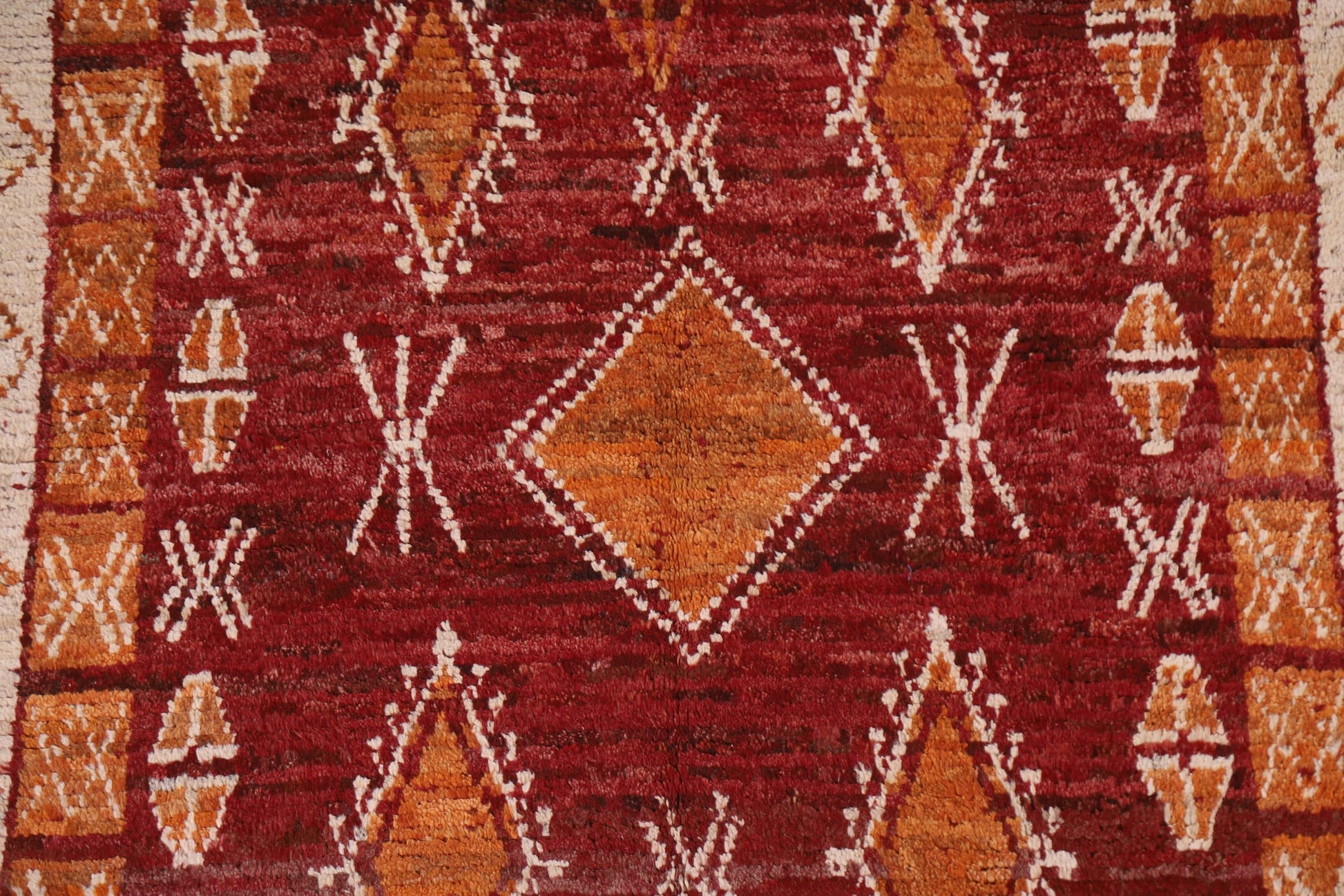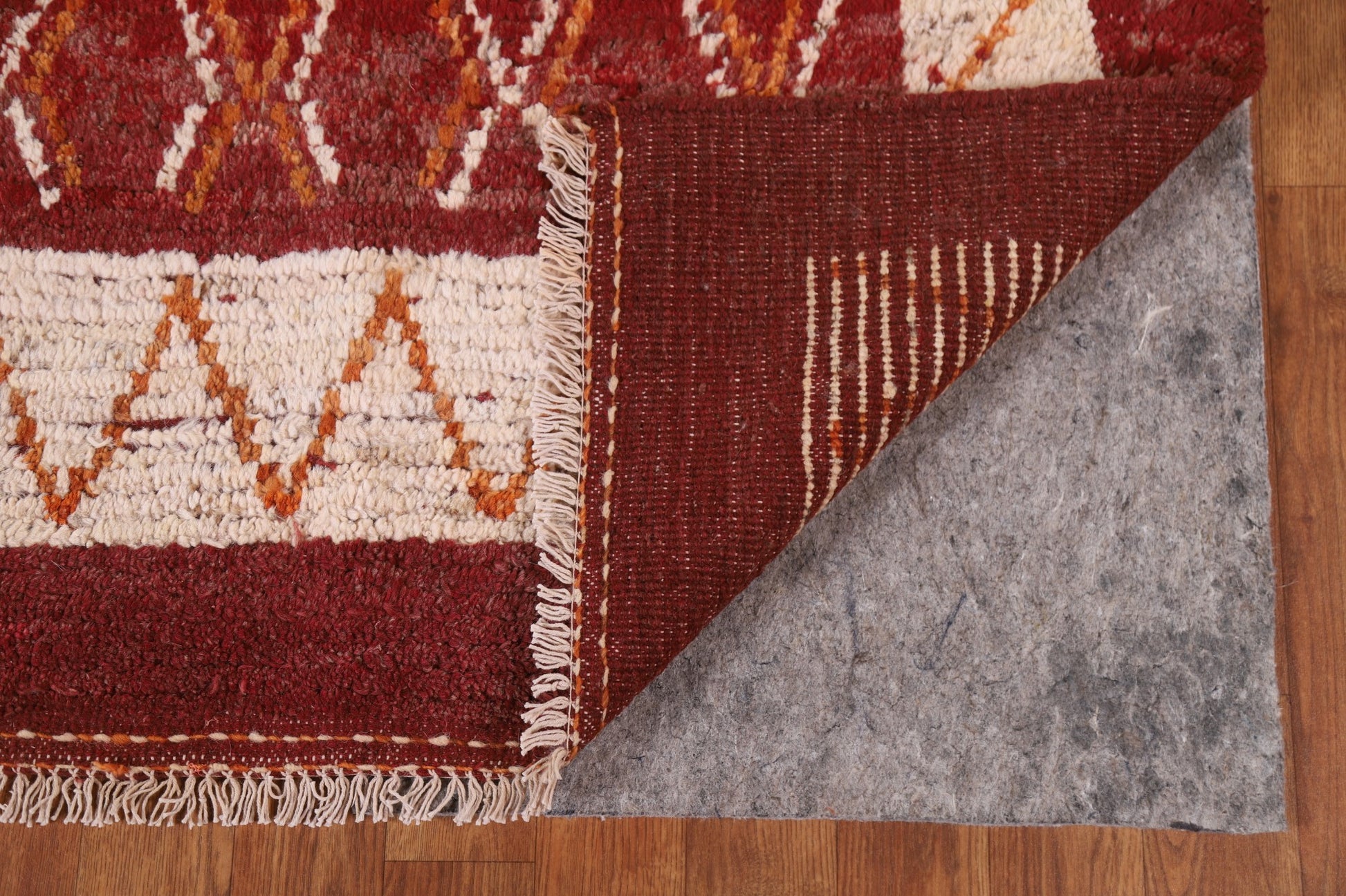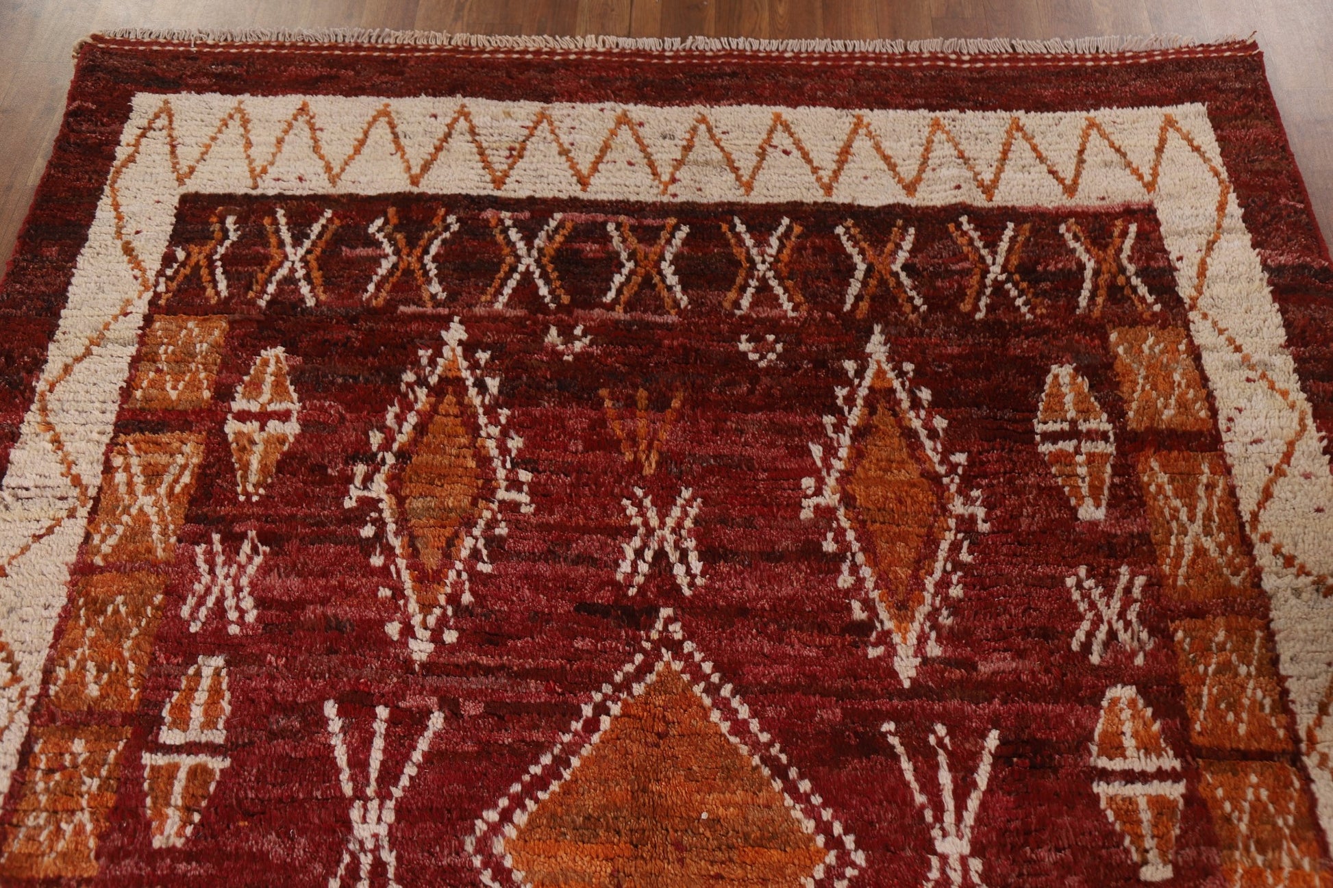 A Beautiful Genuine Pakistan Moroccan rug is Hand Knotted by skillful weavers in Pakistan with 100% Wool Material. This rug is in condition. dimensions are 7' 11'' X 5' 9'' in foot and 241 X 175 in centimeter. the primary color is Red.