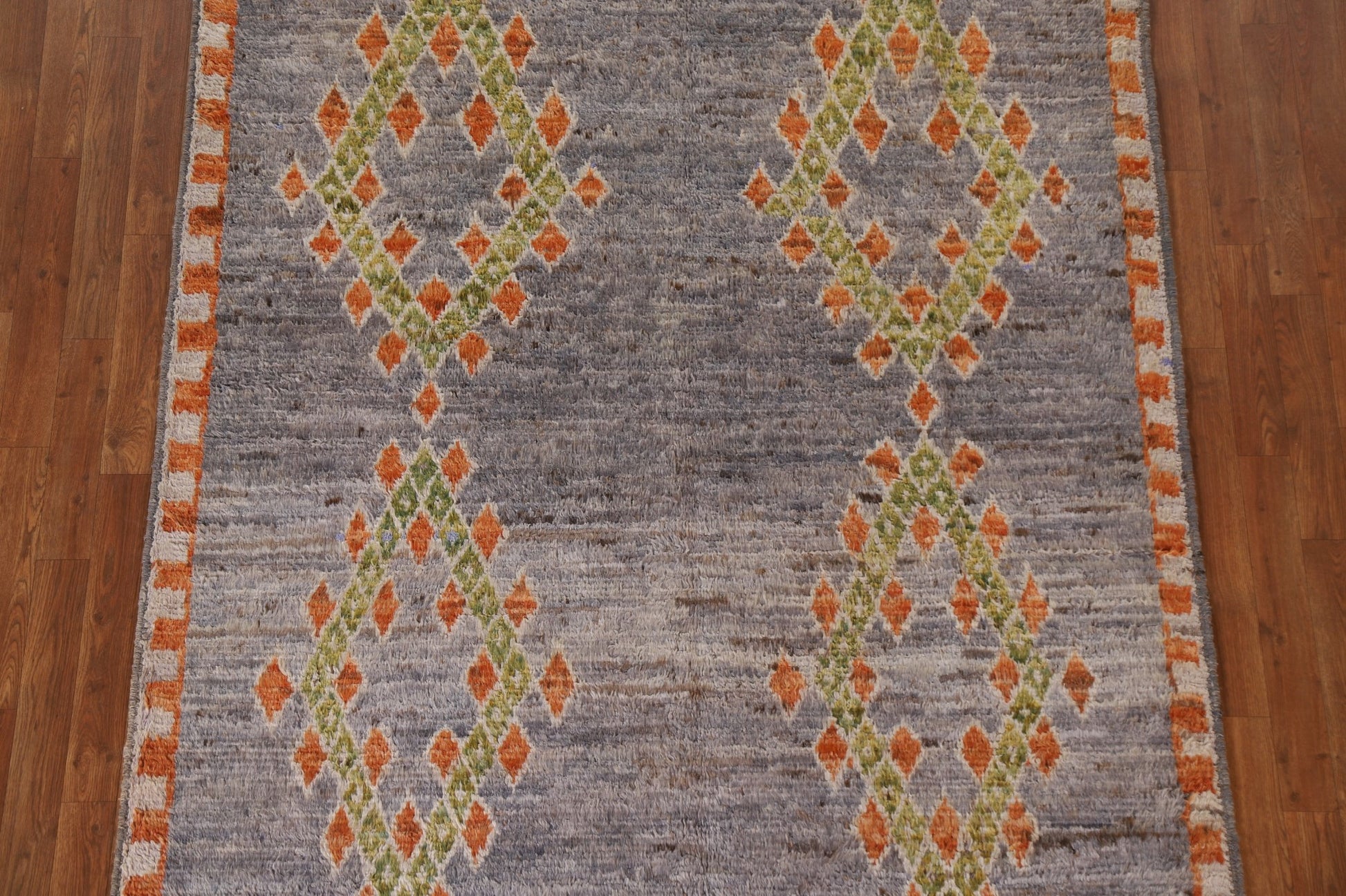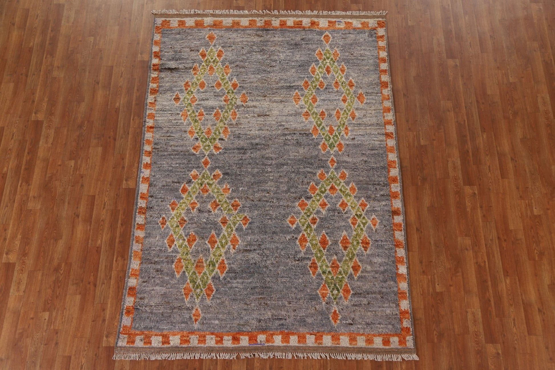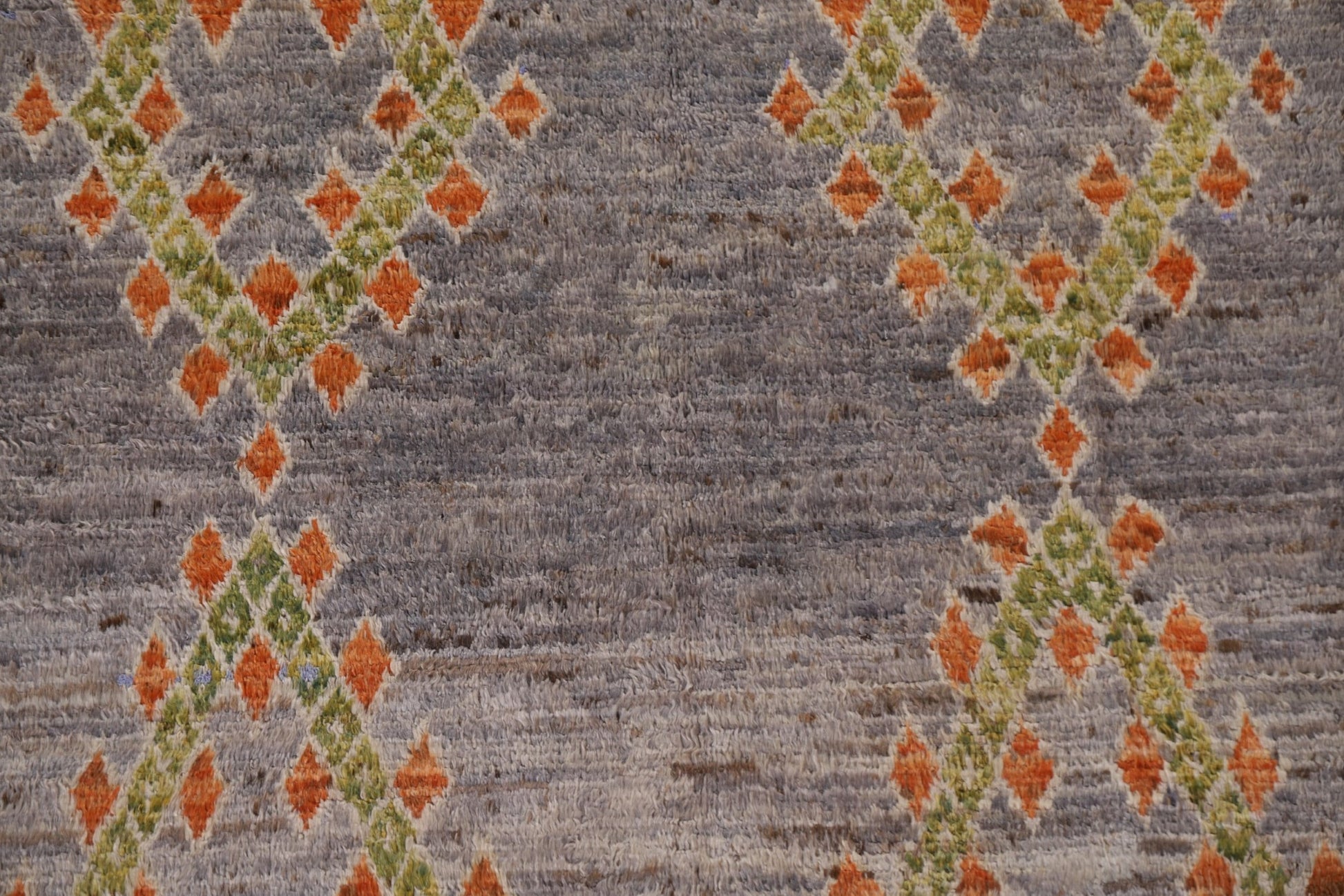 A Beautiful Genuine Pakistan Moroccan rug is Hand Knotted by skillful weavers in Pakistan with 100% Wool Material. This rug is in condition. dimensions are 8' 0'' X 5' 8'' in foot and 244 X 173 in centimeter. the primary color is Greys & Charcoal.