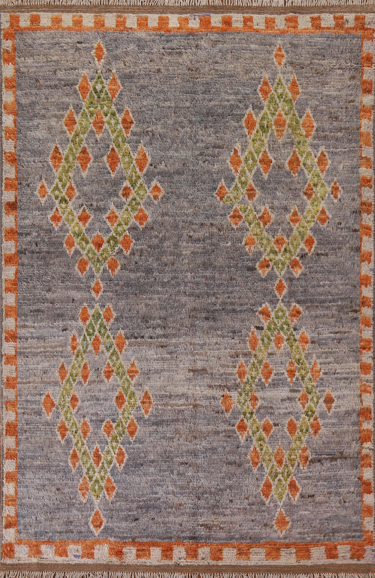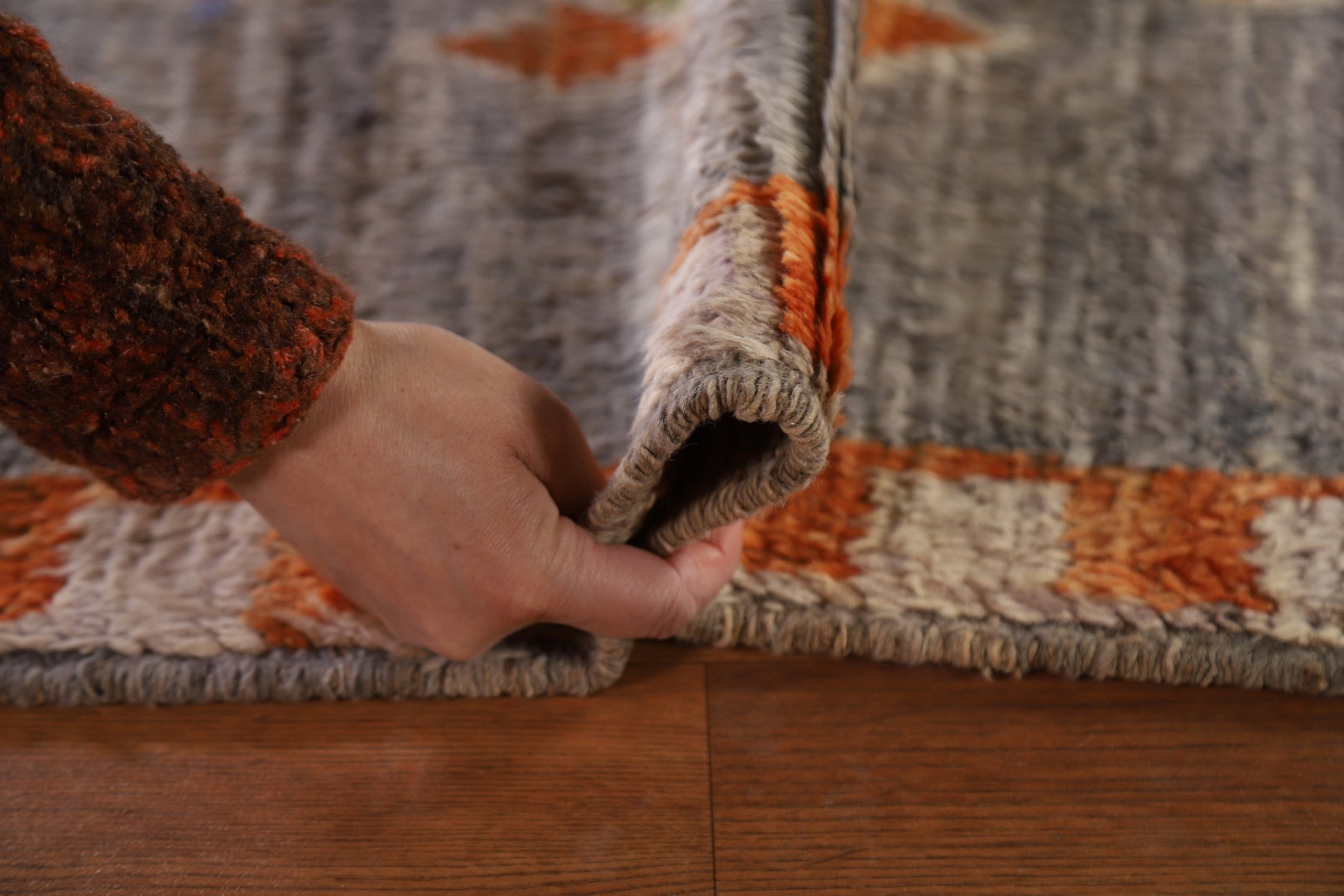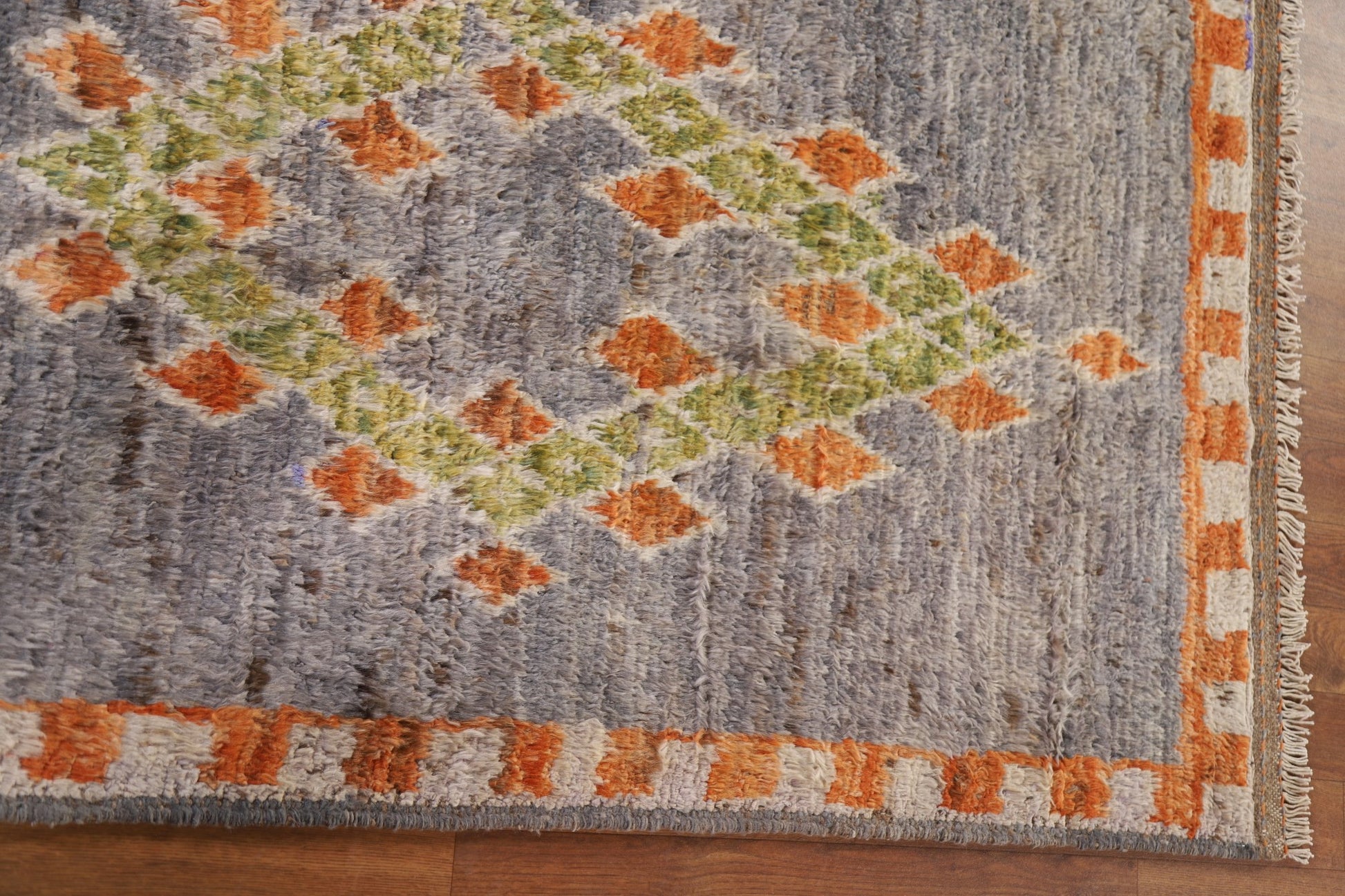 A Beautiful Genuine Pakistan Moroccan rug is Hand Knotted by skillful weavers in Pakistan with 100% Wool Material. This rug is in condition. dimensions are 8' 0'' X 5' 8'' in foot and 244 X 173 in centimeter. the primary color is Greys & Charcoal.