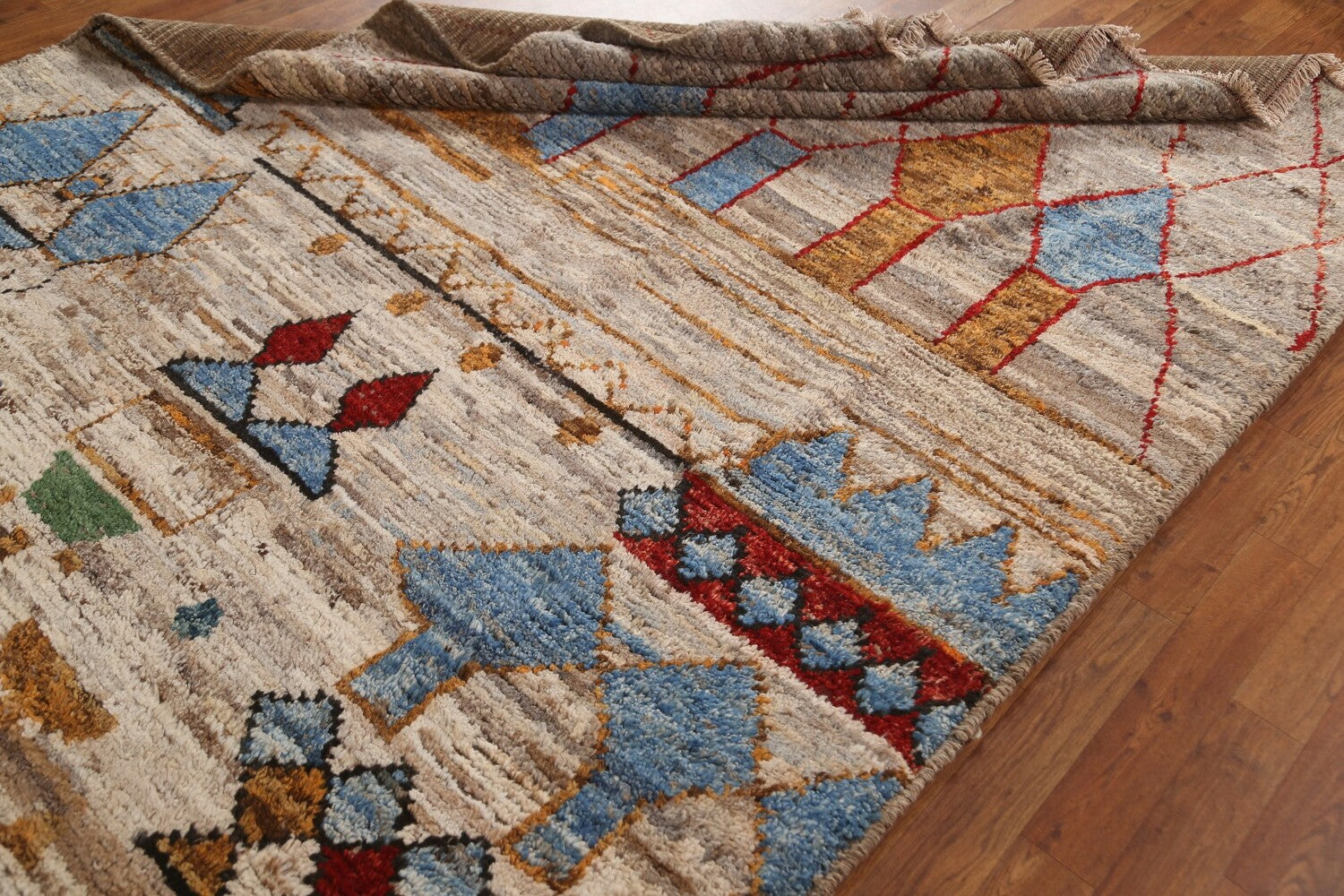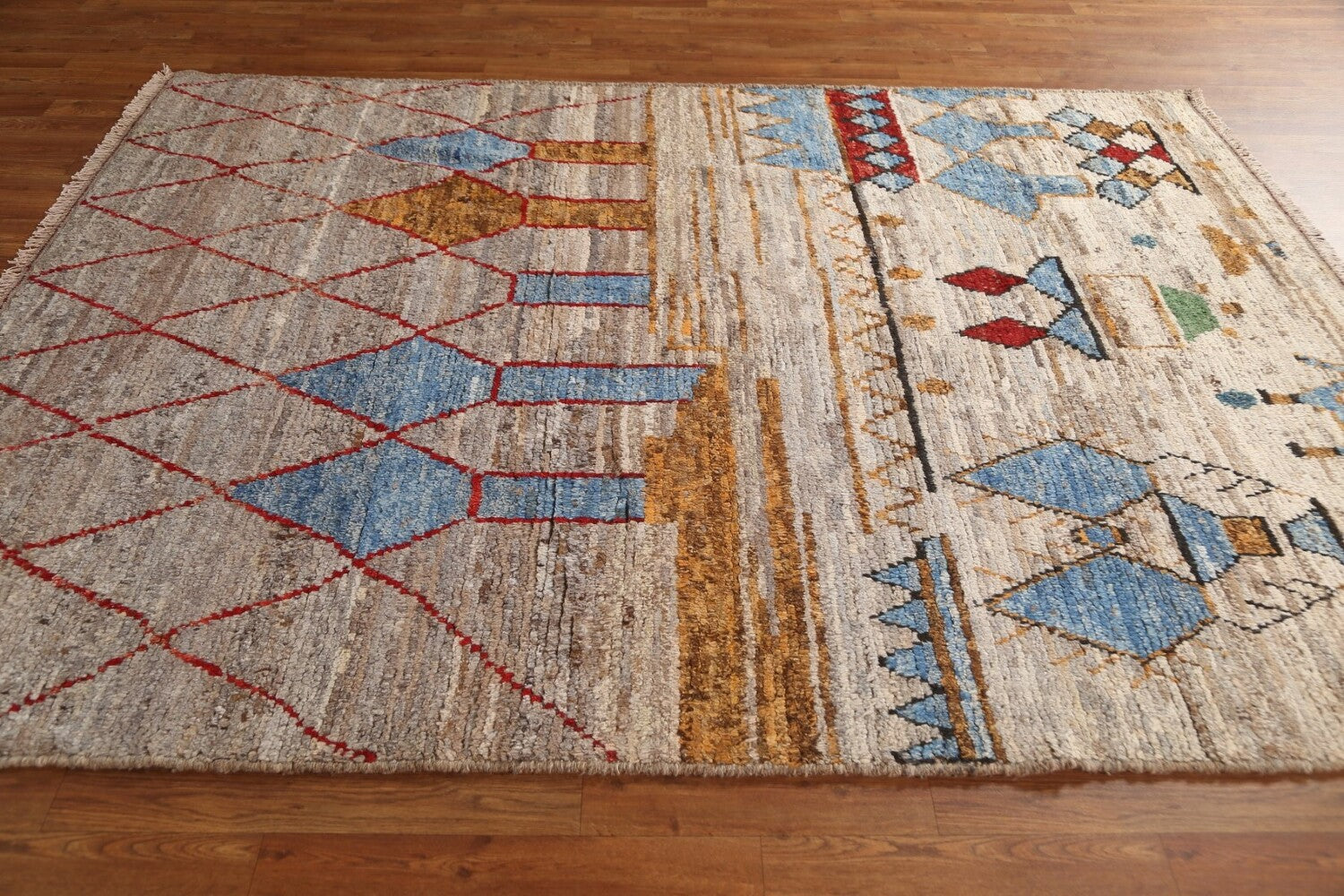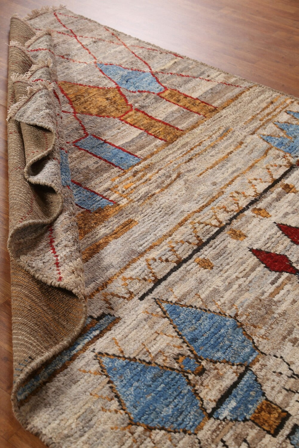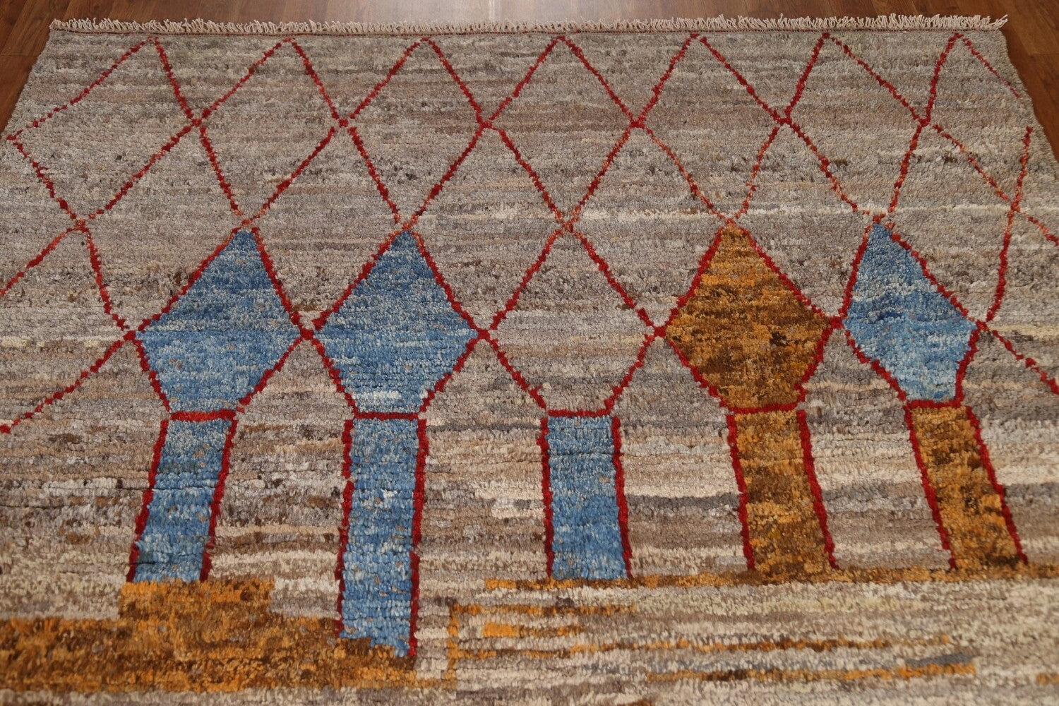 A Beautiful Genuine Pakistan Moroccan rug is Hand Knotted by skillful weavers in Pakistan with 100% Wool Material. This rug is in condition. dimensions are 7' 11'' X 5' 10'' in foot and 241 X 178 in centimeter. the primary color is Beige & Ivories.