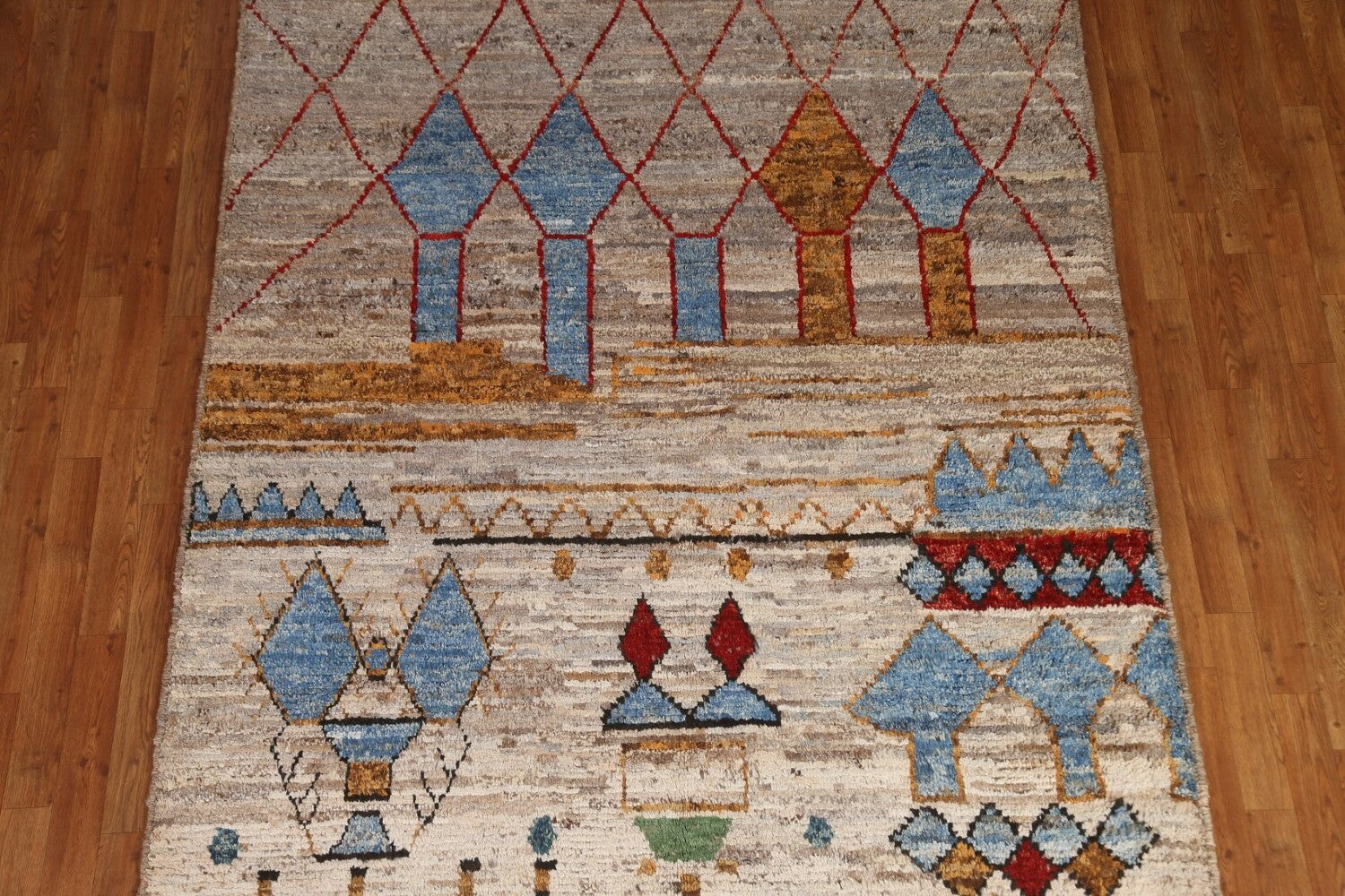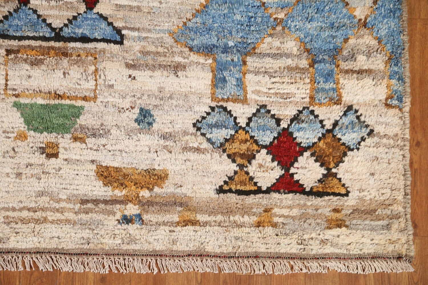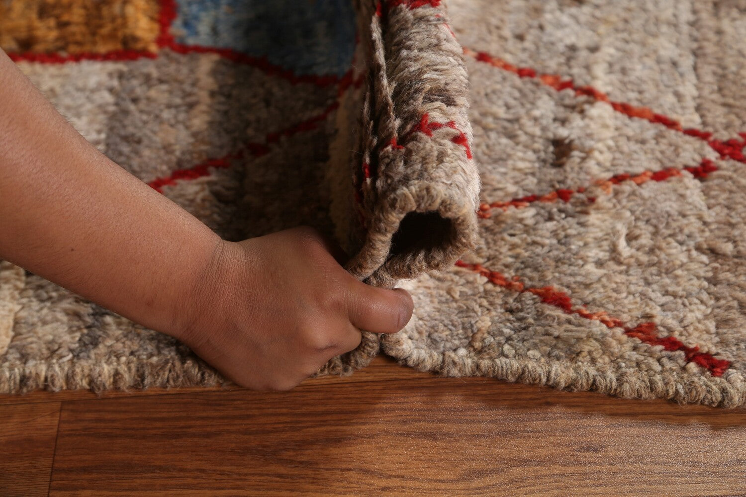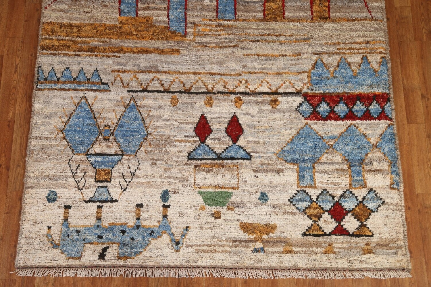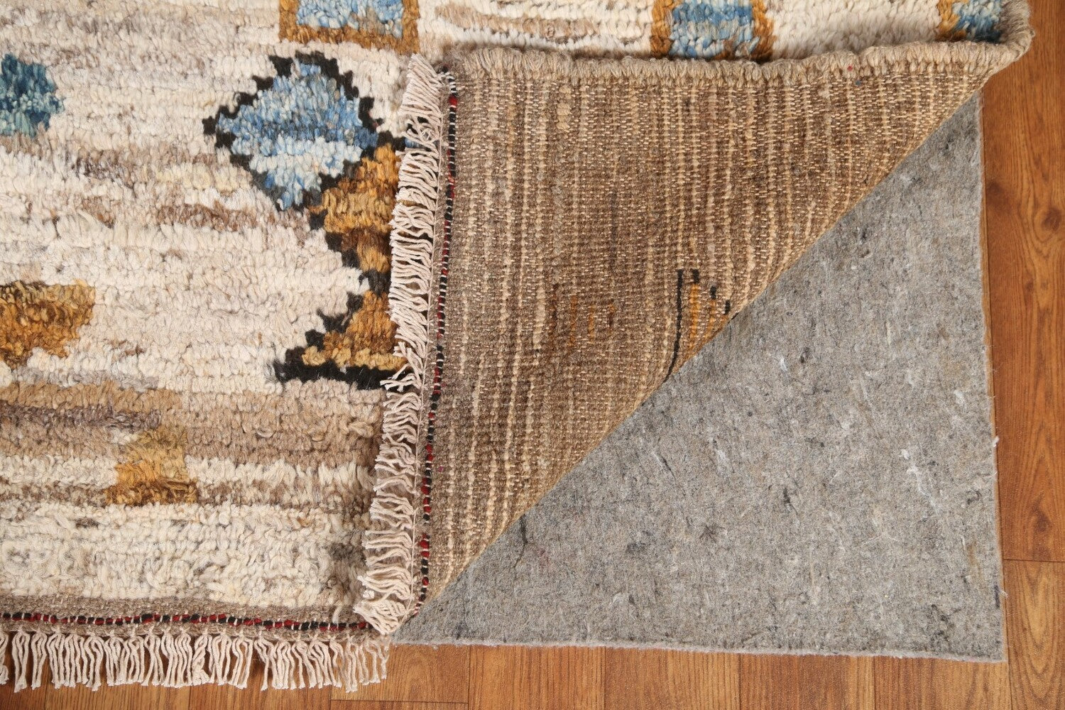 A Beautiful Genuine Pakistan Moroccan rug is Hand Knotted by skillful weavers in Pakistan with 100% Wool Material. This rug is in condition. dimensions are 7' 11'' X 5' 10'' in foot and 241 X 178 in centimeter. the primary color is Beige & Ivories.