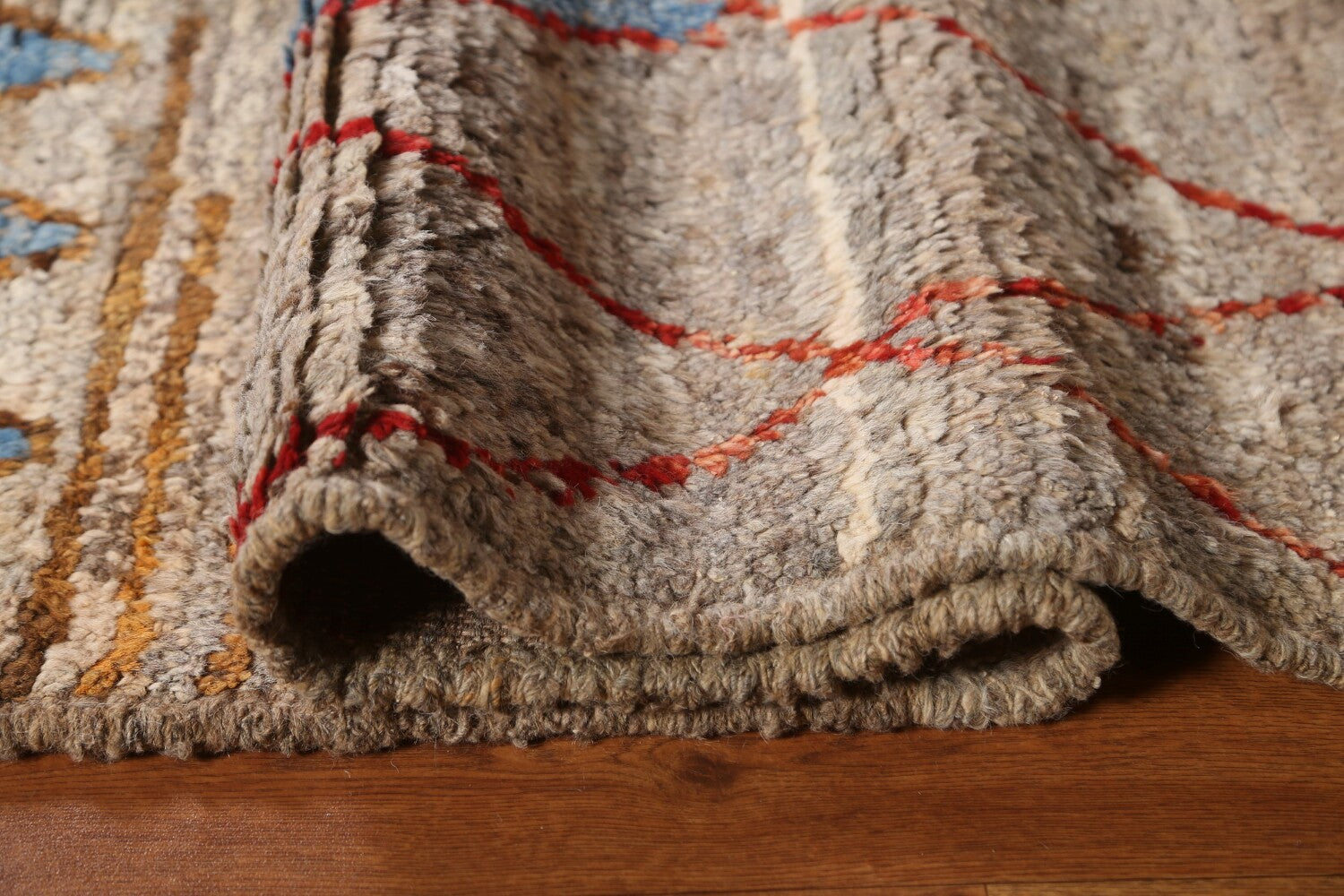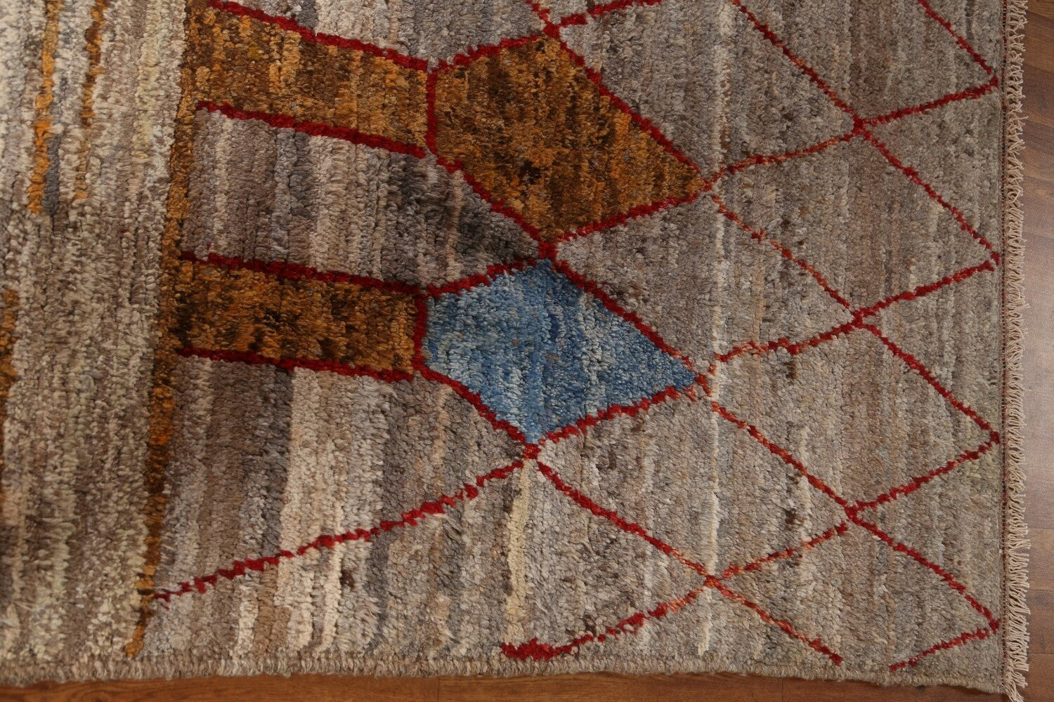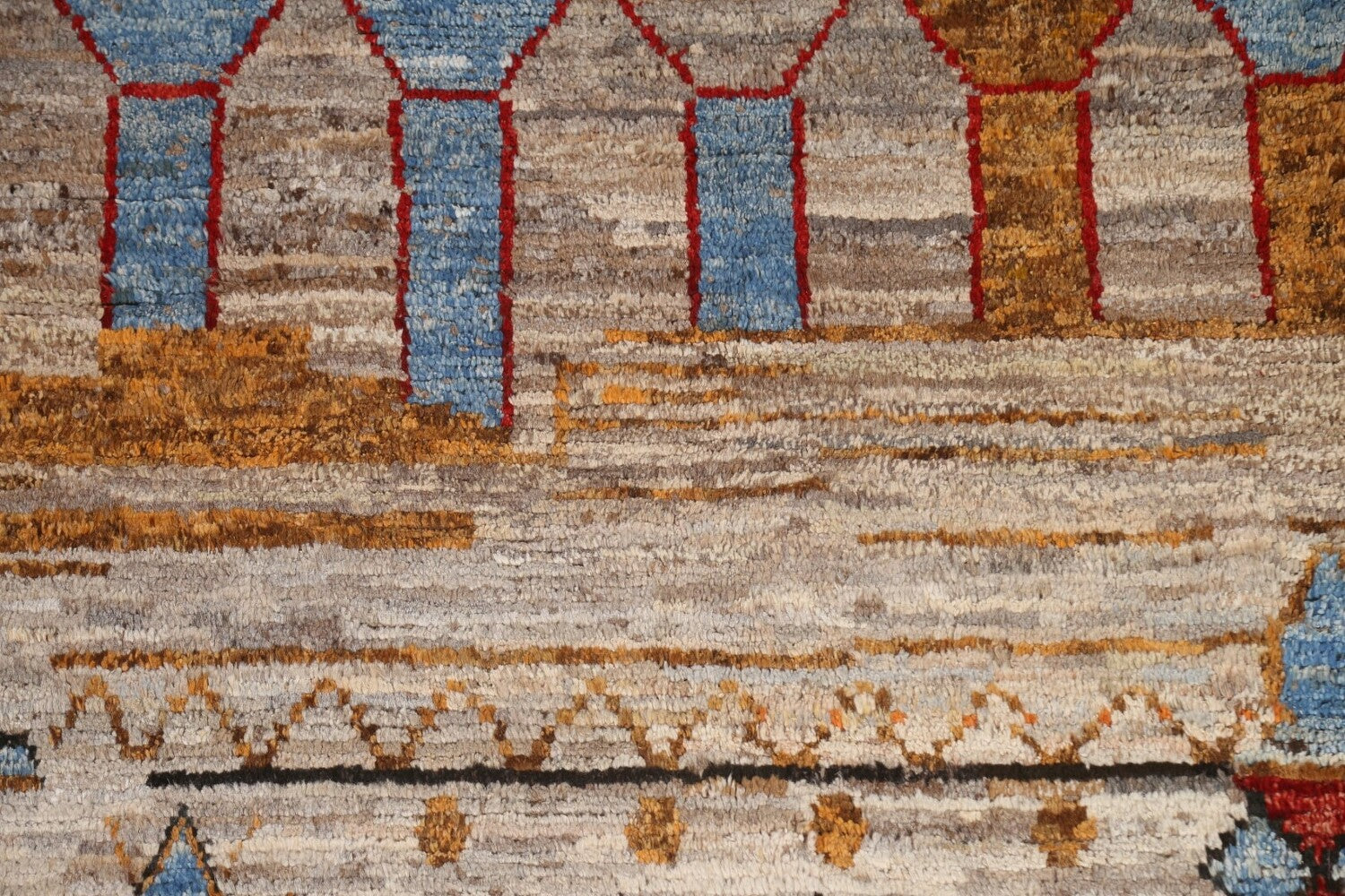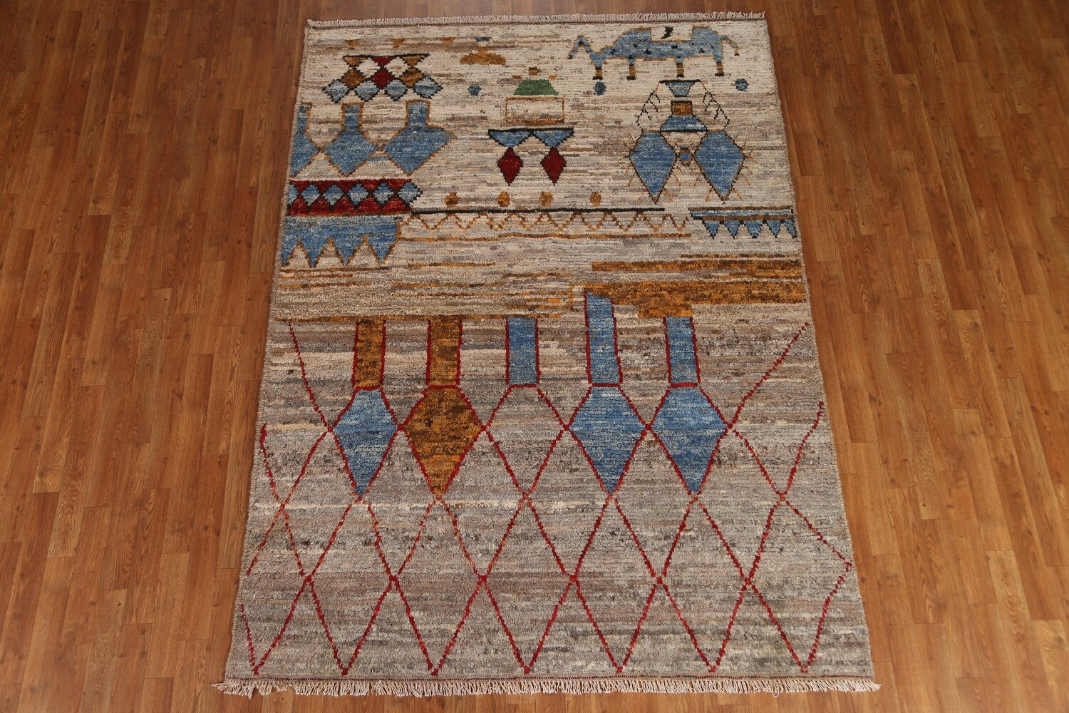 A Beautiful Genuine Pakistan Moroccan rug is Hand Knotted by skillful weavers in Pakistan with 100% Wool Material. This rug is in condition. dimensions are 7' 11'' X 5' 10'' in foot and 241 X 178 in centimeter. the primary color is Beige & Ivories.