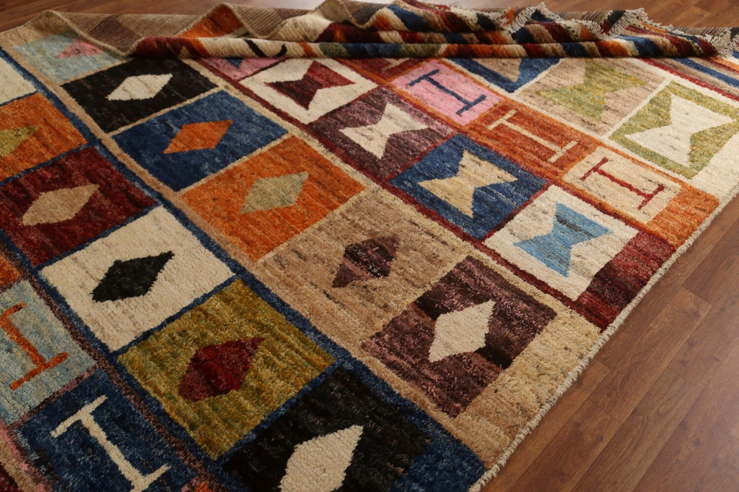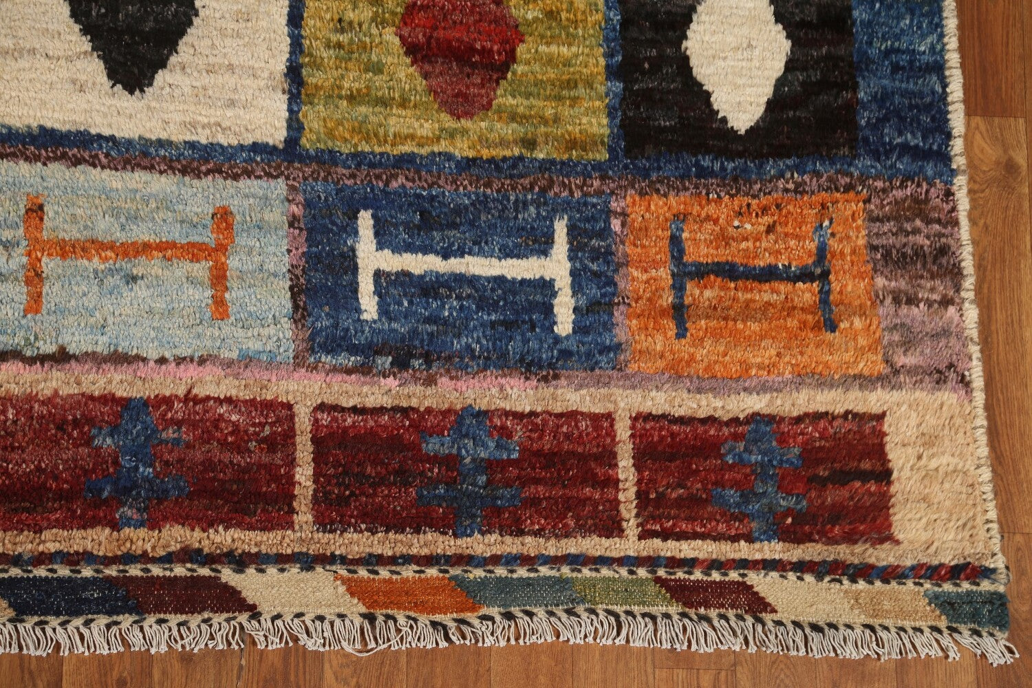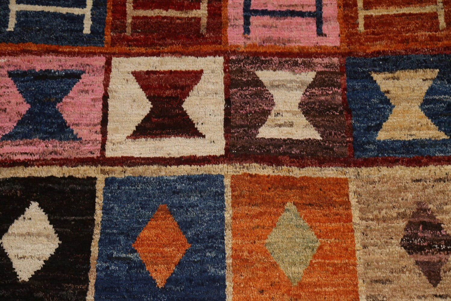 A Beautiful Genuine Pakistan Moroccan rug is Hand Knotted by skillful weavers in Pakistan with 100% Wool Material. This rug is in condition. dimensions are 9' 9'' X 6' 11'' in foot and 297 X 211 in centimeter. the primary color is Multi-Colored.