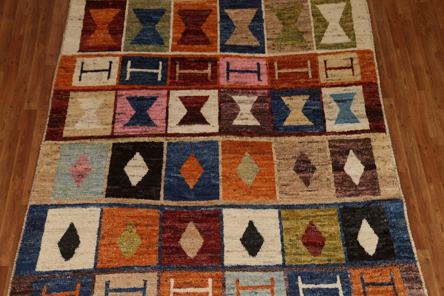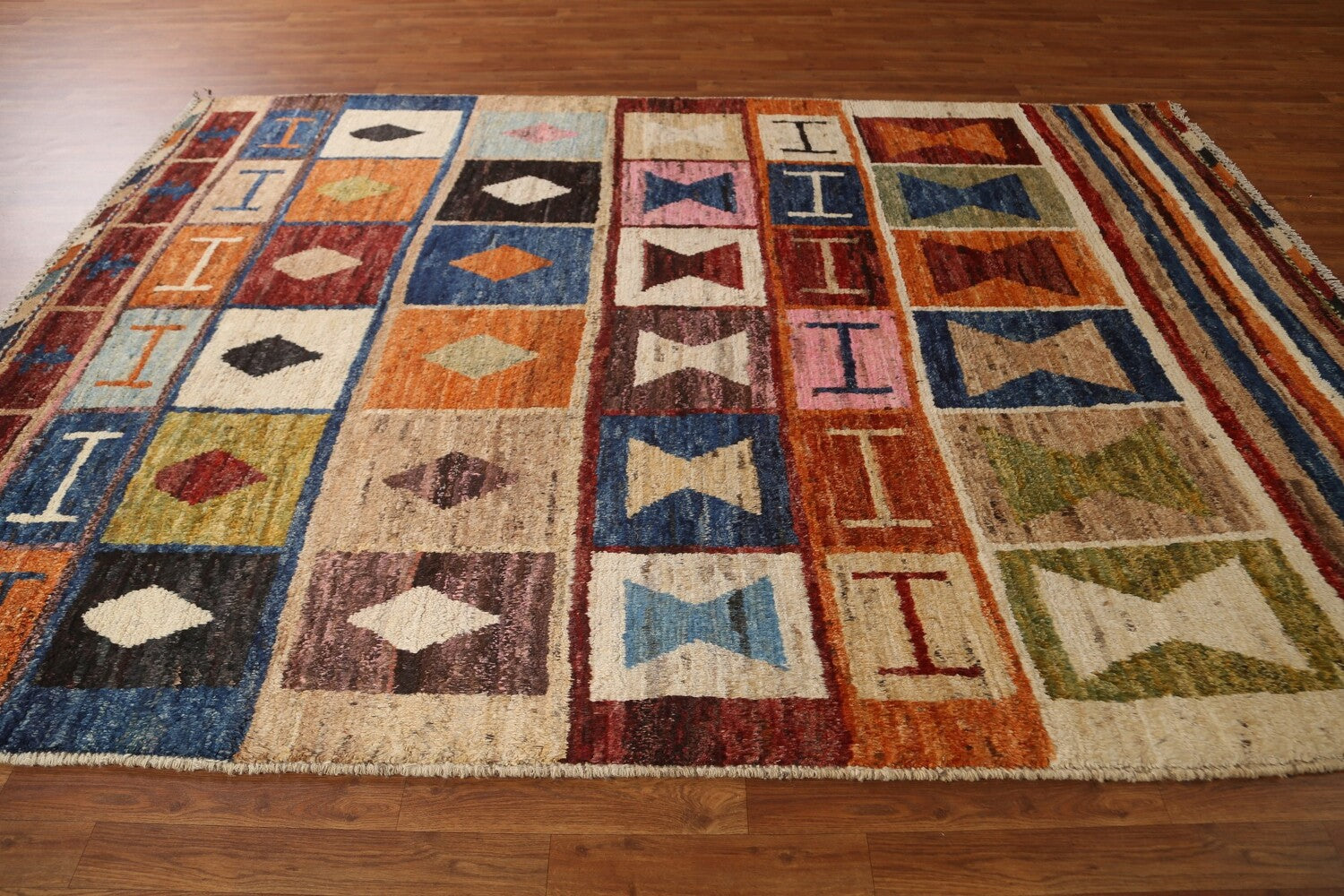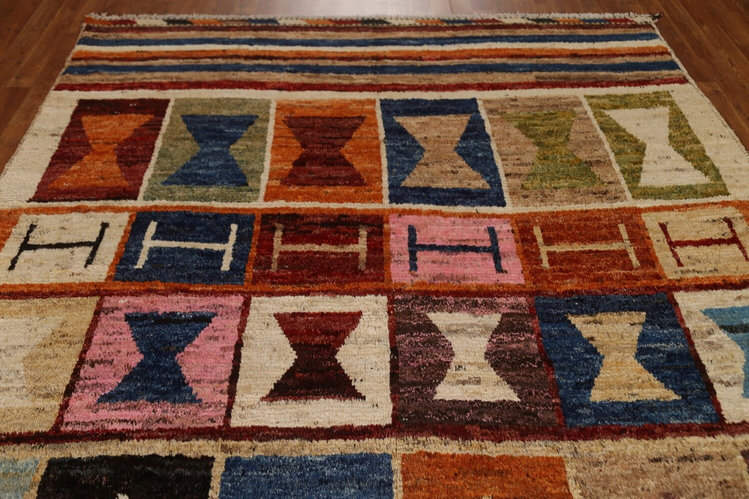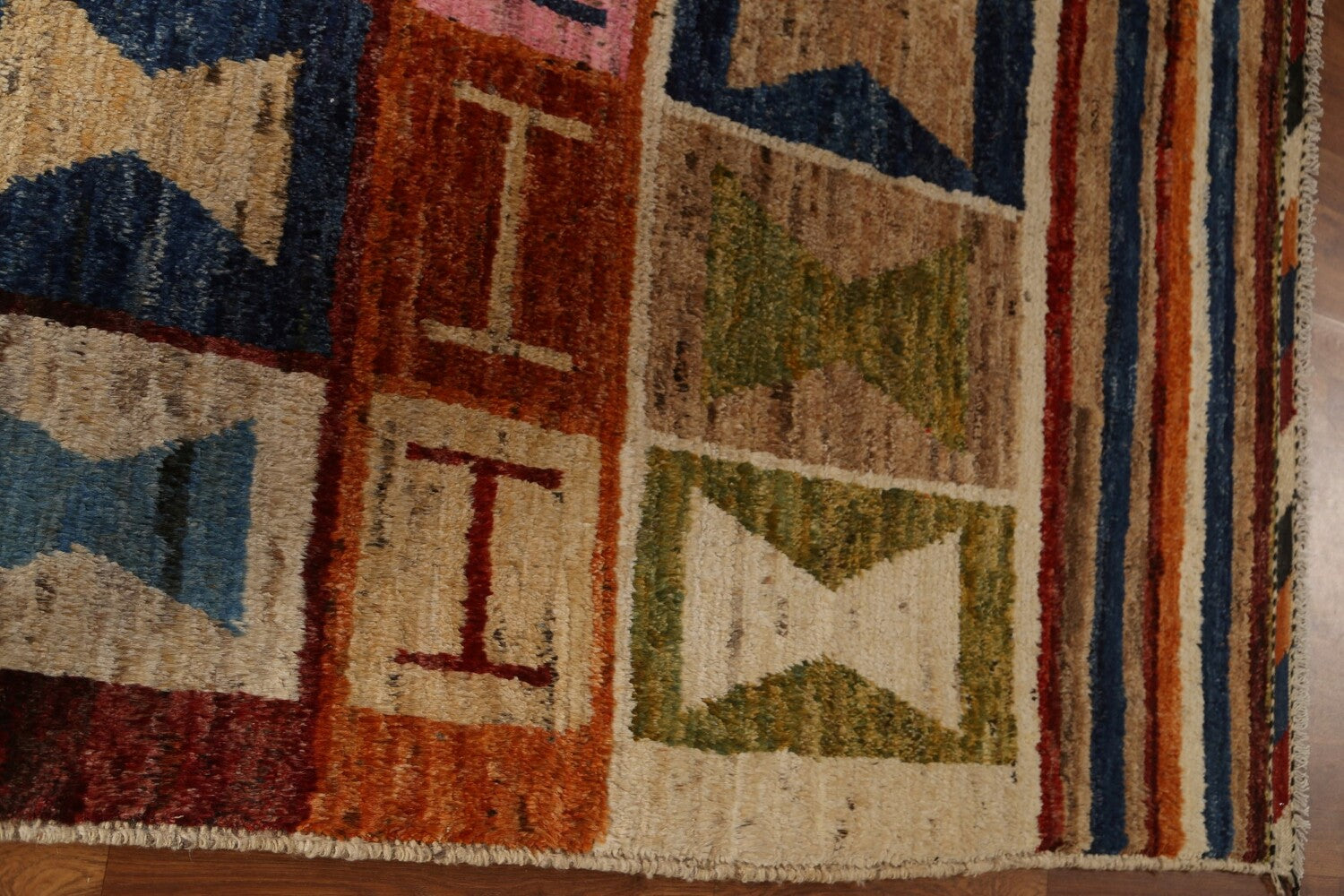 A Beautiful Genuine Pakistan Moroccan rug is Hand Knotted by skillful weavers in Pakistan with 100% Wool Material. This rug is in condition. dimensions are 9' 9'' X 6' 11'' in foot and 297 X 211 in centimeter. the primary color is Multi-Colored.