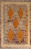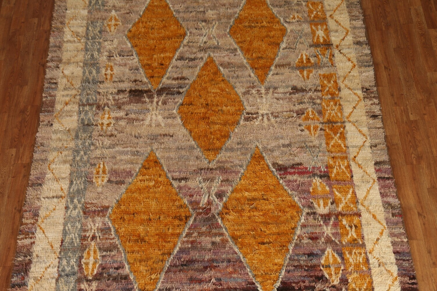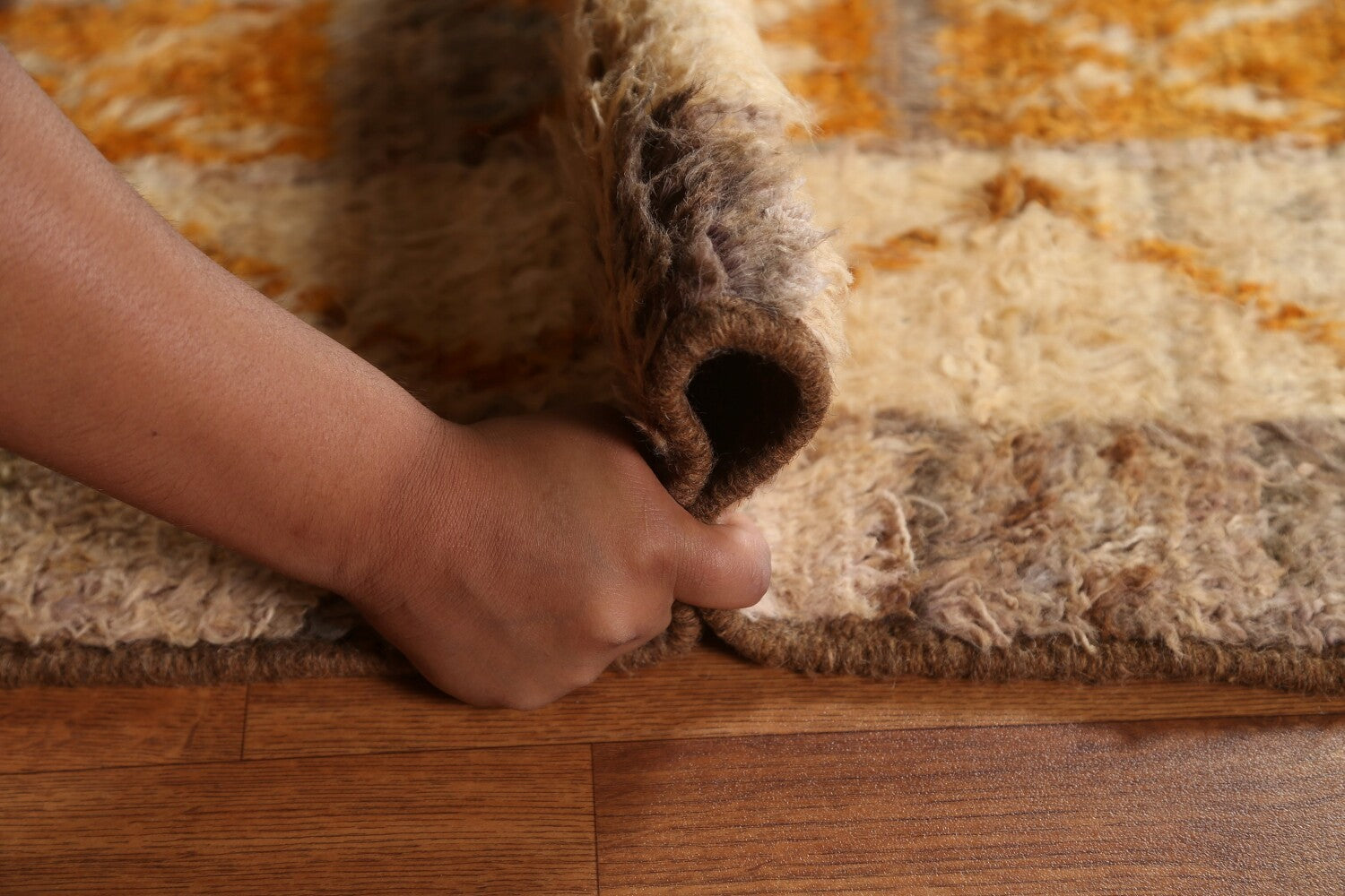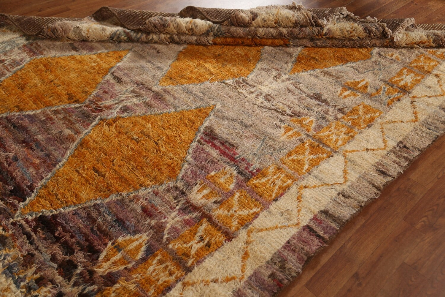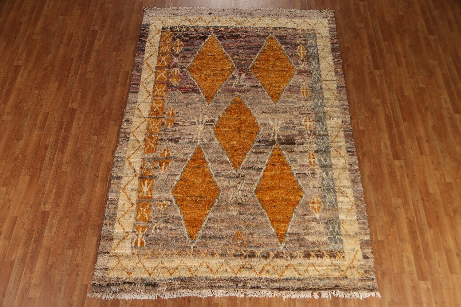 A Beautiful Genuine Pakistan Moroccan rug is Hand Knotted by skillful weavers in Pakistan with 100% Wool Material. This rug is in condition. dimensions are 9' 6'' X 6' 9'' in foot and 290 X 206 in centimeter. the primary color is Beige & Ivories.