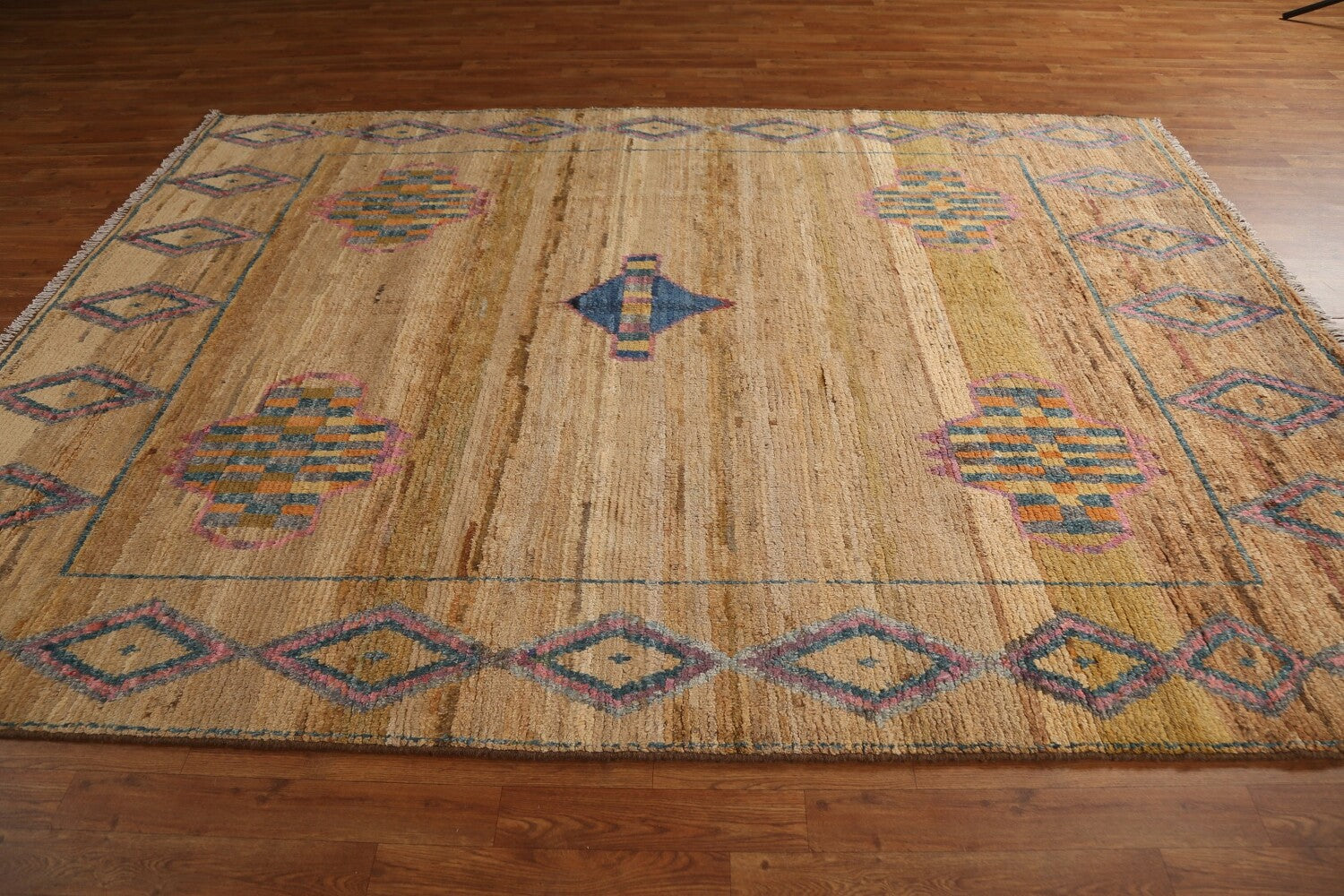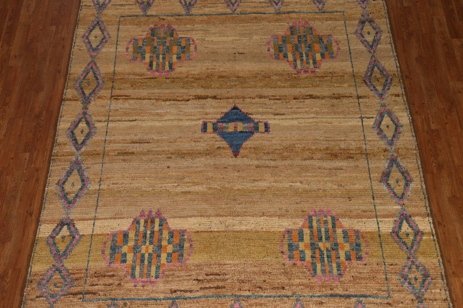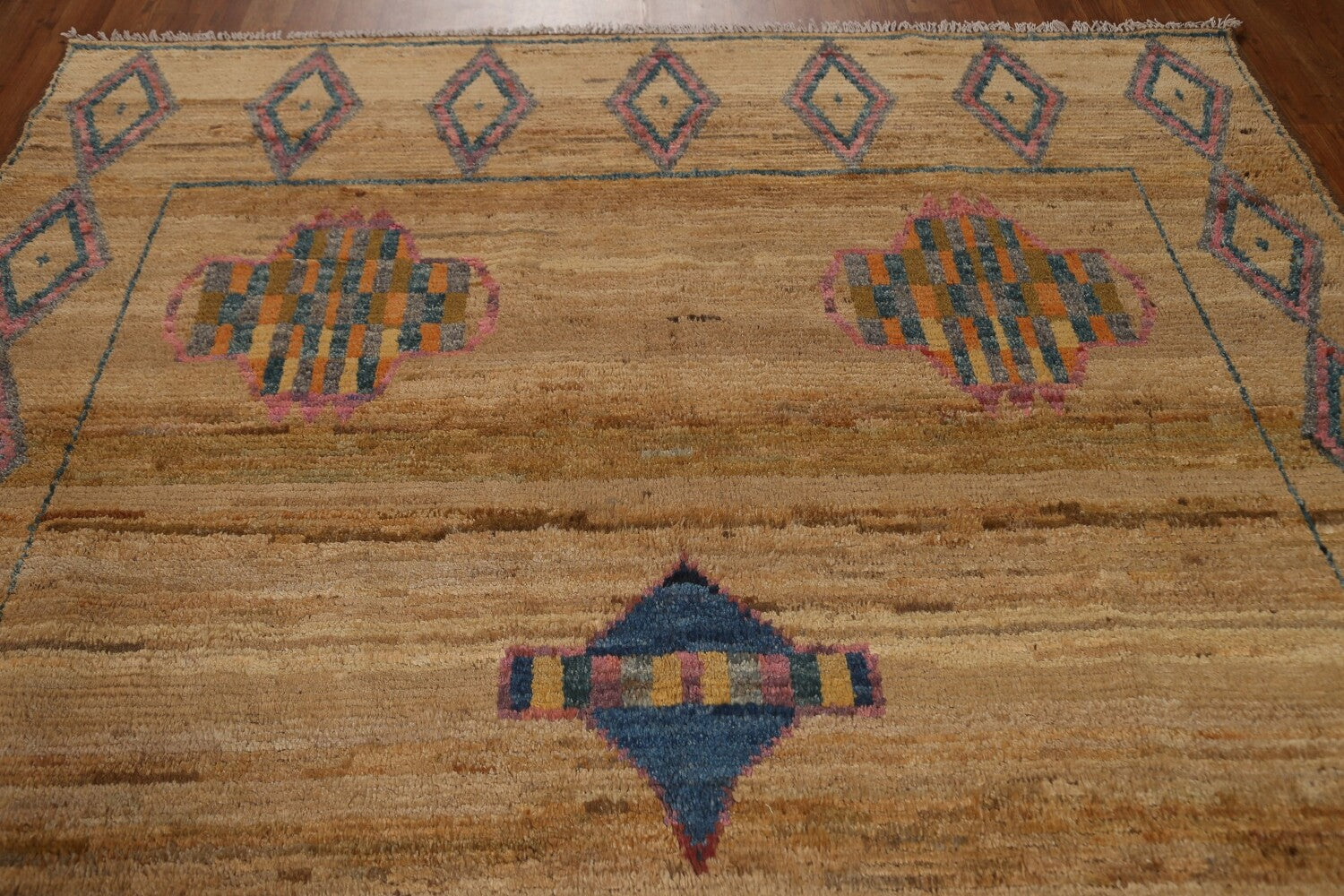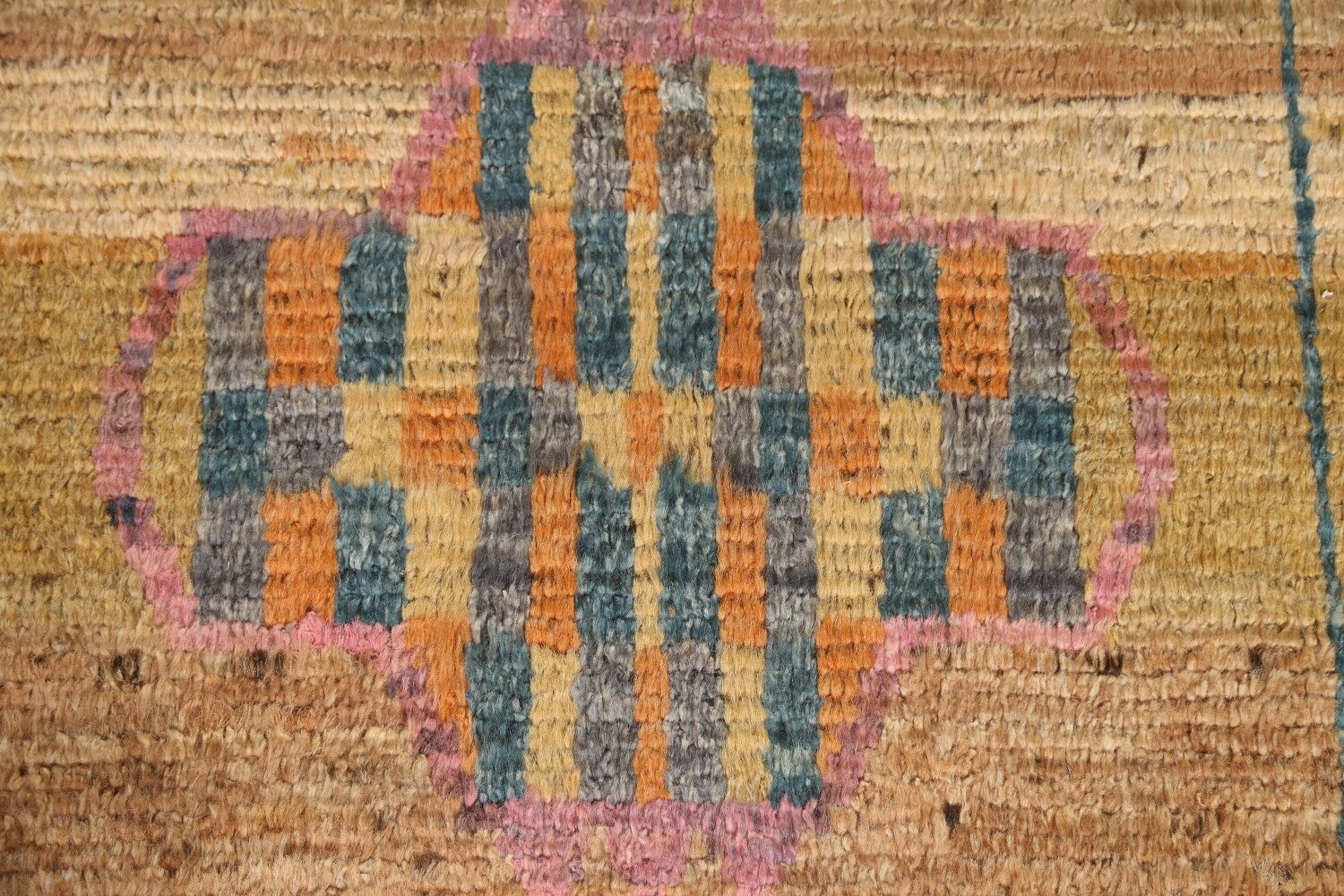 A Beautiful Genuine Pakistan Moroccan rug is Hand Knotted by skillful weavers in Pakistan with 100% Wool Material. This rug is in condition. dimensions are 9' 7'' X 6' 11'' in foot and 292 X 211 in centimeter. the primary color is Brown.