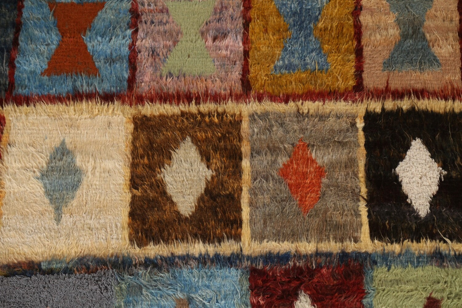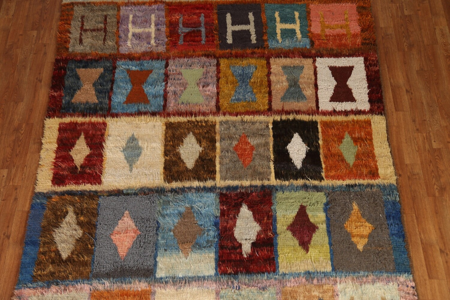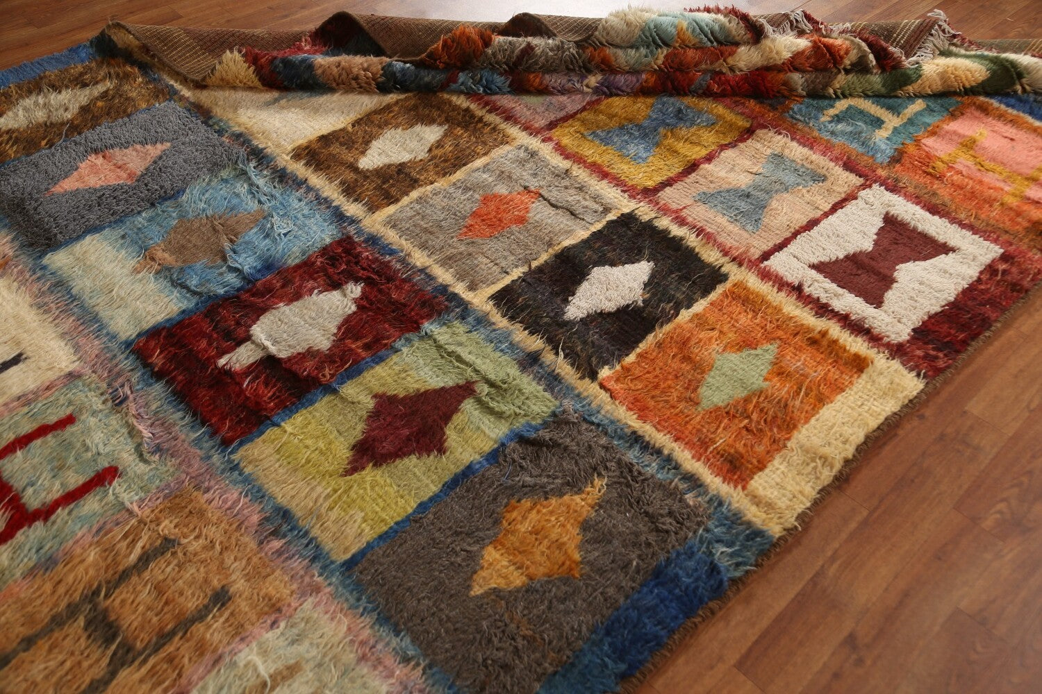 A Beautiful Genuine Pakistan Moroccan rug is Hand Knotted by skillful weavers in Pakistan with 100% Wool Material. This rug is in condition. dimensions are 9' 7'' X 6' 4'' in foot and 292 X 193 in centimeter. the primary color is Multi-Colored.