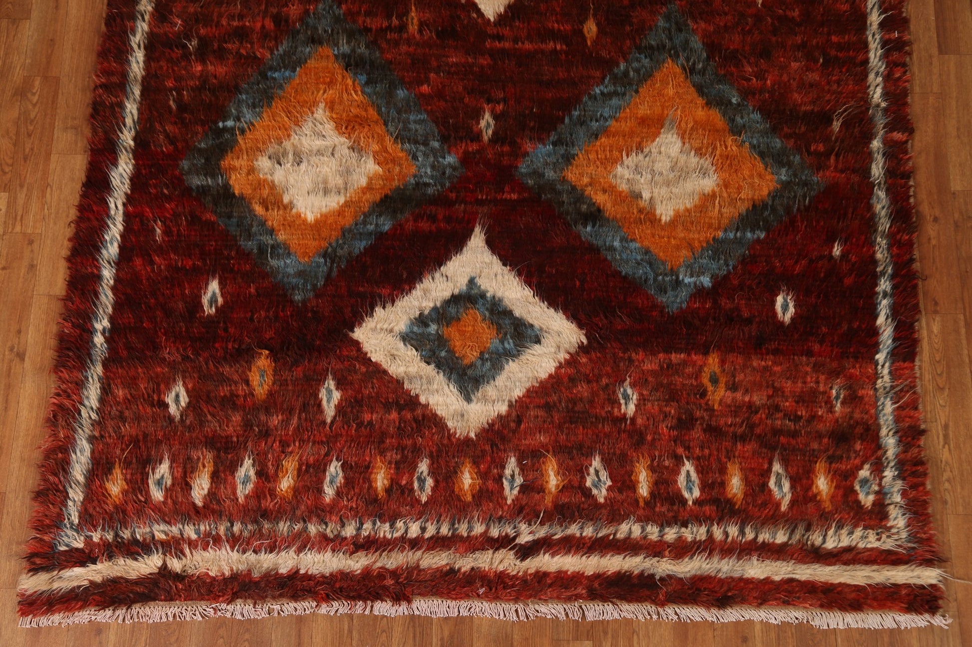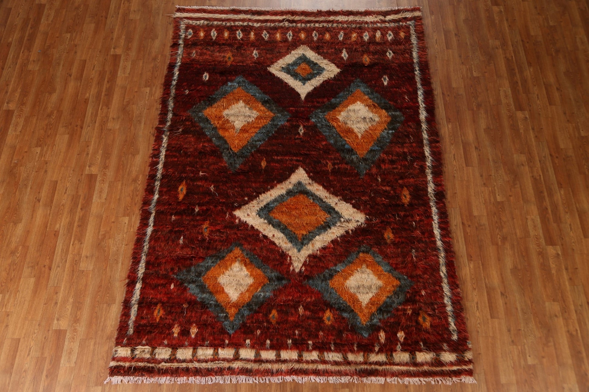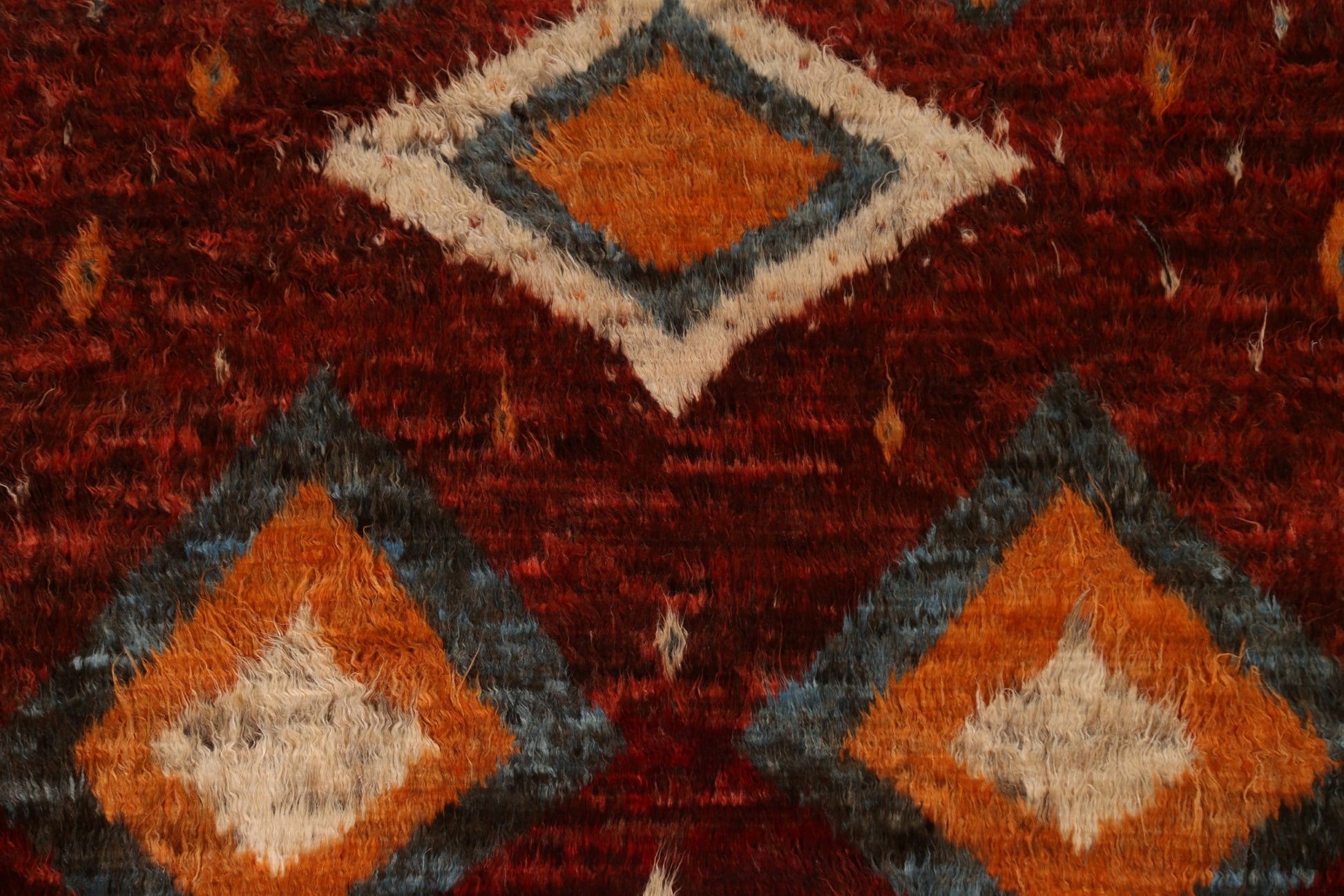 A Beautiful Genuine Pakistan Moroccan rug is Hand Knotted by skillful weavers in Pakistan with 100% Wool Material. This rug is in condition. dimensions are 8' 9'' X 6' 4'' in foot and 267 X 193 in centimeter. the primary color is Red.