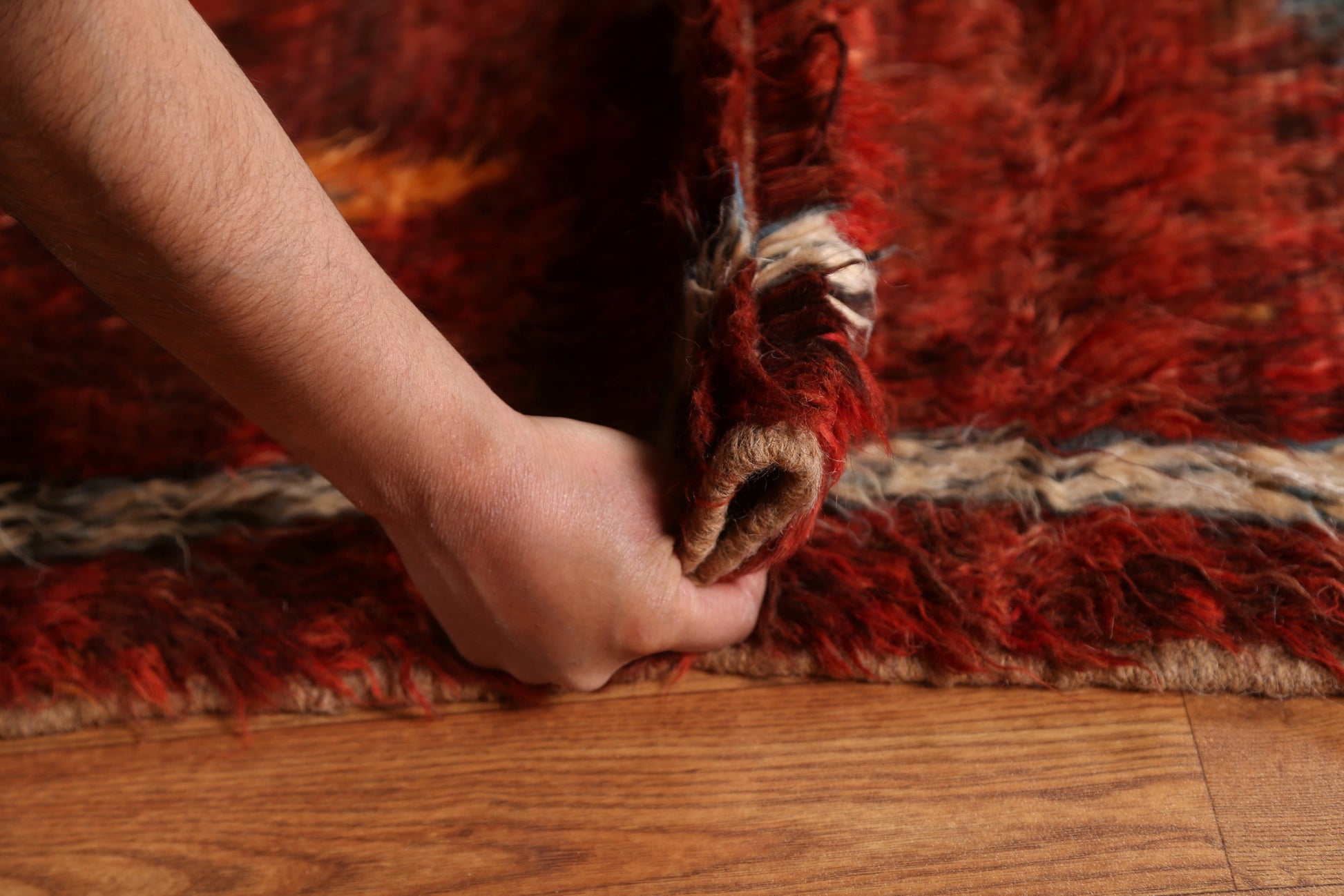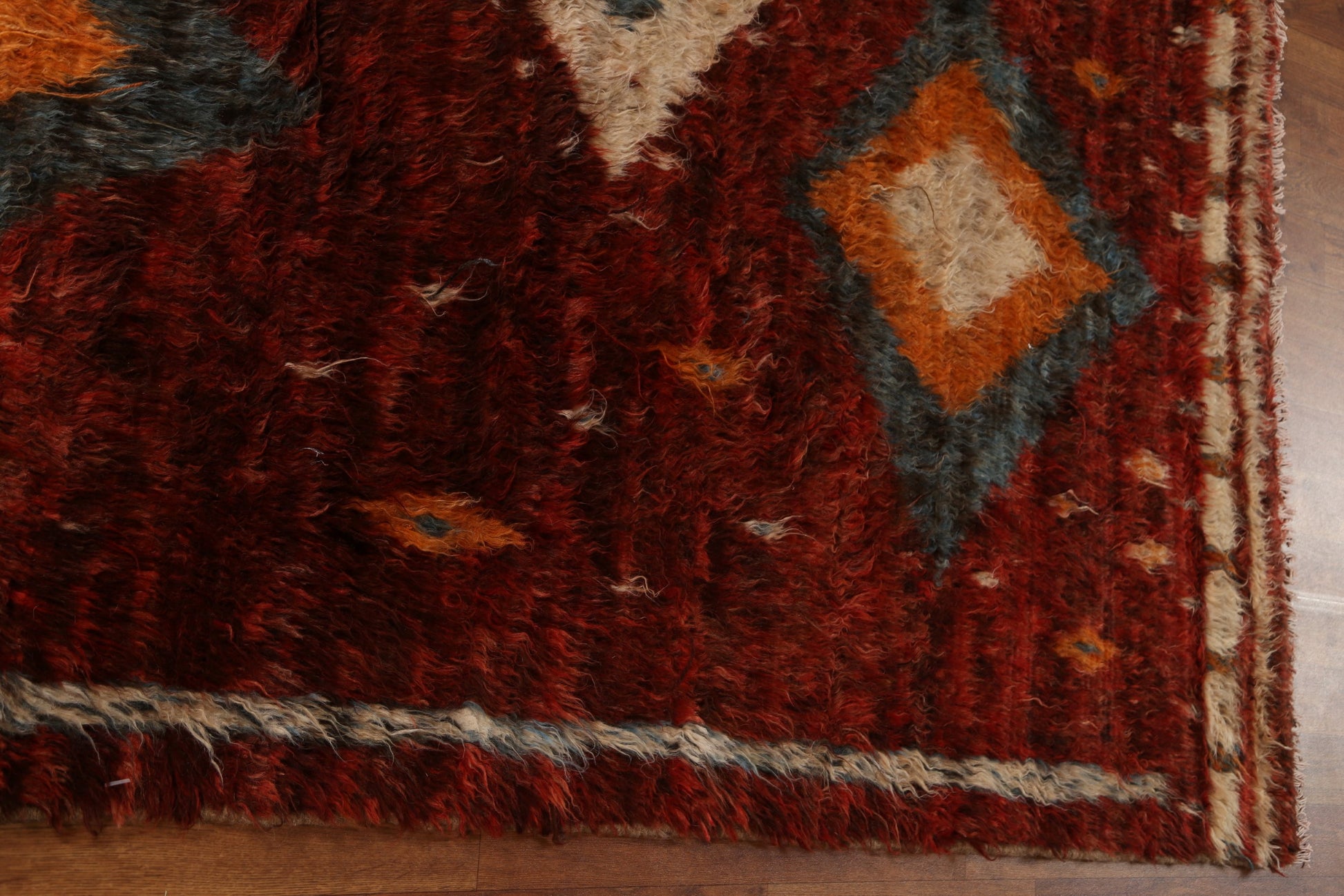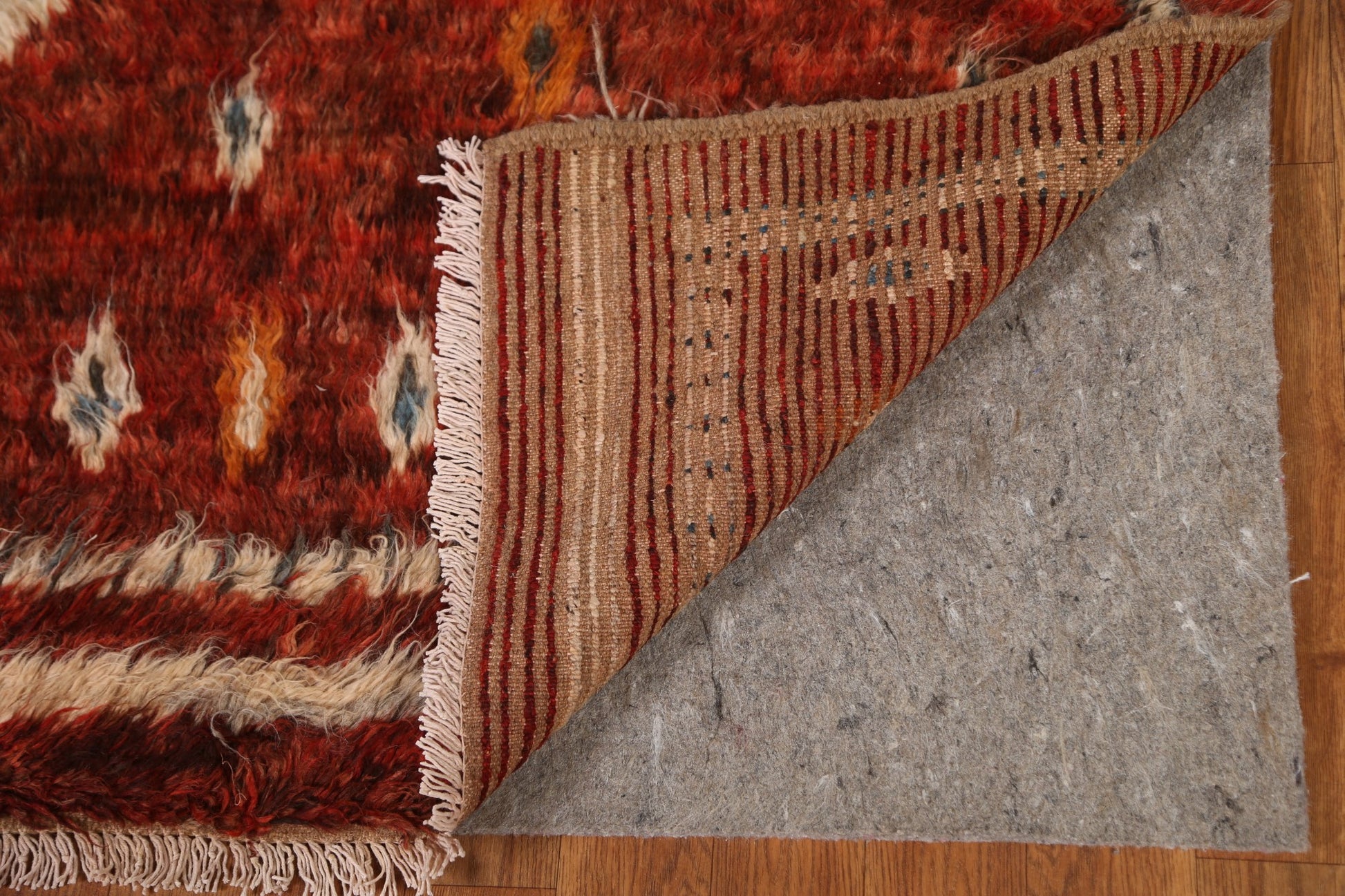 A Beautiful Genuine Pakistan Moroccan rug is Hand Knotted by skillful weavers in Pakistan with 100% Wool Material. This rug is in condition. dimensions are 8' 9'' X 6' 4'' in foot and 267 X 193 in centimeter. the primary color is Red.