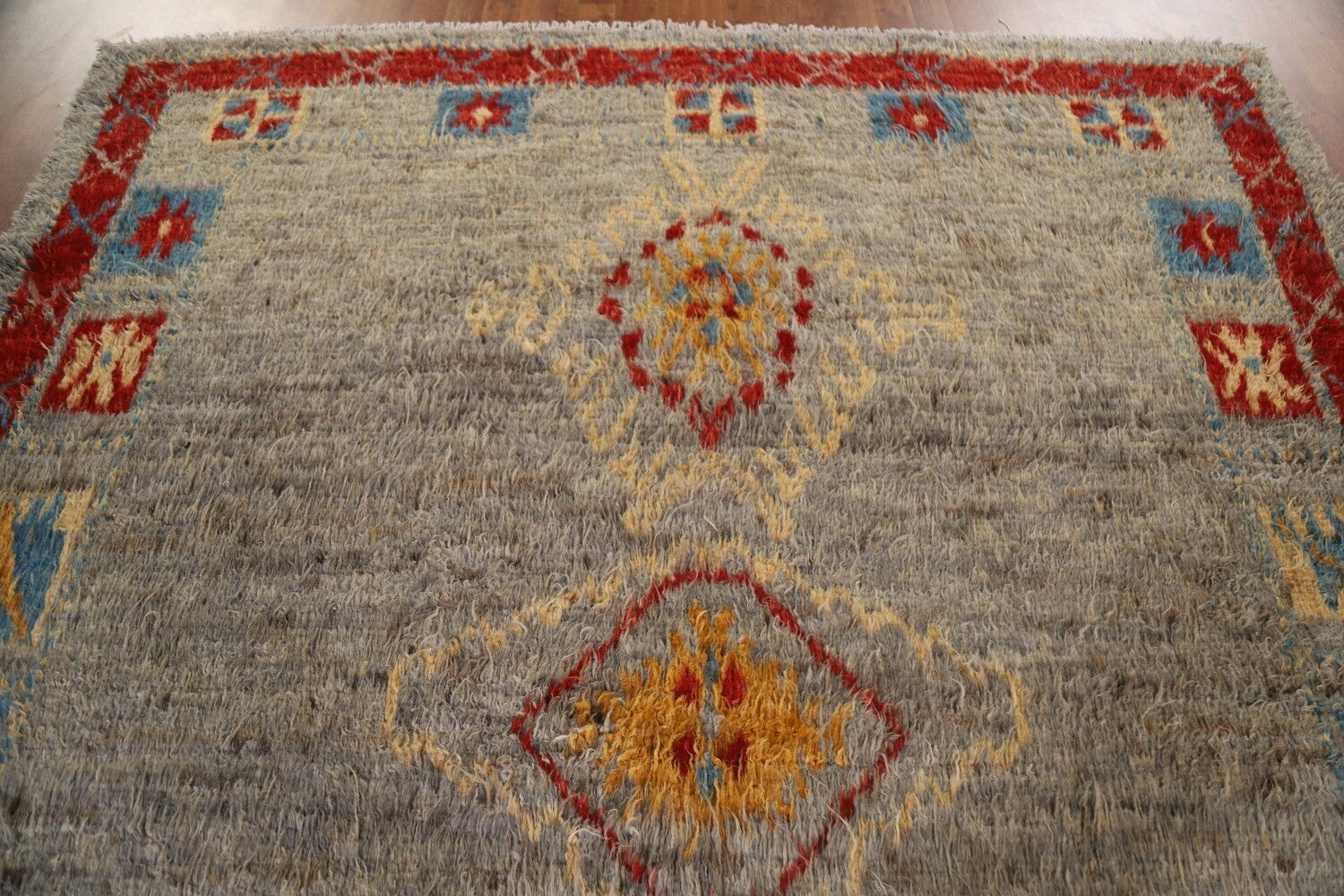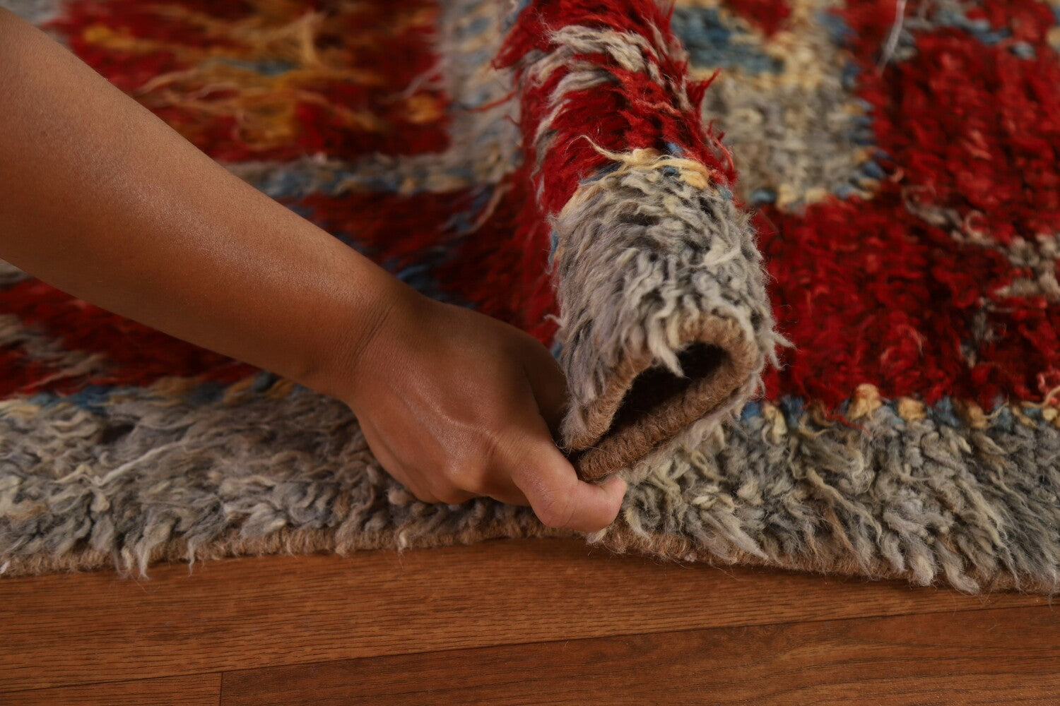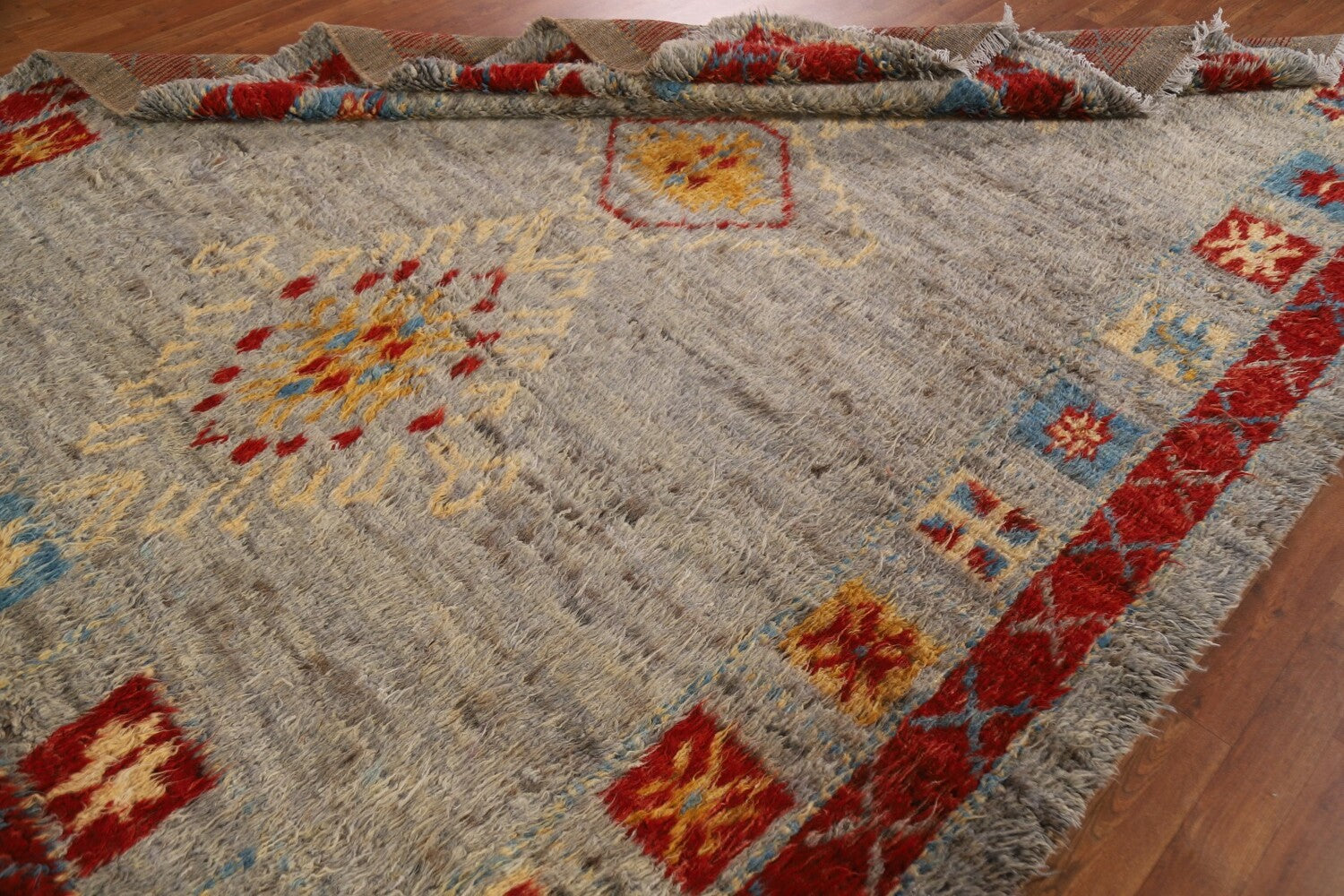 A Beautiful Genuine Pakistan Moroccan rug is Hand Knotted by skillful weavers in Pakistan with 100% Wool Material. This rug is in condition. dimensions are 10' 5'' X 8' 2'' in foot and 318 X 249 in centimeter. the primary color is Greys & Charcoal.