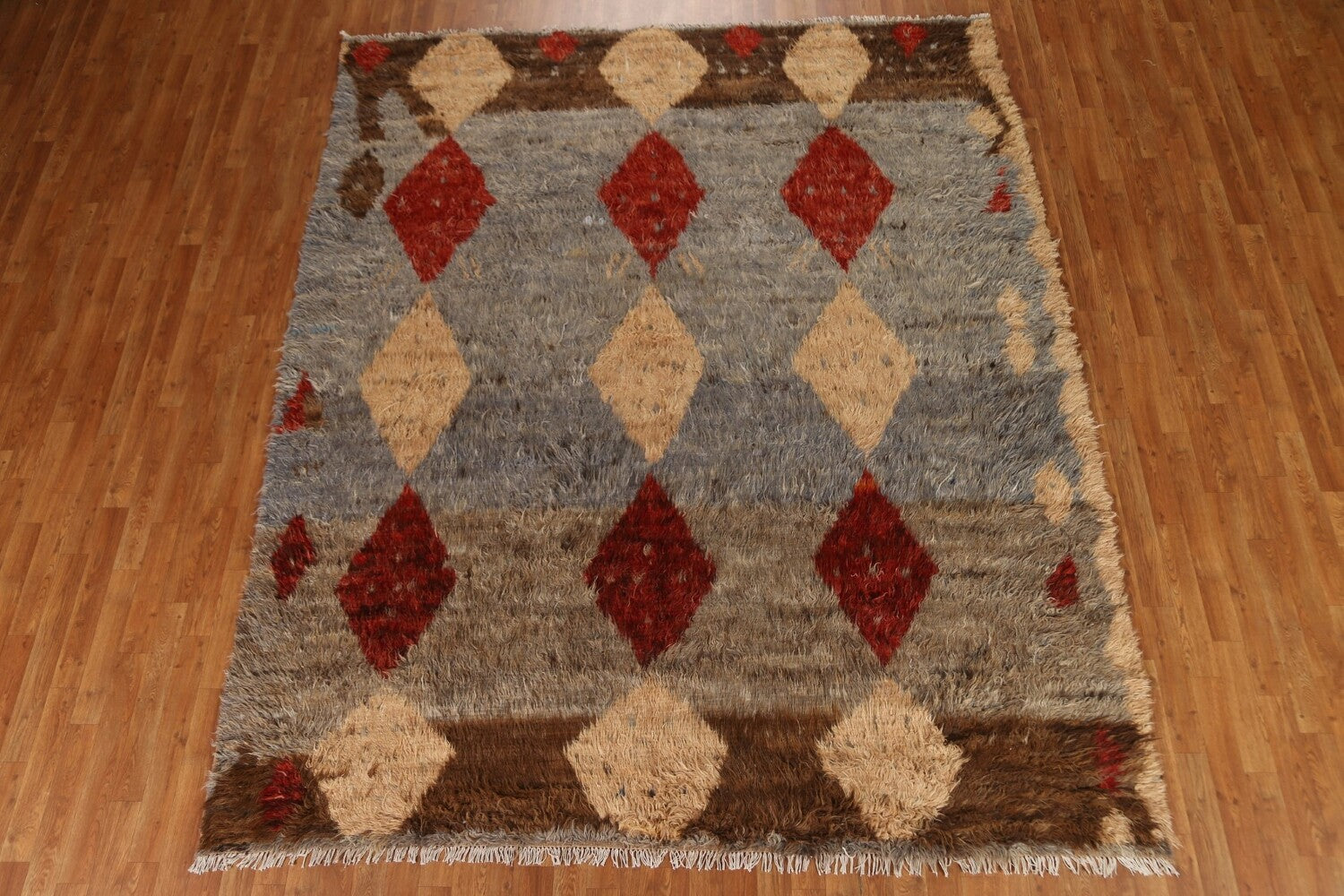A Beautiful Genuine Pakistan Moroccan rug is Hand Knotted by skillful weavers in Pakistan with 100% Wool Material. This rug is in condition. dimensions are 9' 9'' X 8' 3'' in foot and 297 X 251 in centimeter. the primary color is Multi-Colored.