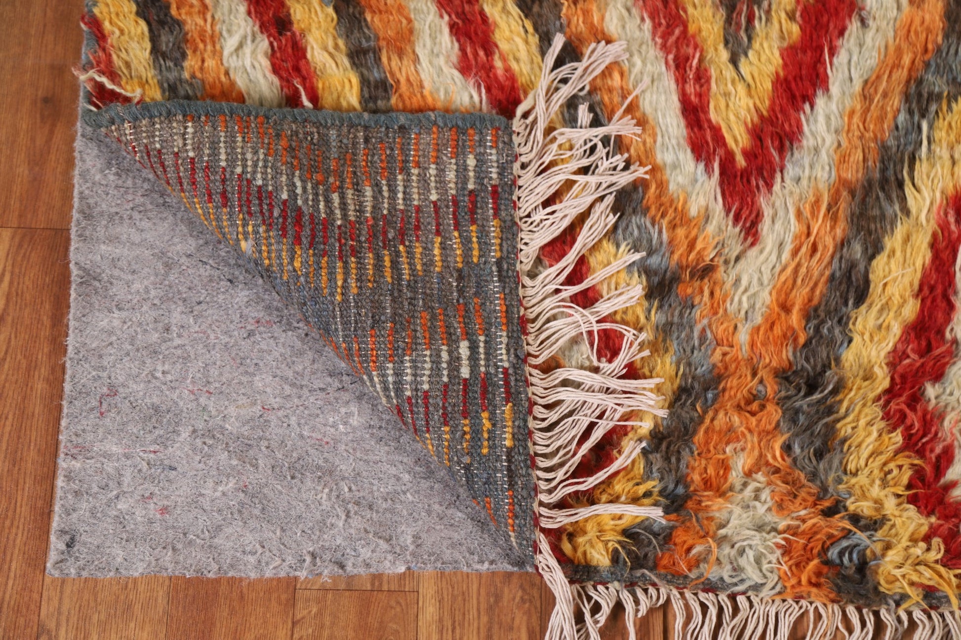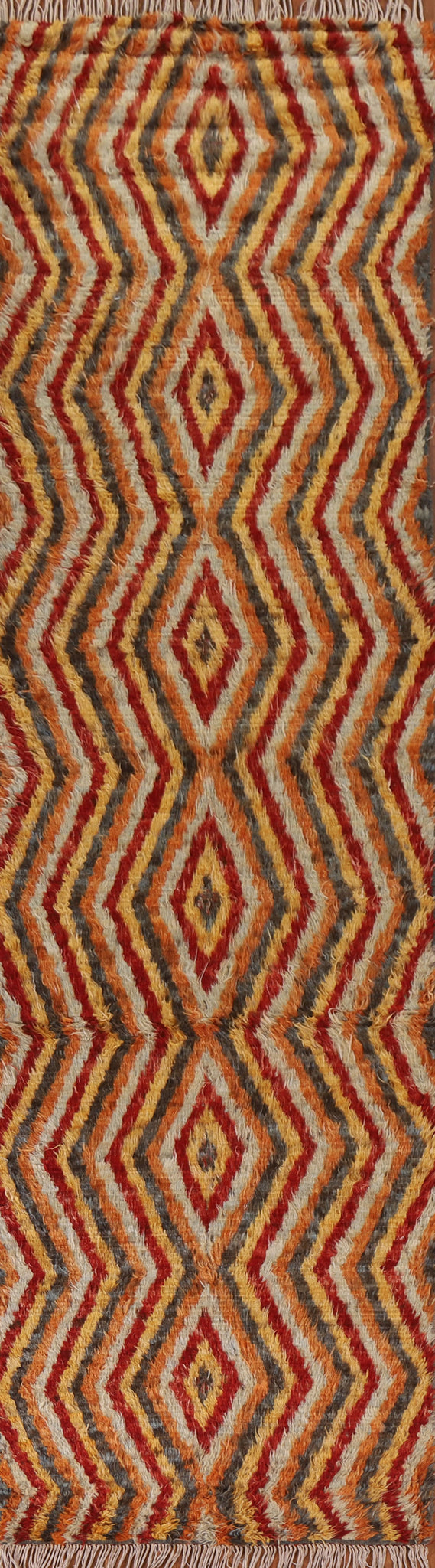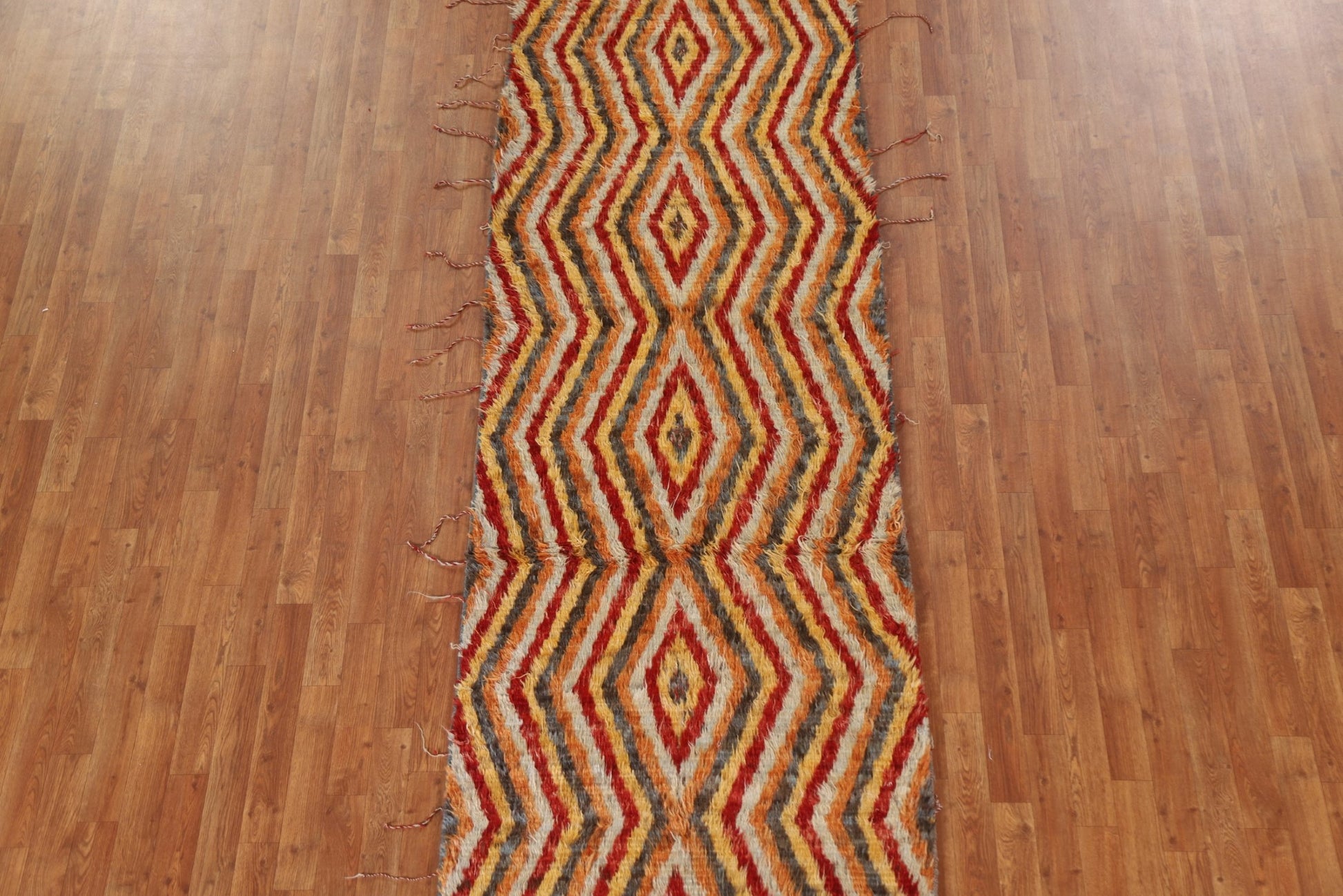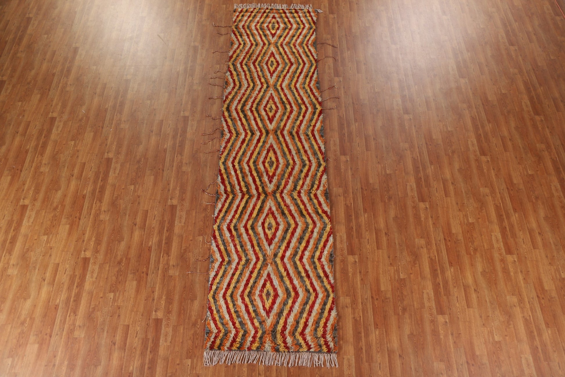 A Beautiful Genuine Pakistan Moroccan rug is Hand Knotted by skillful weavers in Pakistan with 100% Wool Material. This rug is in condition. dimensions are 12' 7'' X 3' 1'' in foot and 384 X 94 in centimeter. the primary color is Multi-Colored.