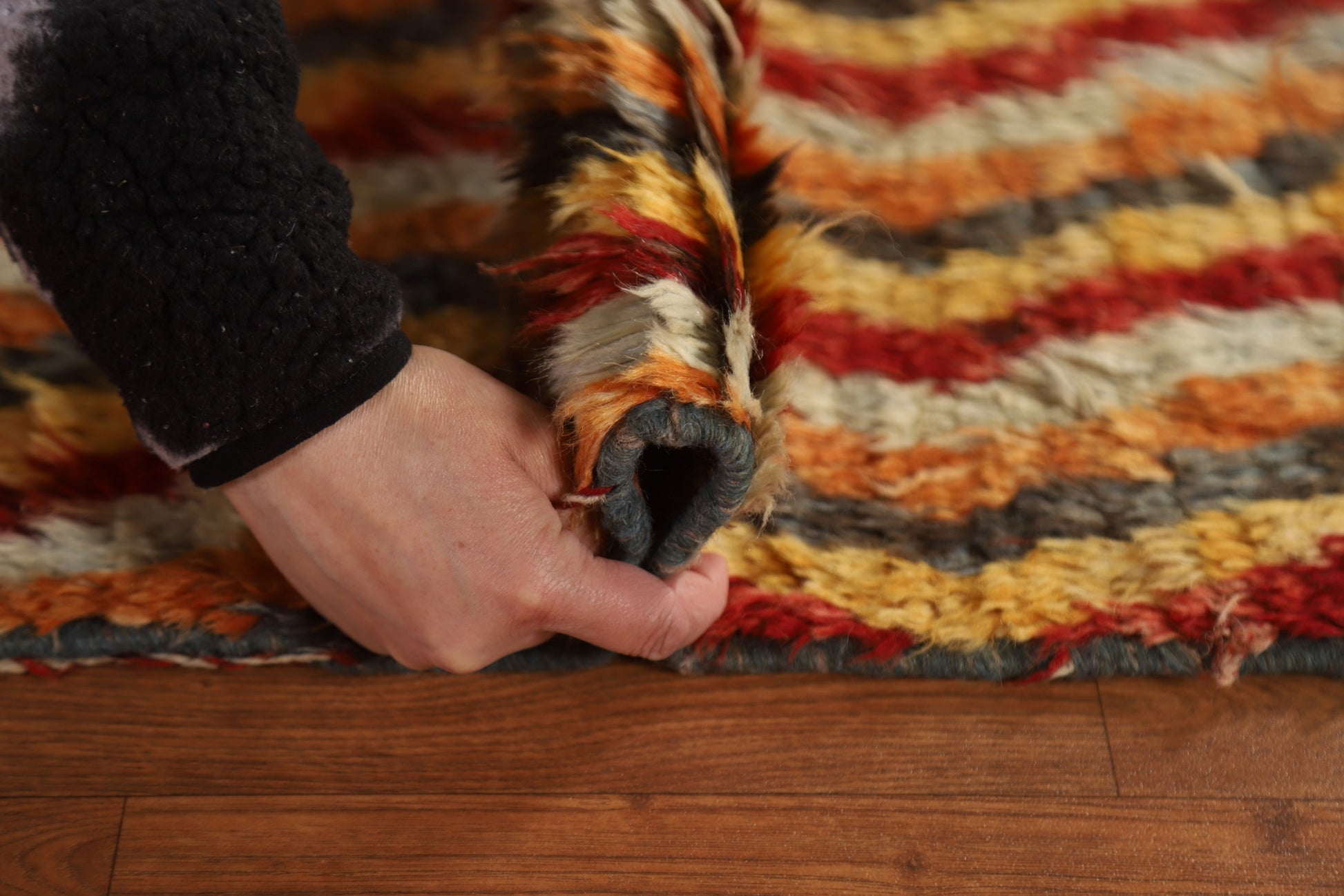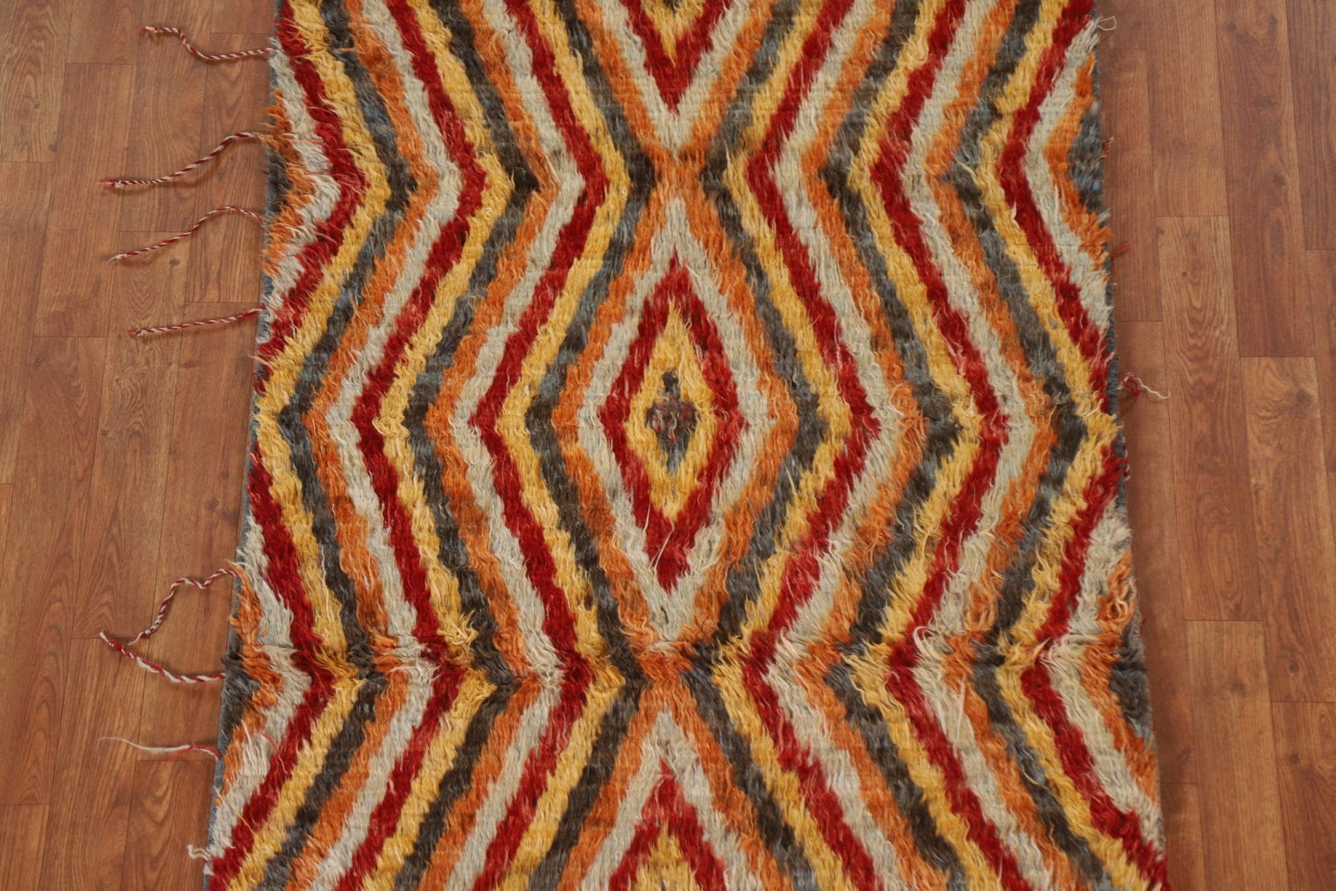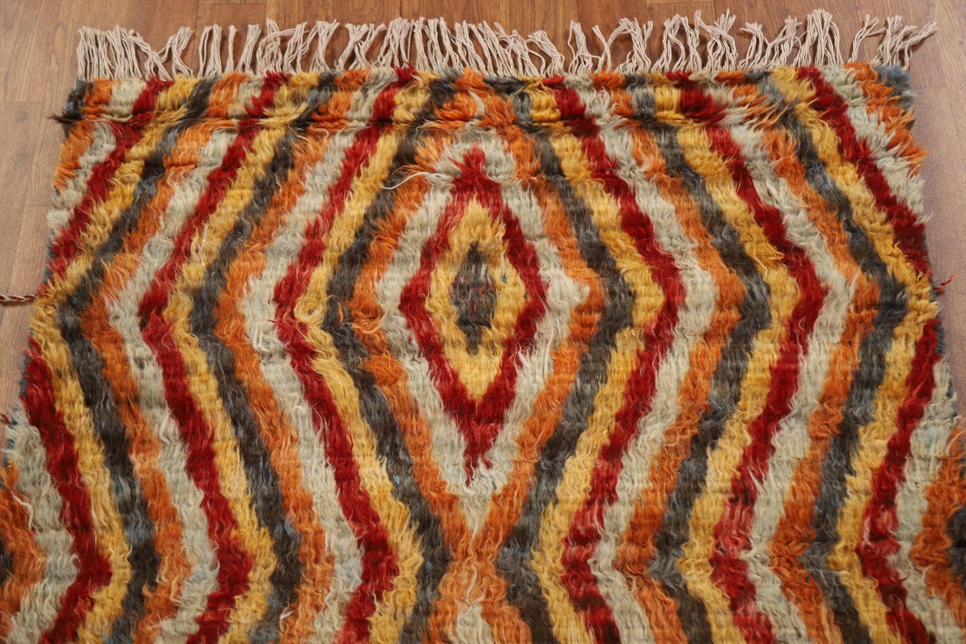 A Beautiful Genuine Pakistan Moroccan rug is Hand Knotted by skillful weavers in Pakistan with 100% Wool Material. This rug is in condition. dimensions are 12' 7'' X 3' 1'' in foot and 384 X 94 in centimeter. the primary color is Multi-Colored.