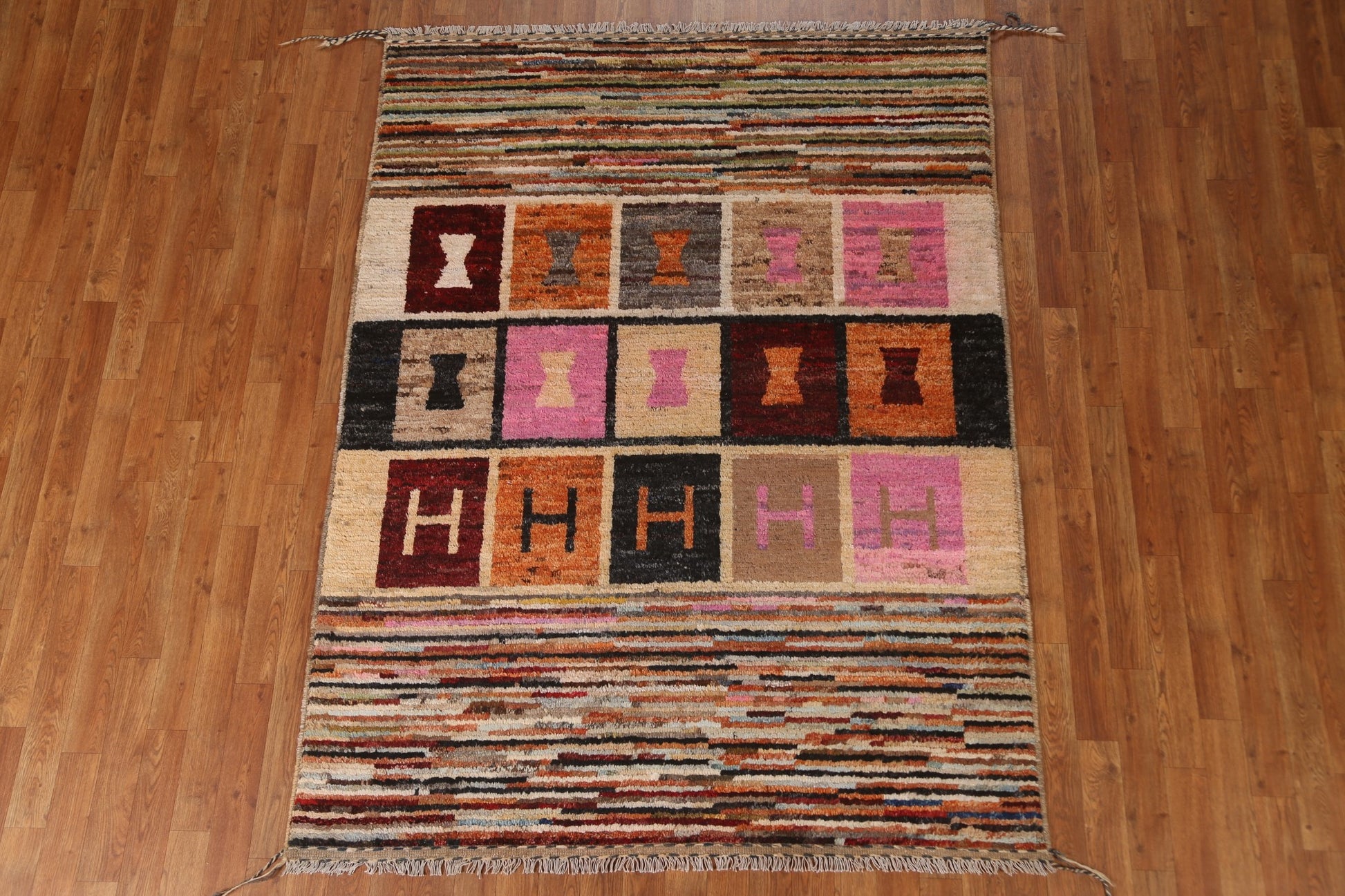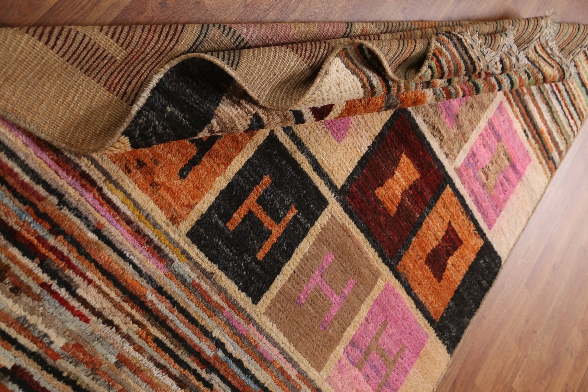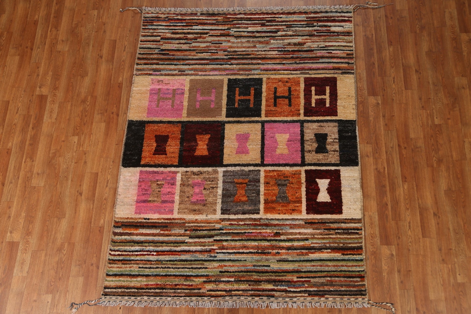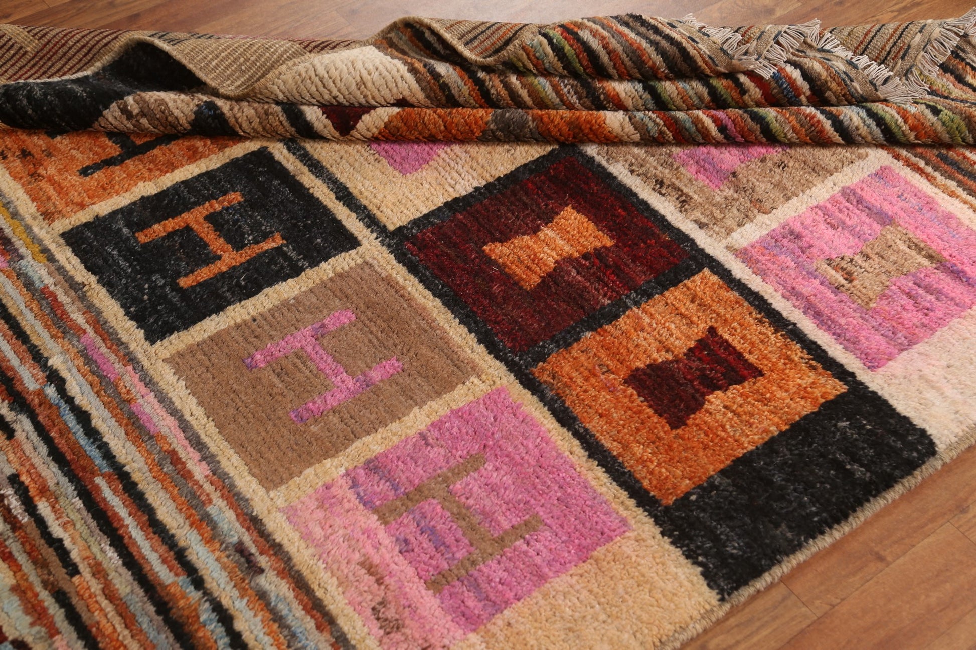 A Beautiful Genuine Pakistan Moroccan rug is Hand Knotted by skillful weavers in Pakistan with 100% Wool Material. This rug is in condition. dimensions are 6' 8'' X 5' 0'' in foot and 203 X 152 in centimeter. the primary color is Multi-Colored.
