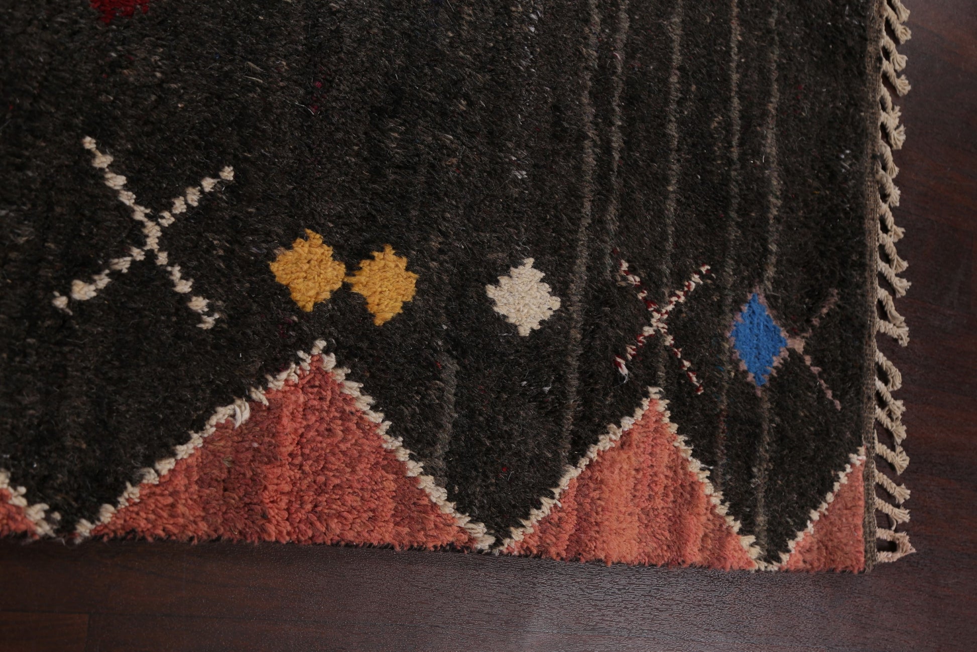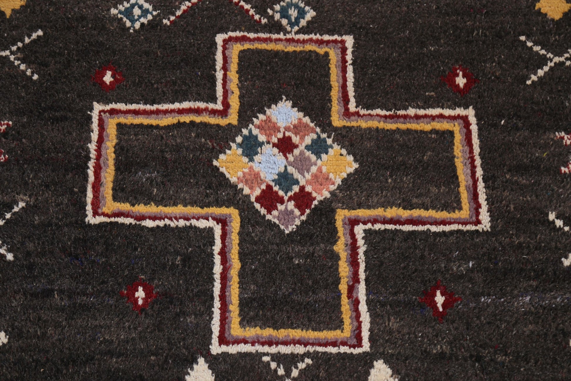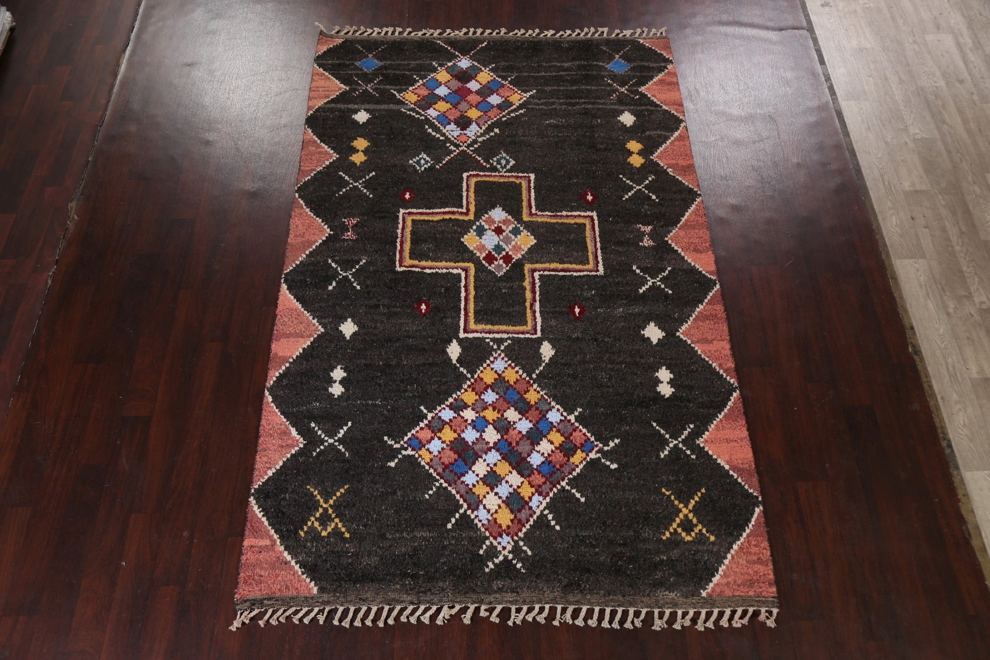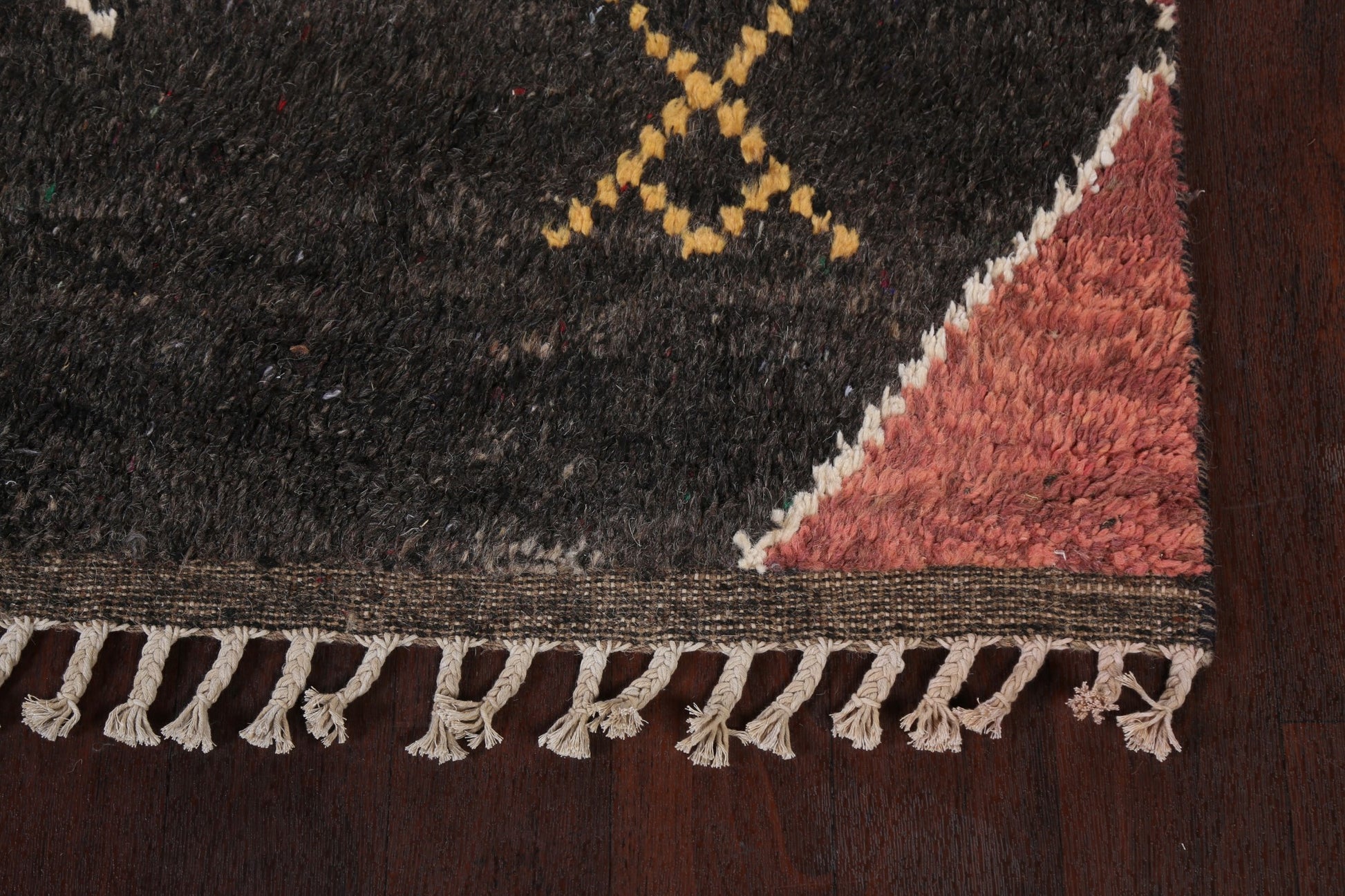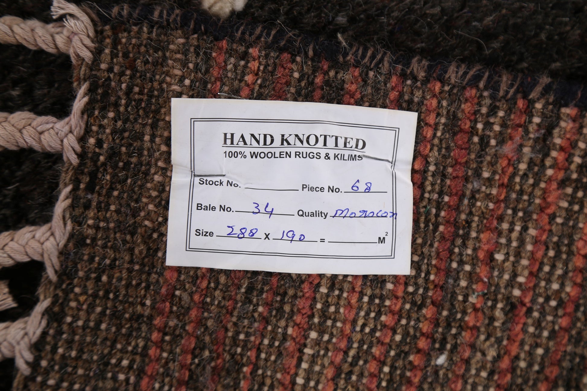 A Beautiful Genuine Morocco Moroccan rug is Hand Knotted by skillful weavers in Morocco with 100% Wool Material. This rug is in New, First Quality condition. dimensions are 9' 9'' X 6' 3'' in foot and 297 X 191 in centimeter. the primary color is Black.
