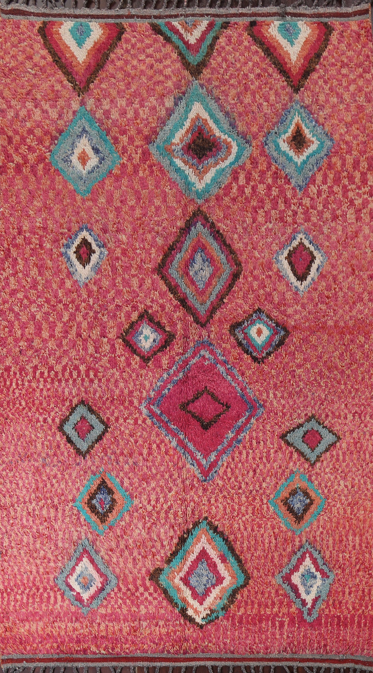 A Beautiful Genuine Morocco Moroccan rug is Hand Knotted by skillful weavers in Morocco with 100% Wool Material. This rug is in New, First Quality condition. dimensions are 10' 0'' X 5' 10'' in foot and 305 X 178 in centimeter. the primary color is Pink.