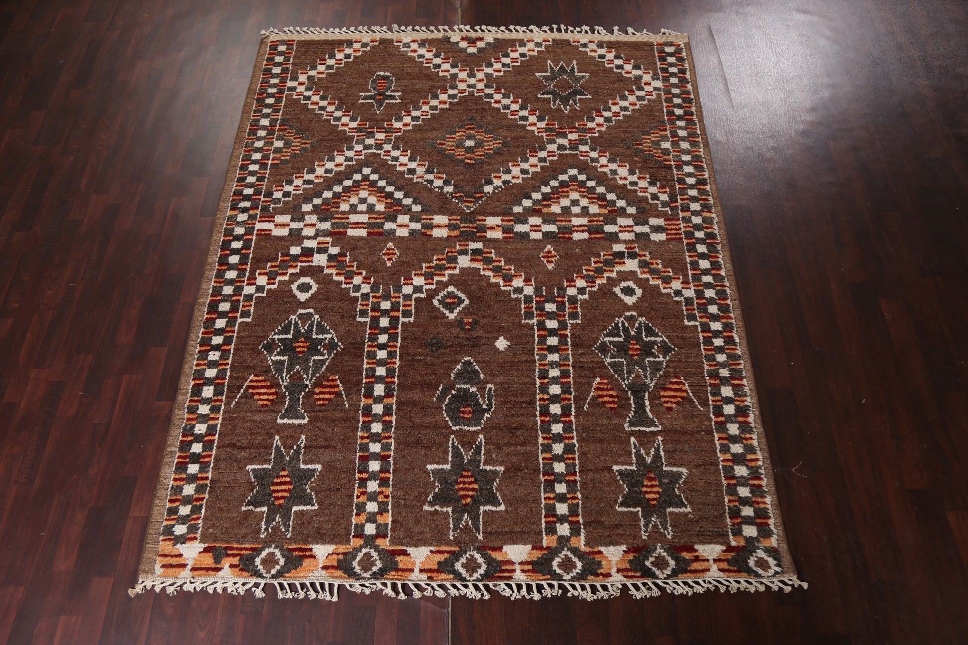 A Beautiful Genuine Morocco Moroccan rug is Hand Knotted by skillful weavers in Morocco with 100% Wool Material. This rug is in New, First Quality condition. dimensions are 10' 4'' X 8' 3'' in foot and 315 X 251 in centimeter. the primary color is Brown.
