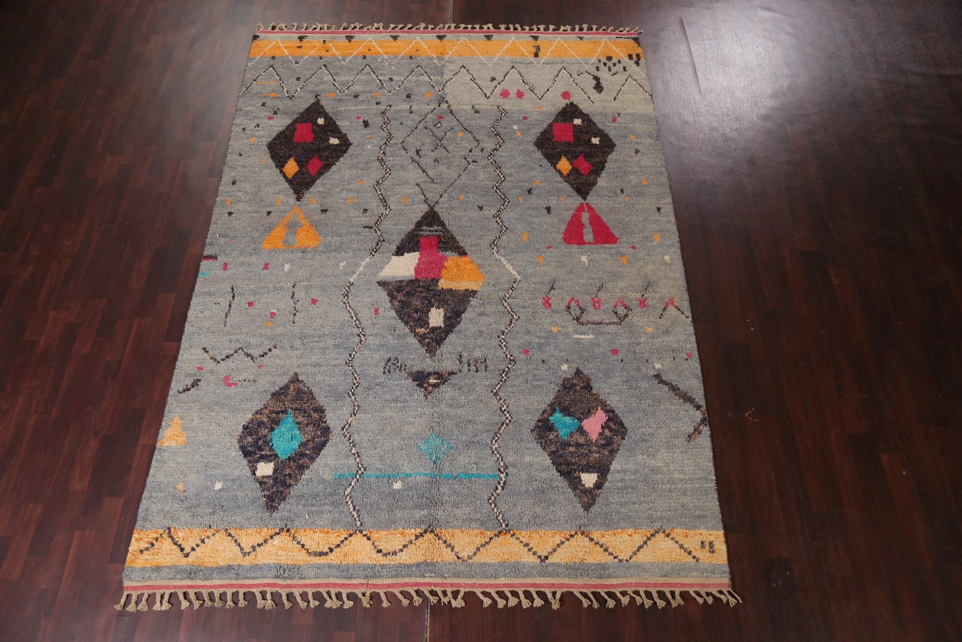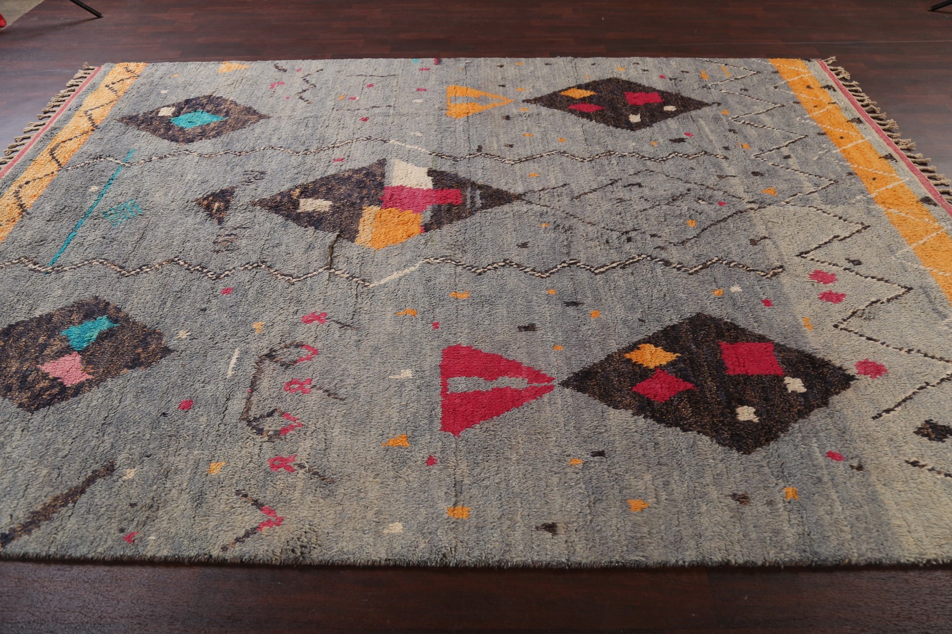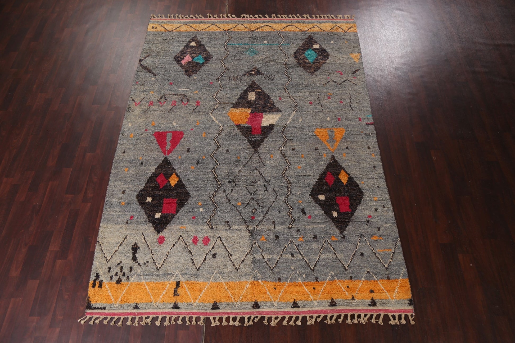 A Beautiful Genuine Morocco Moroccan rug is Hand Knotted by skillful weavers in Morocco with 100% Wool Material. This rug is in New, First Quality condition. dimensions are 10' 11'' X 7' 11'' in foot and 333 X 241 in centimeter. the primary color is Multi-Colored.